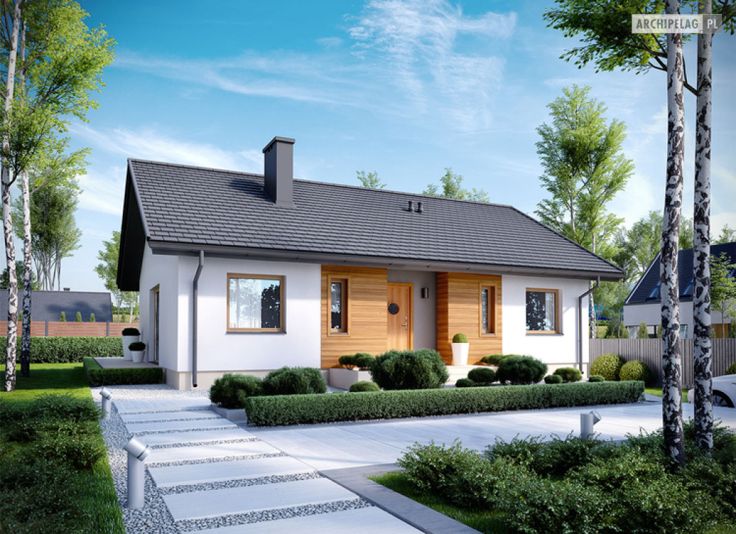 wejściowa zaakcentowana zadaszeniem, różne wersje garaży