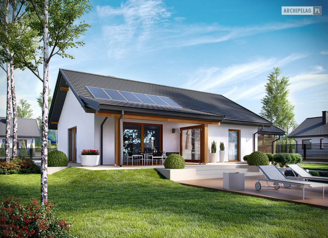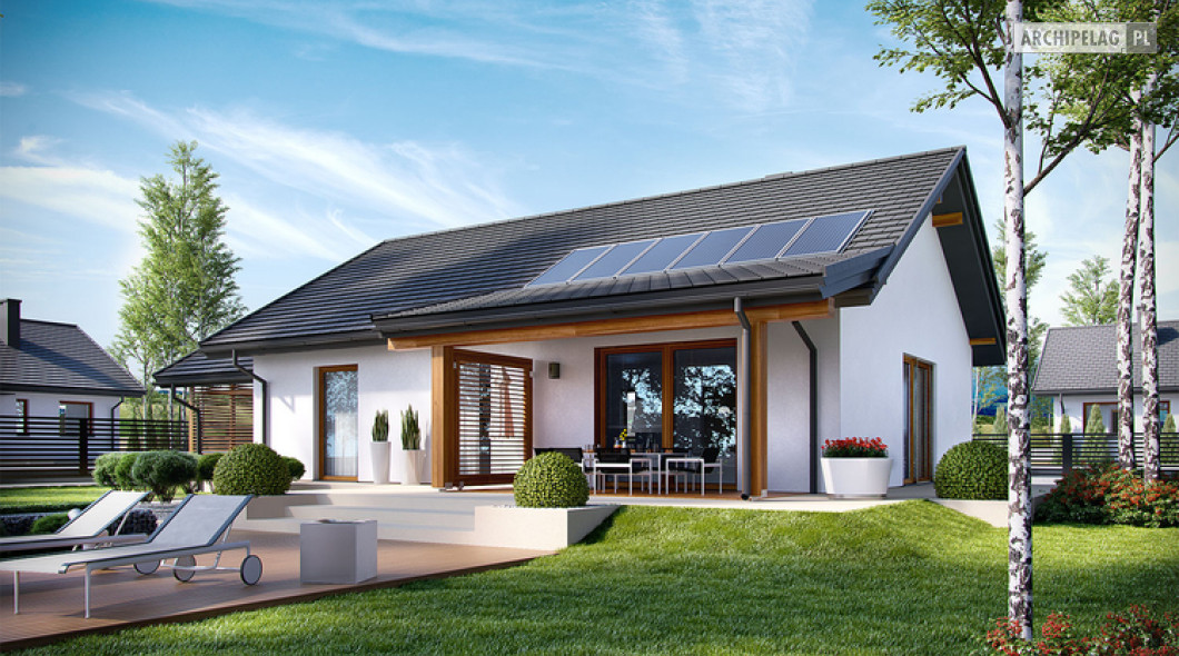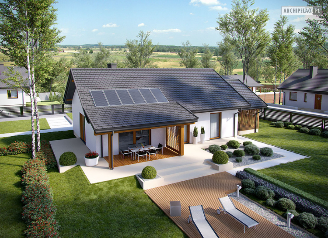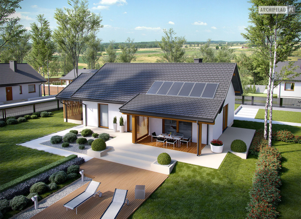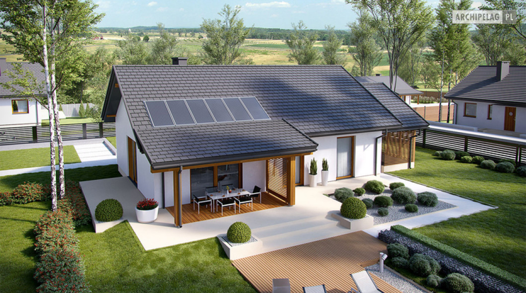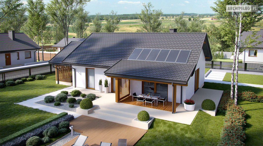 zaakcentowanie strefy wejściowej, bez zadaszenia tarasu ogrodowego, z systemem