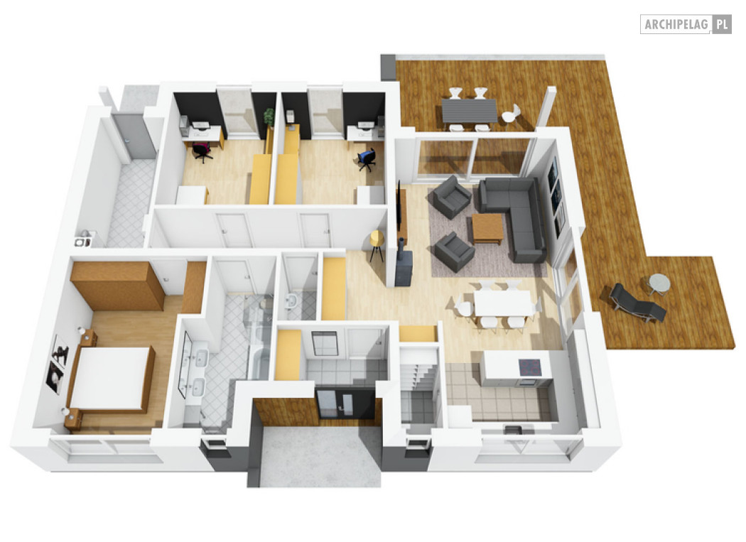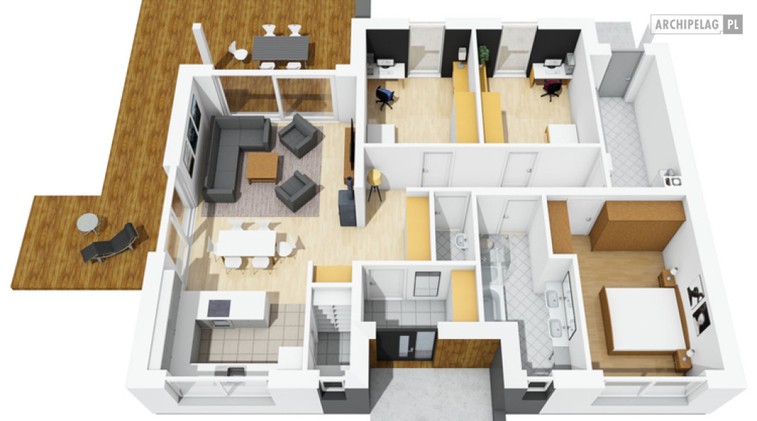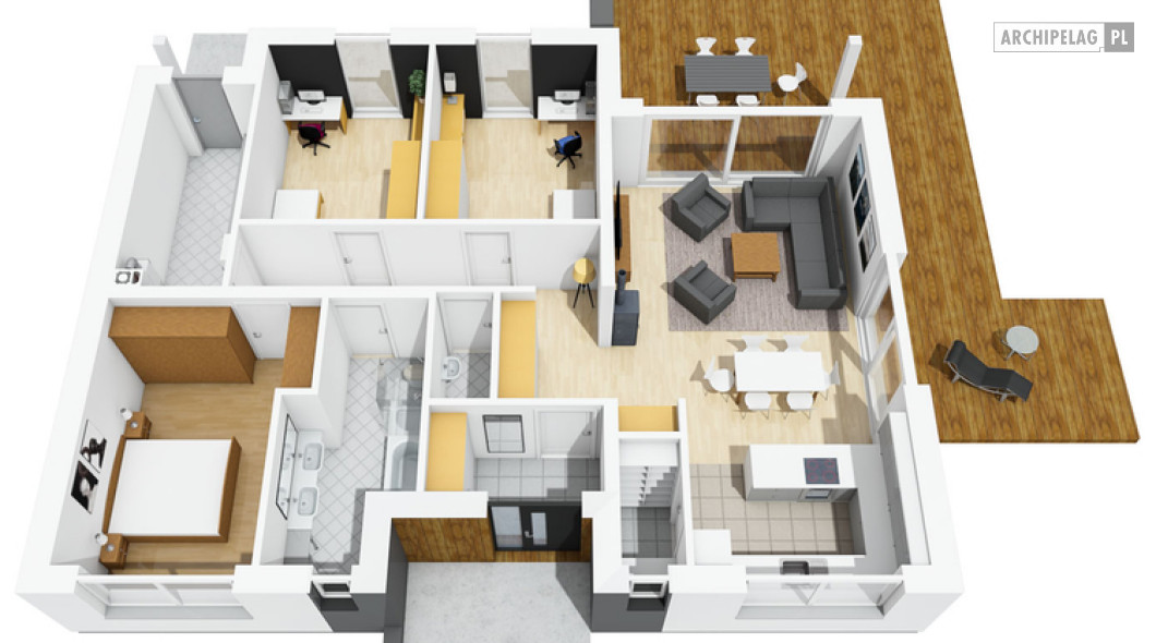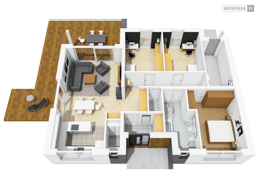 wersja podstawowa, 3 sypialnie, dach czterospadowy