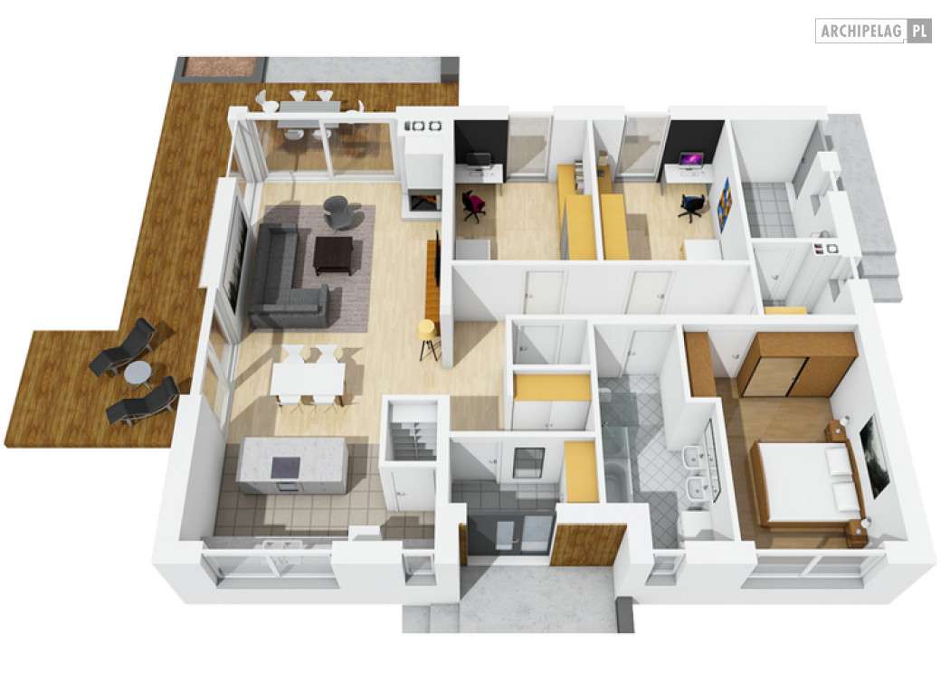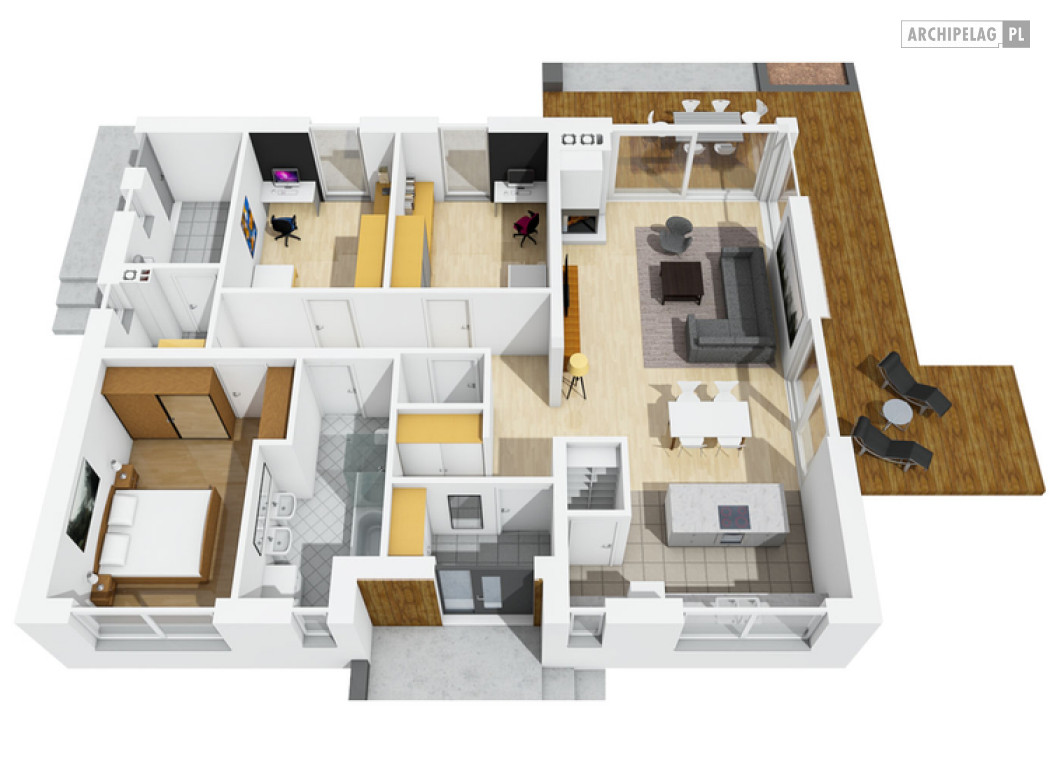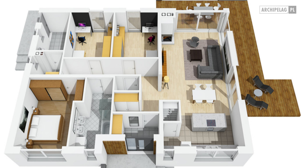 wersja podstawowa, 3 sypialnie, dach czterospadowy