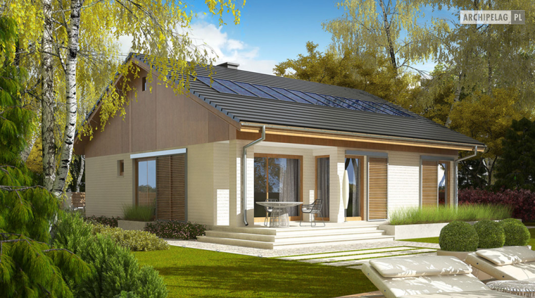 3 sypialnie, większa powierzchnia użytkowa, dach o kącie nachylenia 25°, z