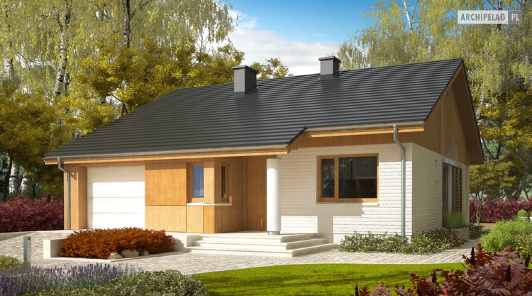 Charakterystyka: Dom parterowy, niepodpiwniczony, z garażem jednostanowiskowym