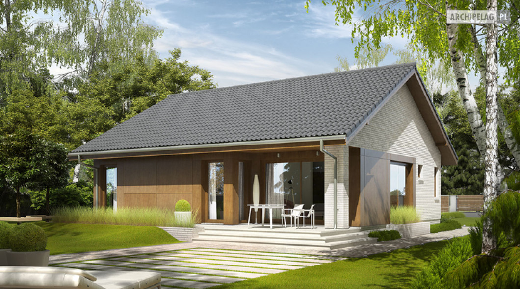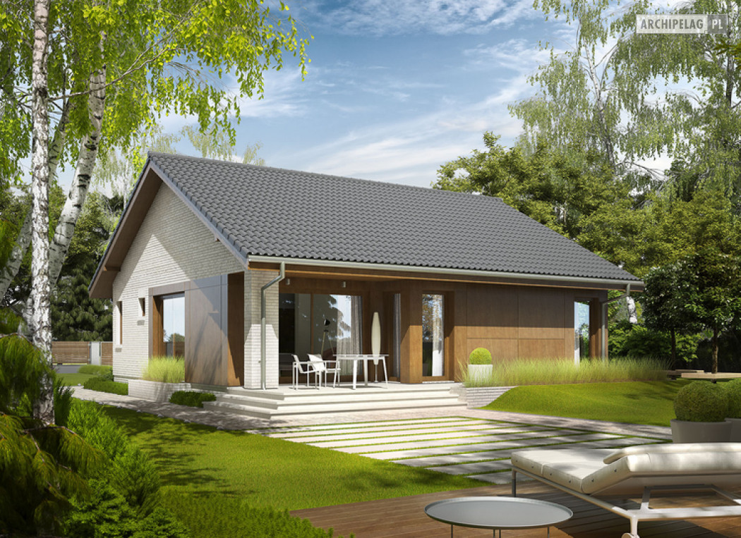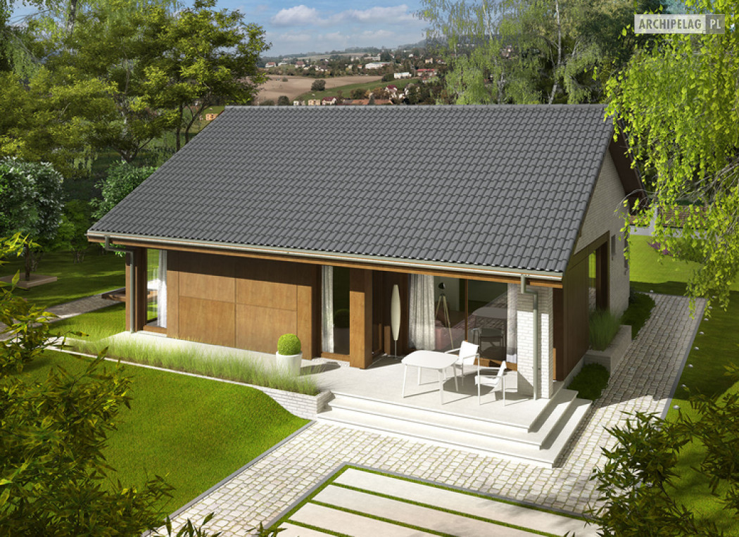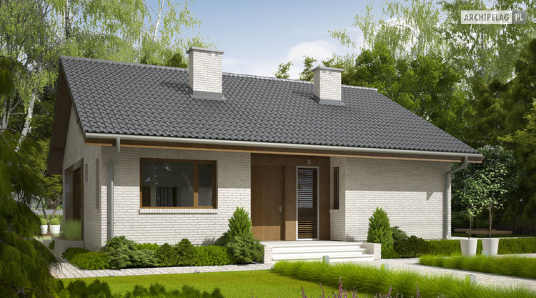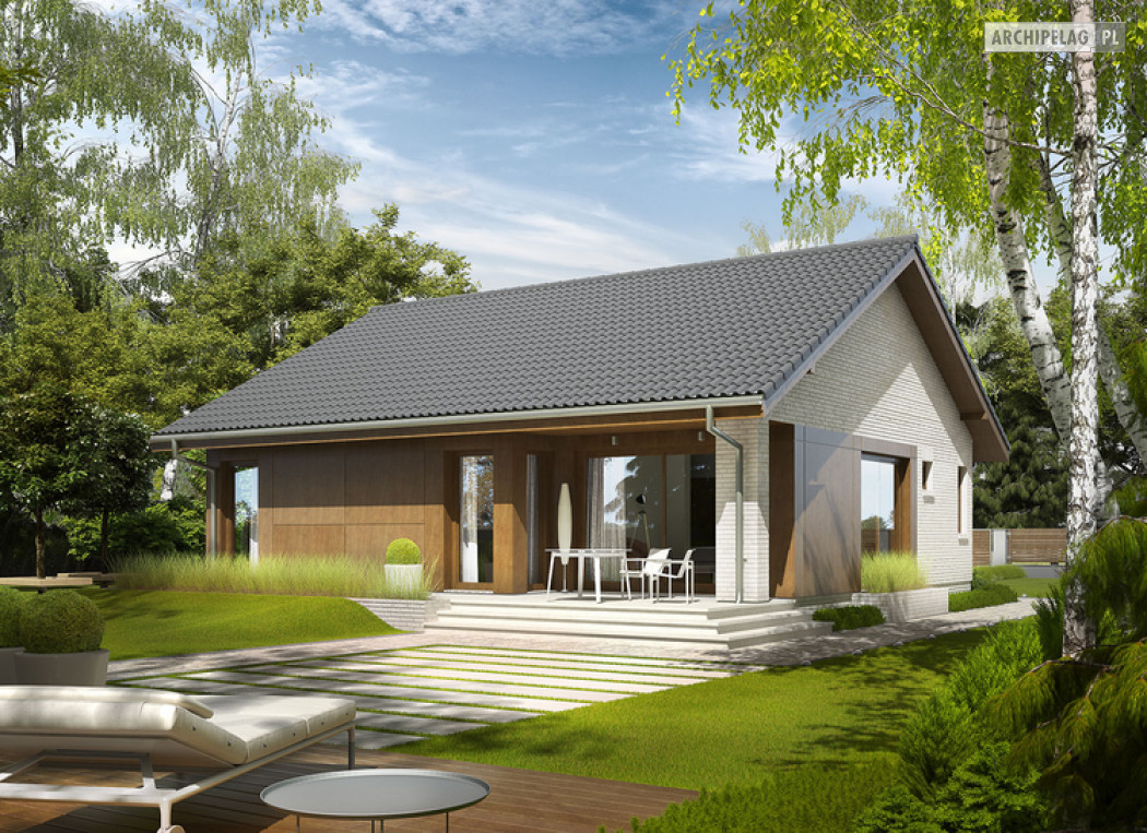 2 sypialnie, mniejsza powierzchnia użytkowa, dach o kącie nachylenia 25°,