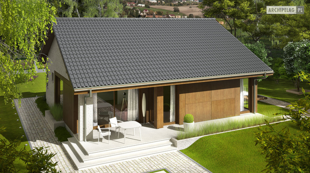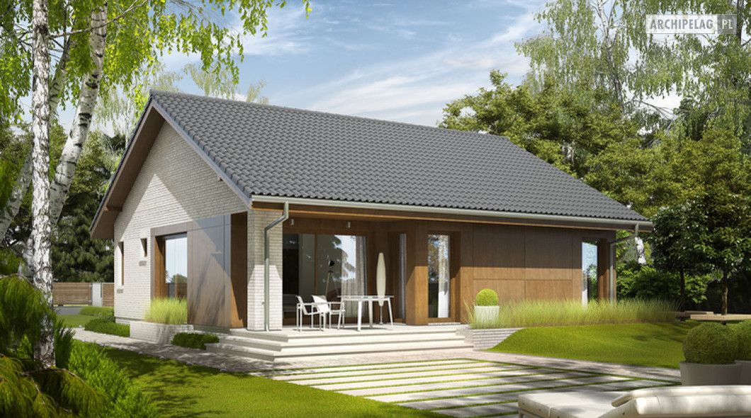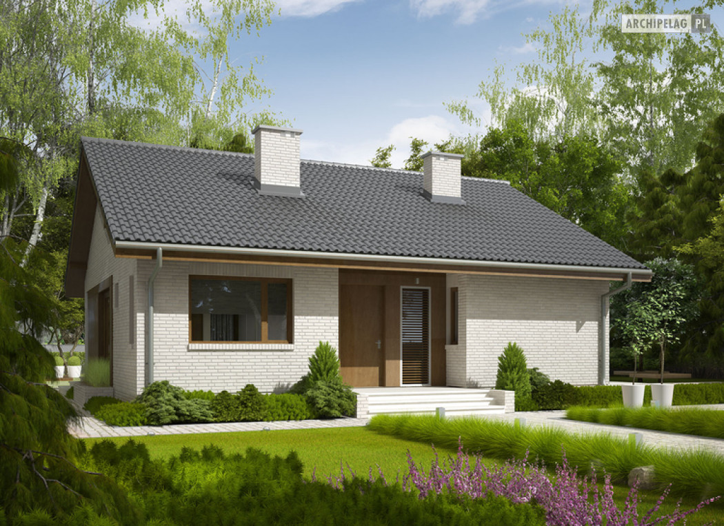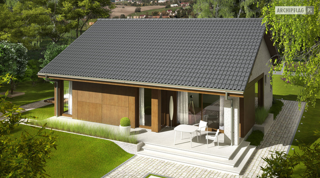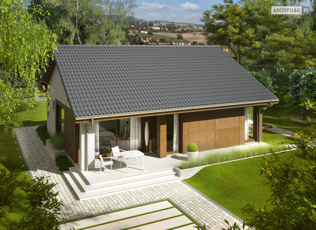 2 sypialnie, mniejsza powierzchnia użytkowa, dach o kącie nachylenia 25°,