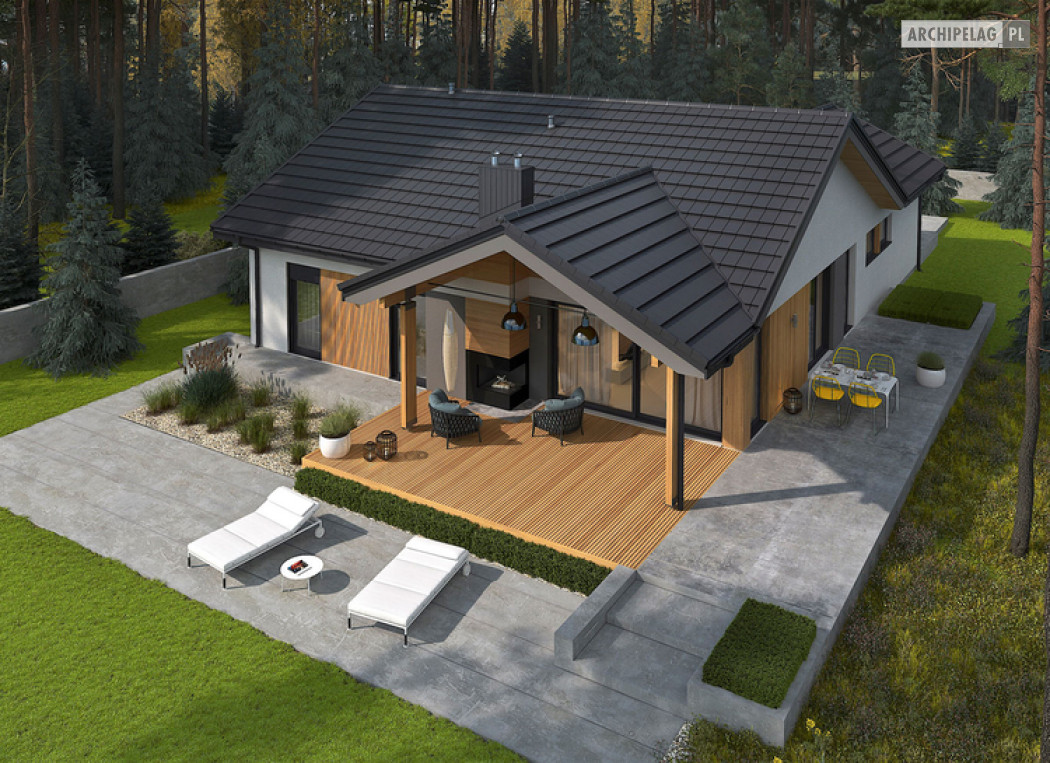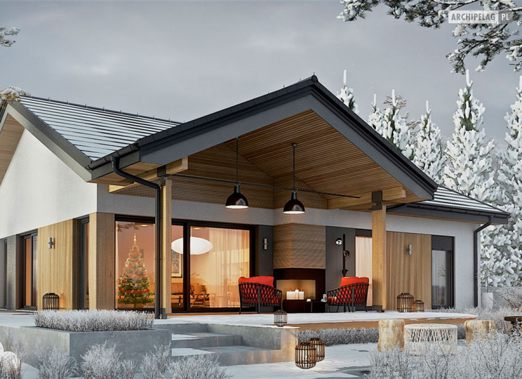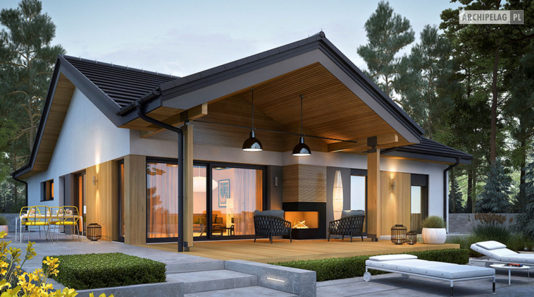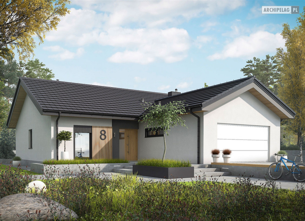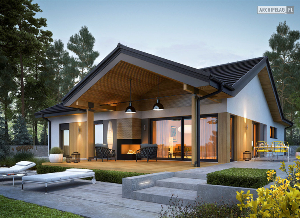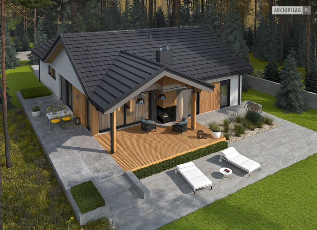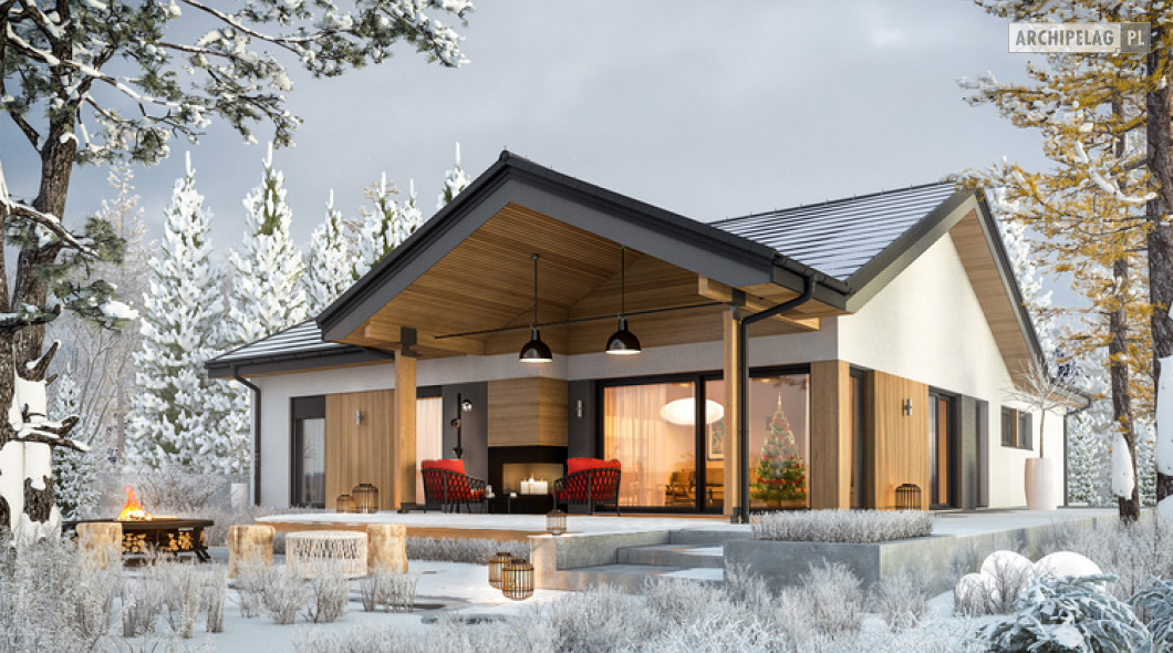 - Simon IV – dom parterowy, 3 sypialnie, dach o kącie nachylenia