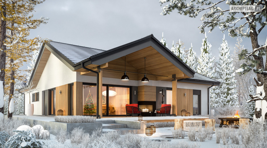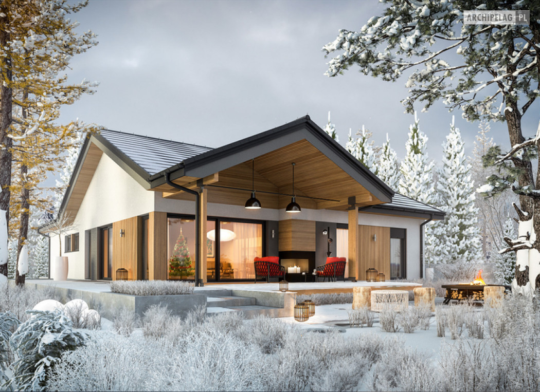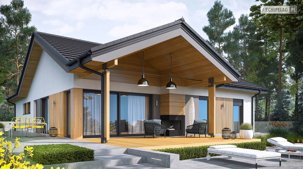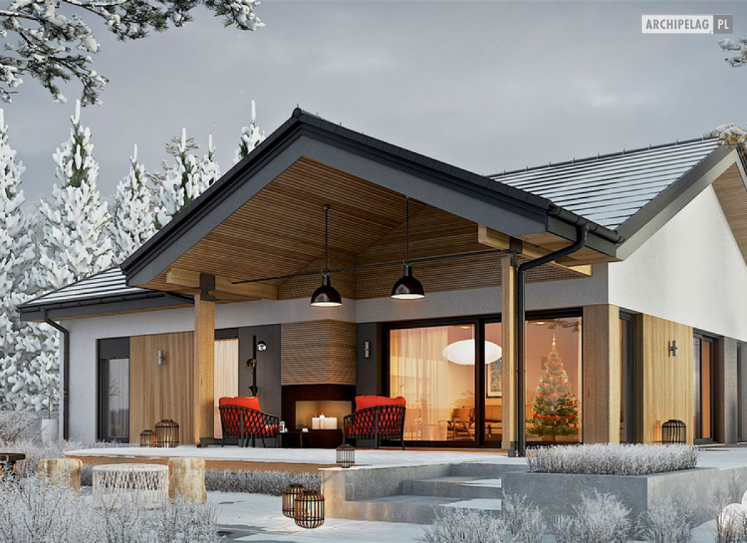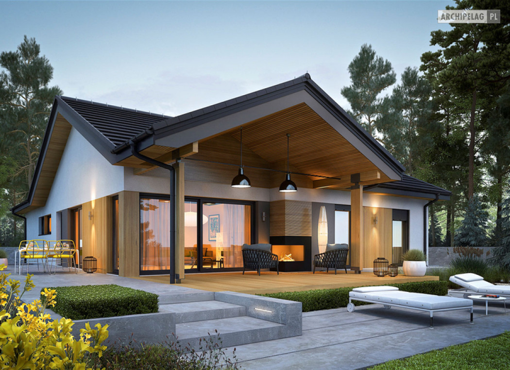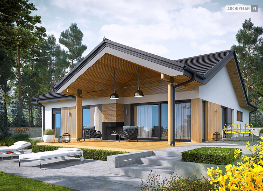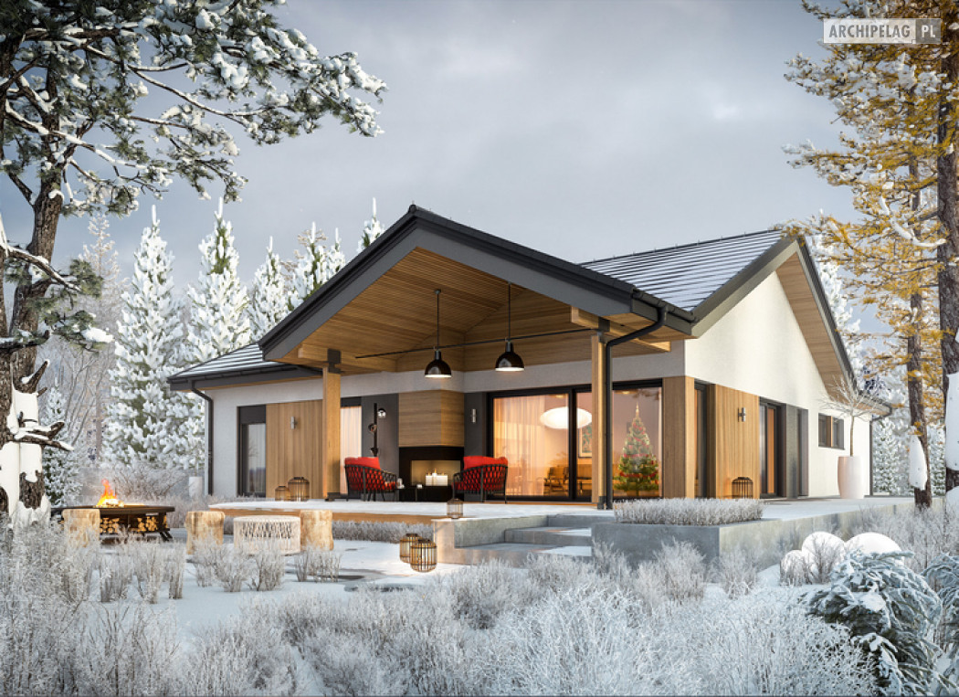 - Simon IV – dom parterowy, 3 sypialnie, dach o kącie nachylenia