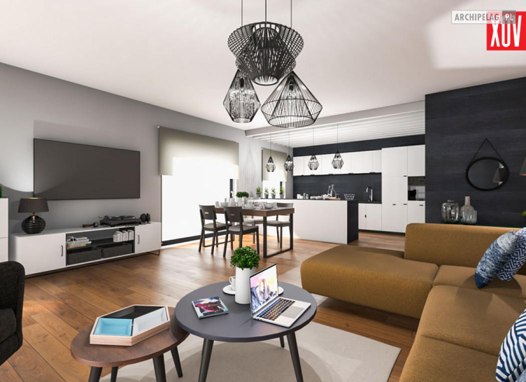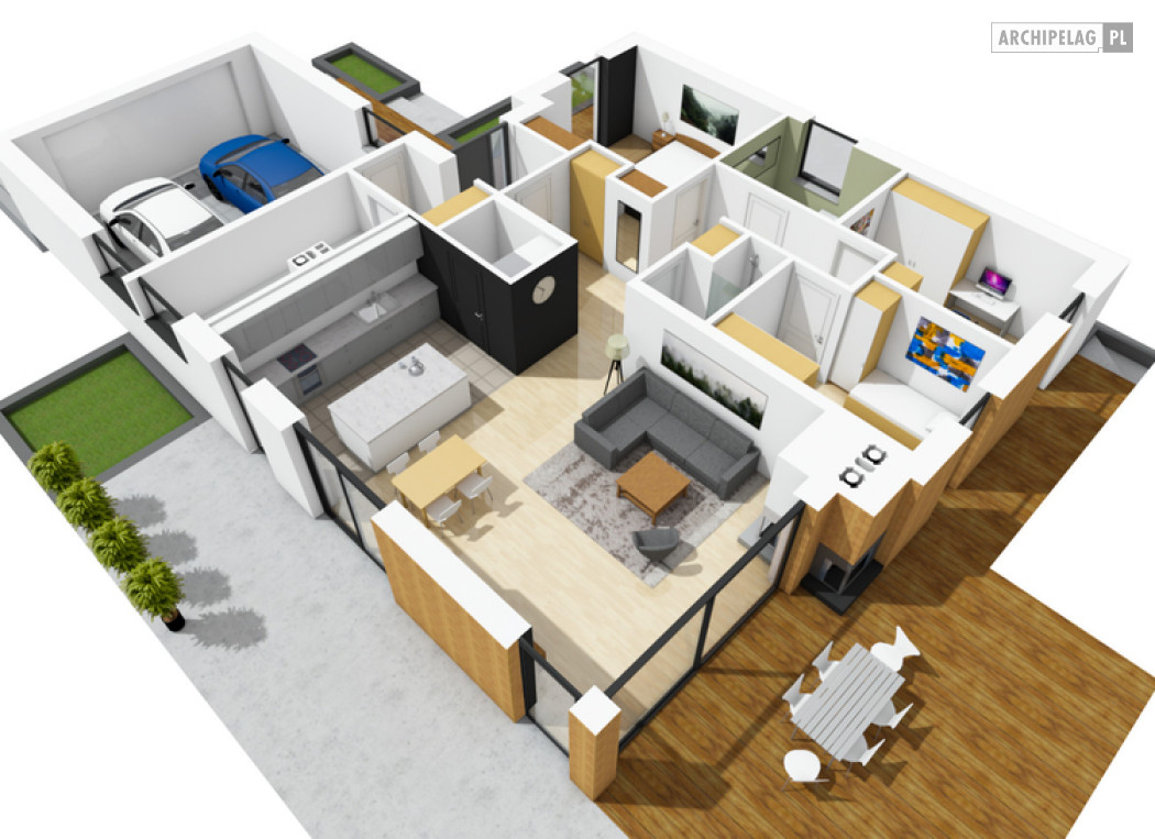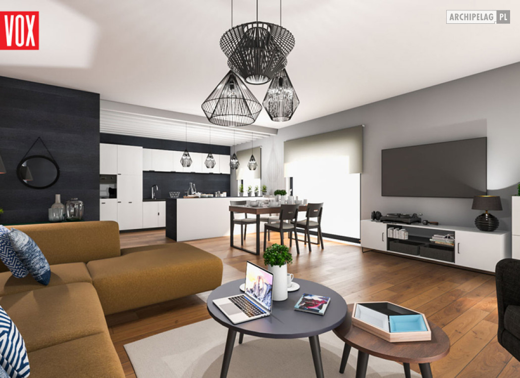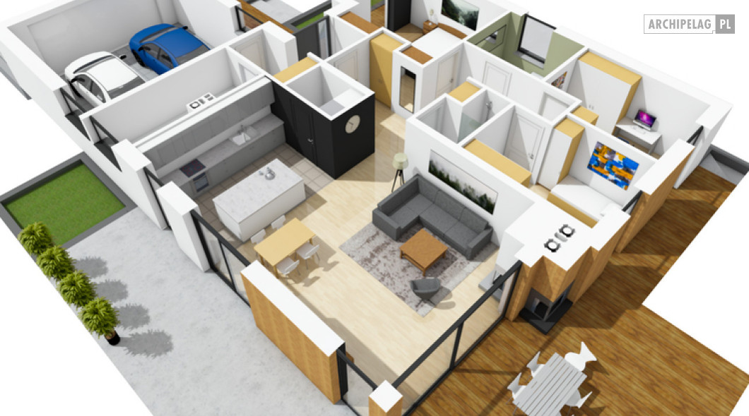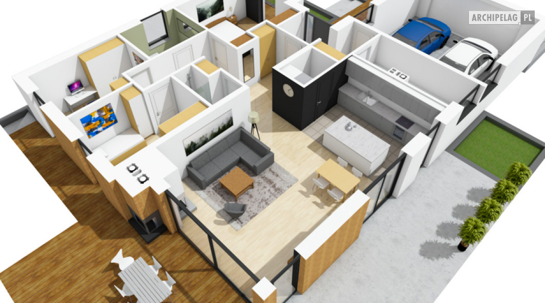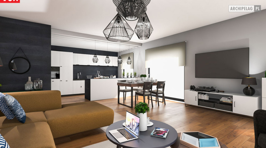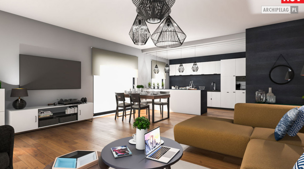 - Simon IV – dom parterowy, 3 sypialnie, dach o kącie nachylenia