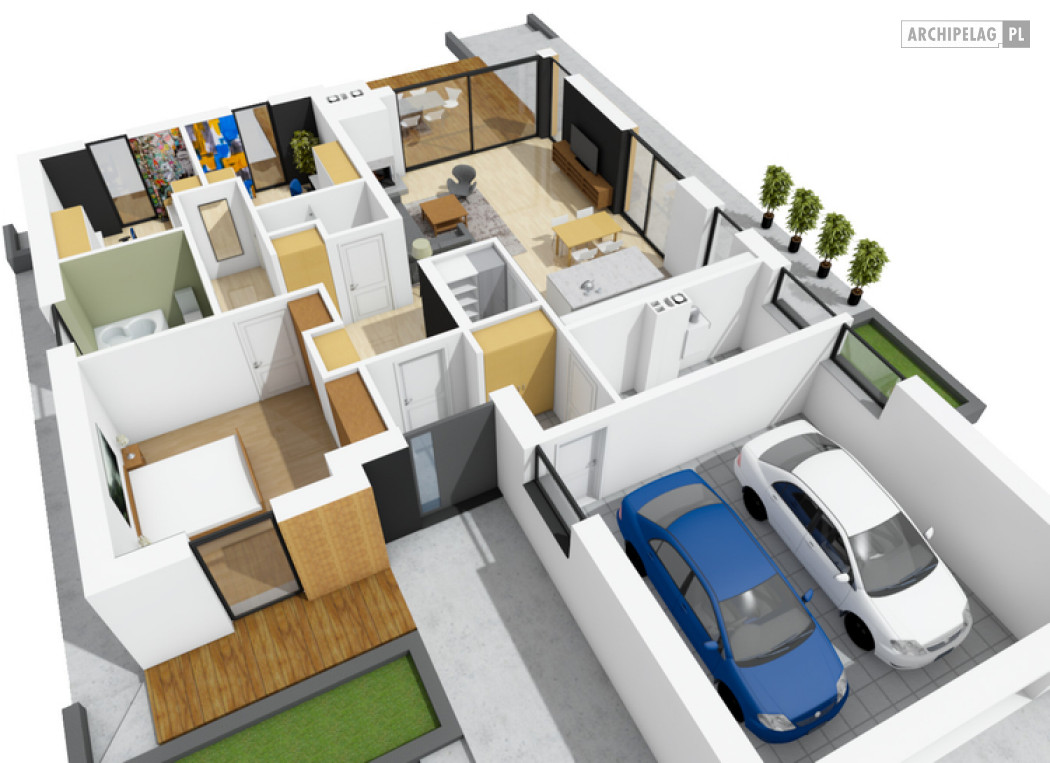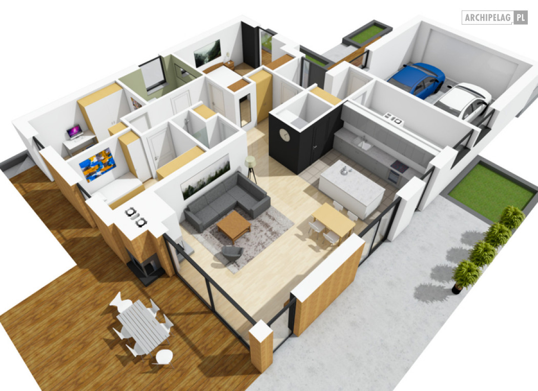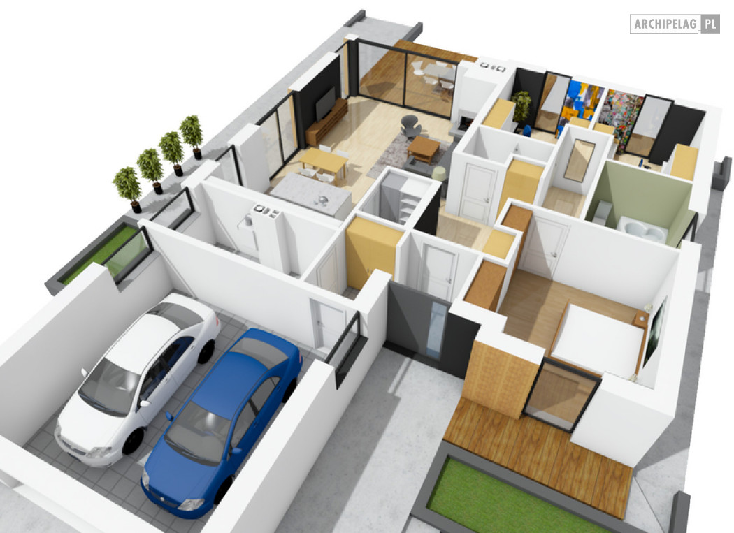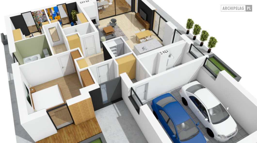 garażem jedno- i dwustanowiskowym (wyjątek: dom dwulokalowy – tylko w wariancie