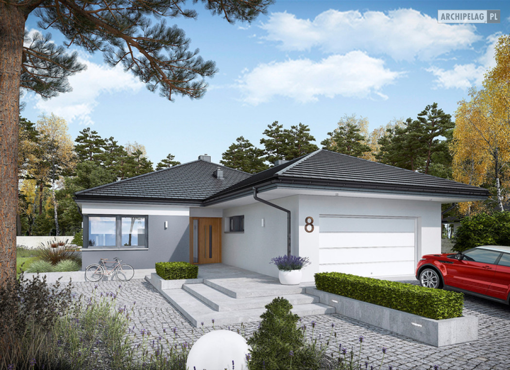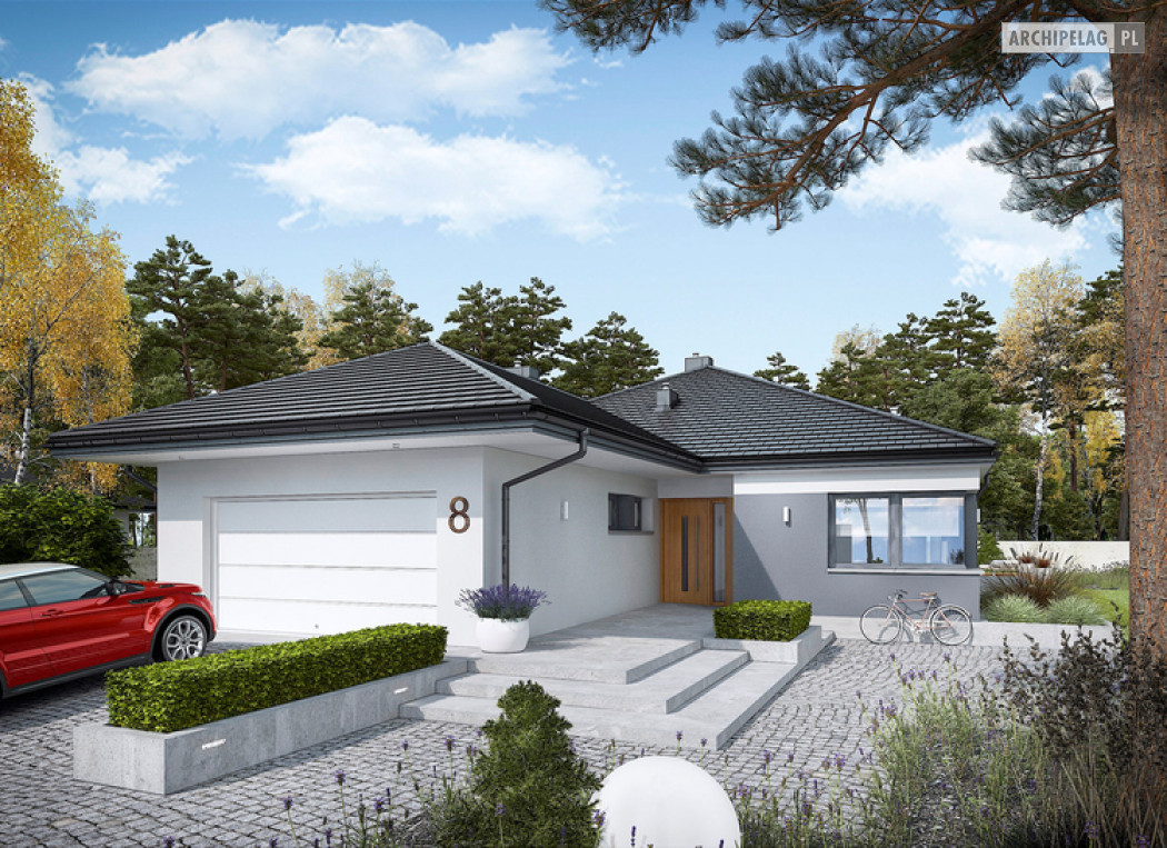 dom parterowy, niepodpiwniczony, z garażem dwustanowiskowym