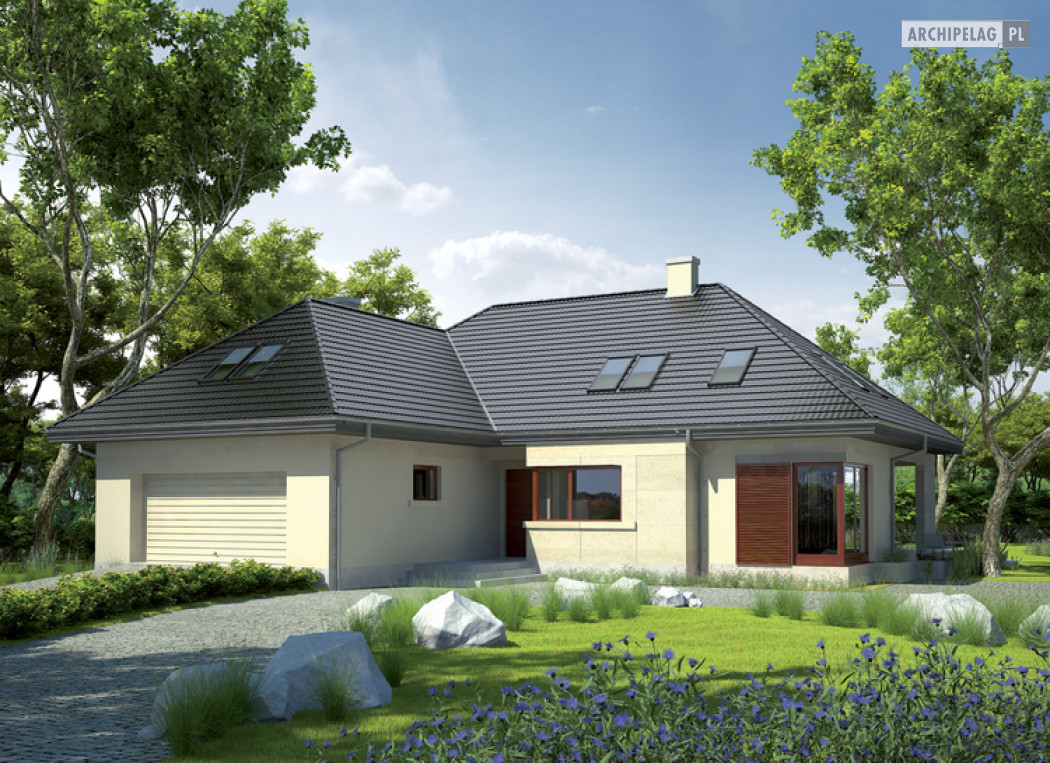 Dom parterowy z poddaszem użytkowym, niepodpiwniczony, z garażem