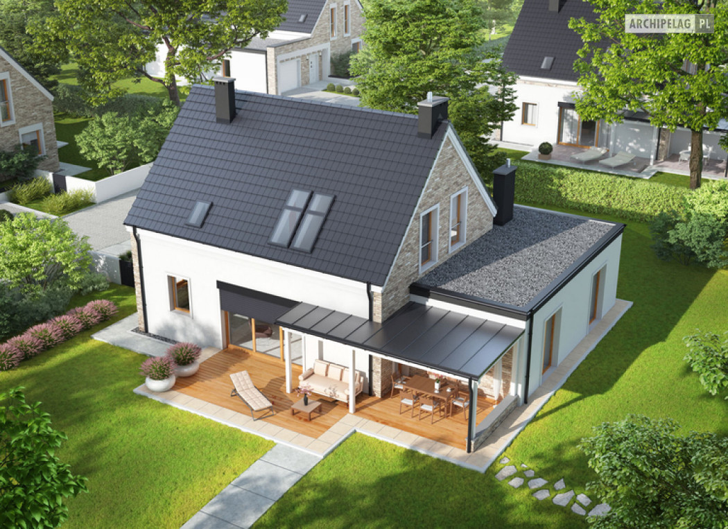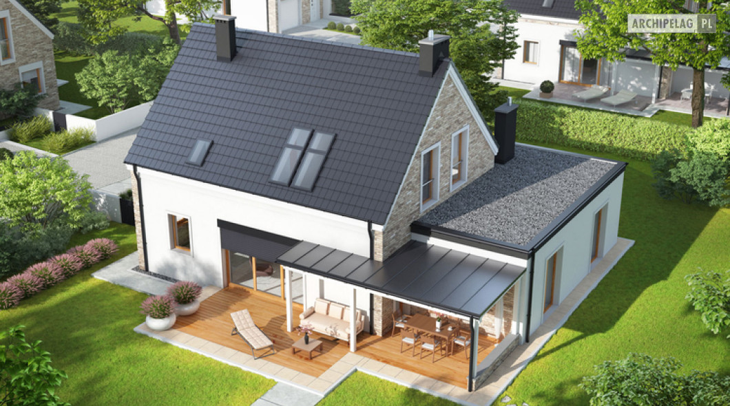 poddaszem użytkowym, niepodpiwniczony, z garażem jednostanowiskowym