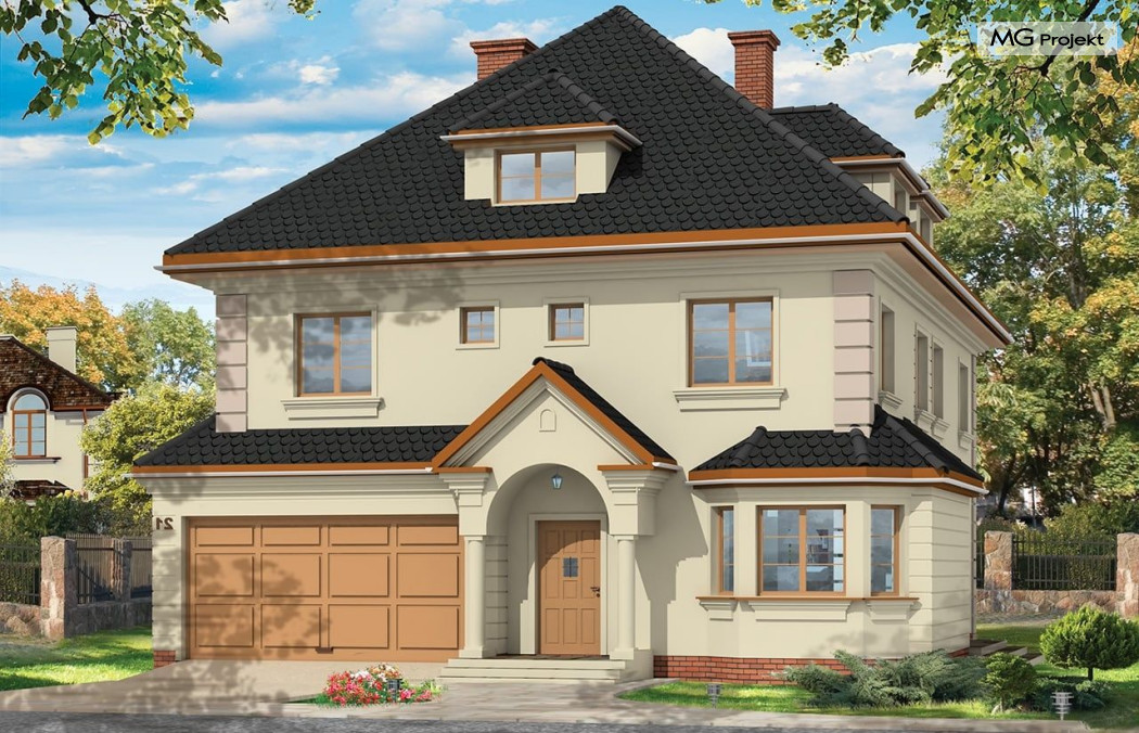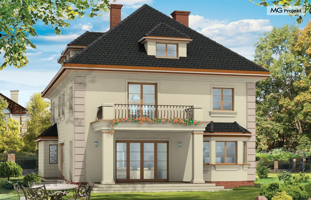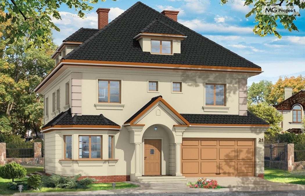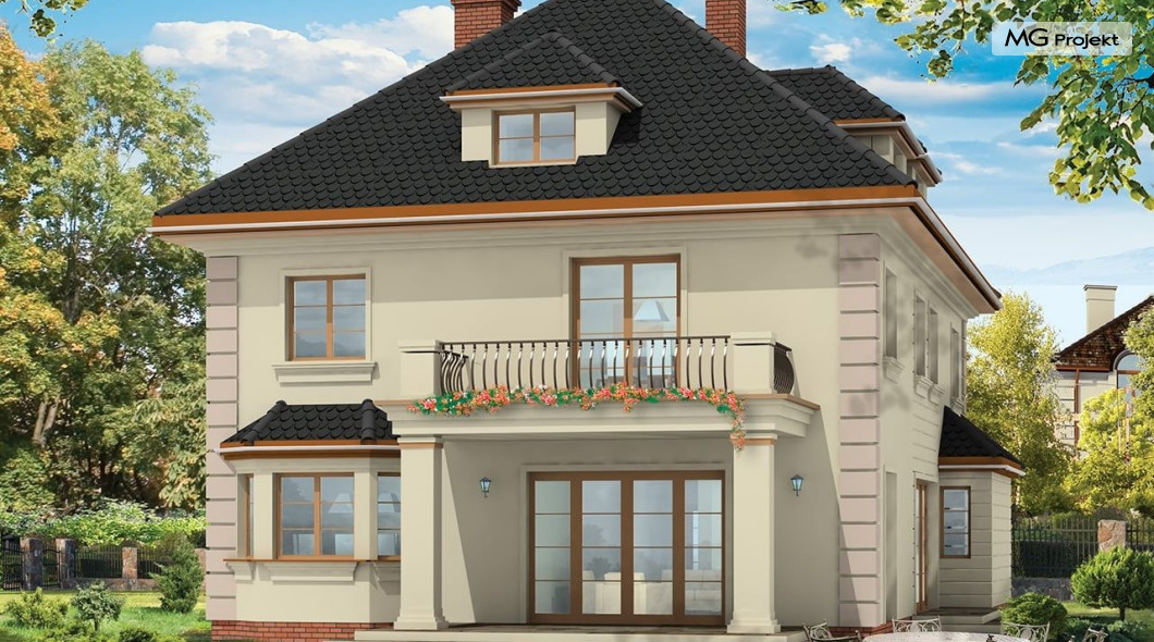 Projekt domu Agat przystosowany jest szczególnie do niewielkich działek z małą możliwą powierzchnią zabudowy. Agat to projekt miejskiej willi o architekturze przywołującej wspomnienie przedwojennych rezydencji z klasycznymi detalami. Wnętrze domu Agat to otwarta przestrzeń dzienna na parterze, oraz pokoje sypialne na piętrze. Domposiada obszerny strych, mogący służyć jako poddasze mieszkalne. Na uwagę zasługuje zwłaszcza osobne wejście gospodarcze, które z uwagi na bliskość schodów może służyć jako osobne wejście do wydzielonego mieszkania na piętrze. Projekt domu Agat dostępny jest także w wersji odbicia lustrzanego oraz w wariancie Projekt domu Agat 2. Zapraszamy!