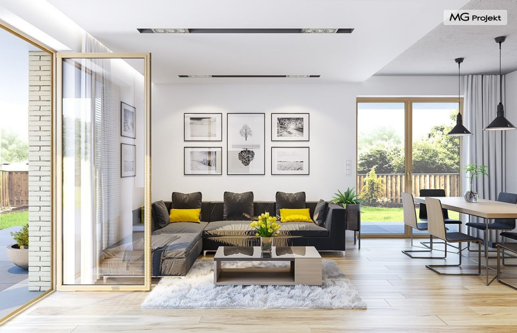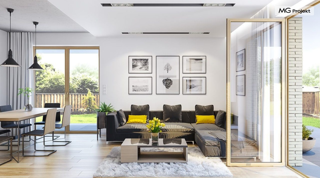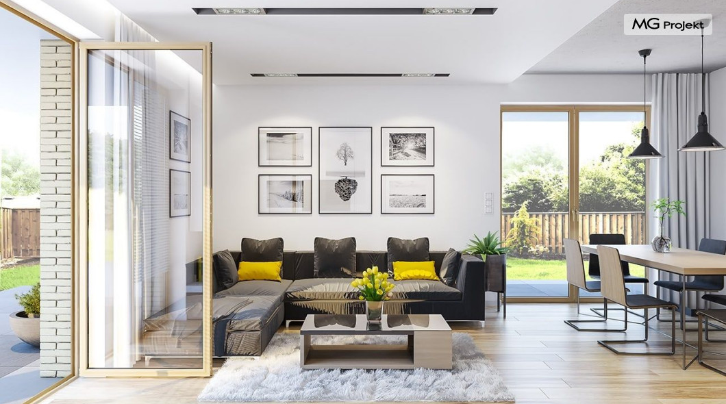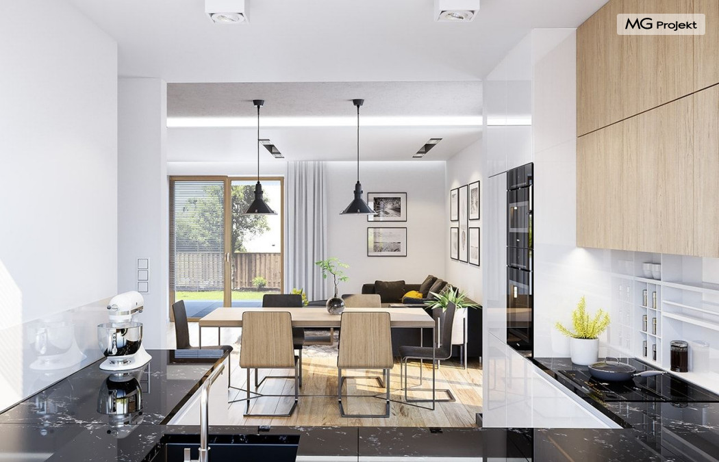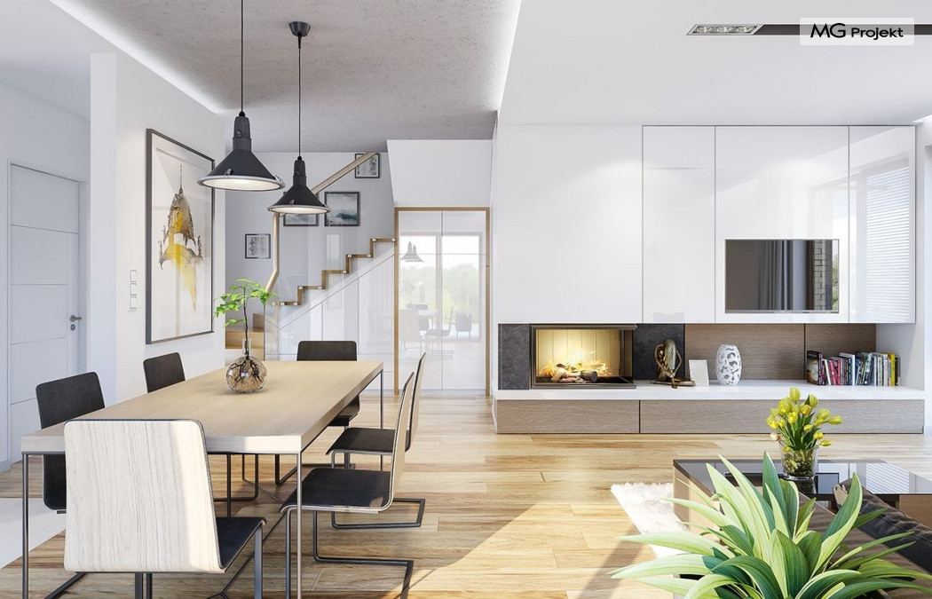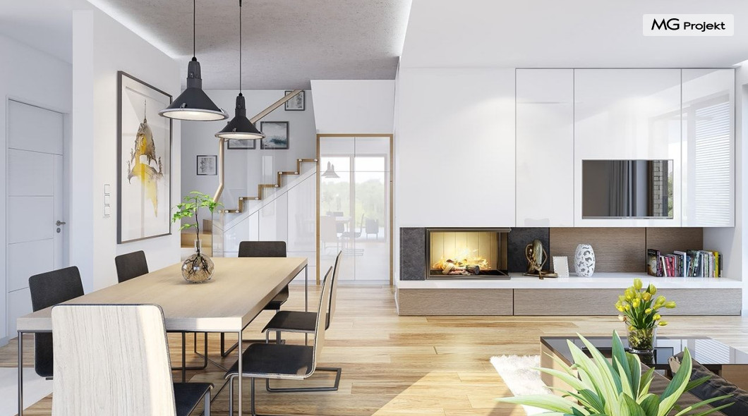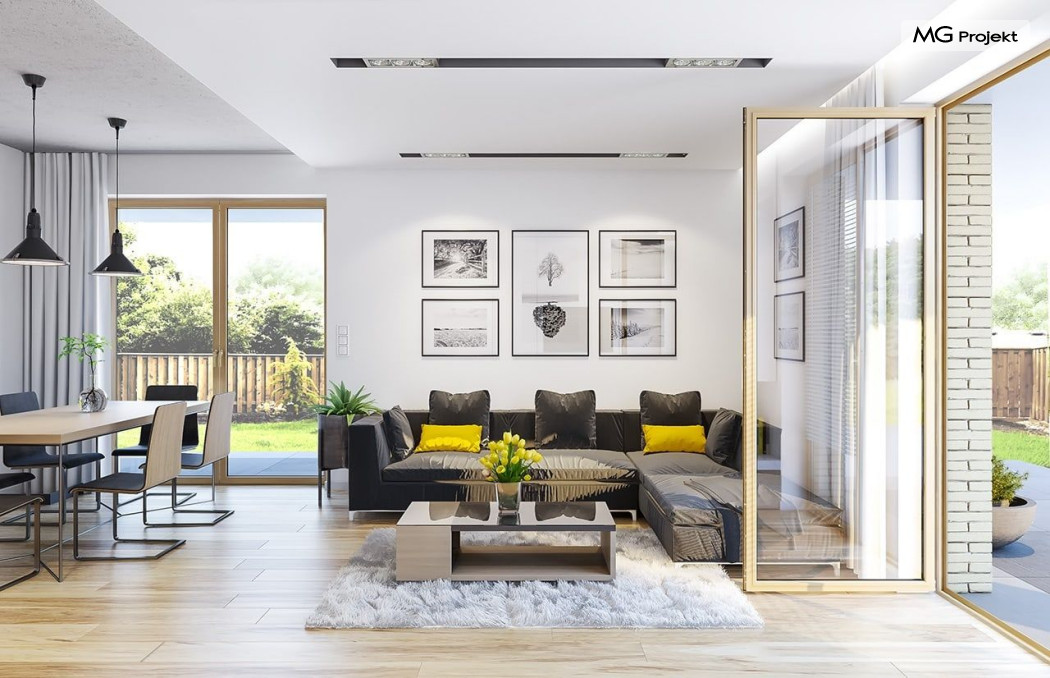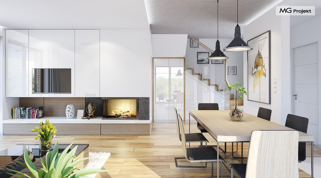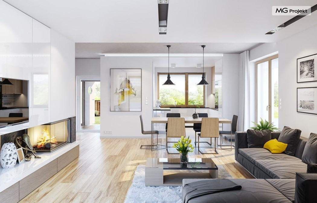 Projekt domu Albatros to prosty w budowie, niedrogi domek z poddaszem użytkowym dla 4-5 osobowej rodziny. Bryła budynku została zaprojektowana na planie prostokąta. Poddasze wieńczy symetryczny dwuspadowy dach. Projekt podporządkowano połączeniu ekonomicznych i funkcjonalnych rozwiązań, z nowoczesną i ciekawą estetyką budynku. Albatros jest klasycznym domem z poddaszem i dwuspadowym dachem, który bez problemu wybuduje każdy wykonawca, a zarazem ma w sobie „coś”: ciekawie dobrane materiały, dobre proporcje brył, właściwą wielkość okien, no i przede wszystkim – funkcjonalne, rozsądnie zaplanowane wnętrze. Parter domu, to przestrzeń dzienna, z wygodnym salonem, centralnym holem z ozdobnymi schodami, częściowo otwartą na salon kuchnią, oraz dodatkowy pokój - gabinet lub sypialnia gościnna i część gospodarcza, czyli garaż i kotłownia. Na poddaszu, dzięki wysokim ściankom kolankowym, mieszczą się trzy przestronne sypialnie, w tym sypialnia rodziców z osobną łazienka i garderobą. Dodatkowo przewidziano tu też miejsce na pralnię – ewentualnie schowek. Projekt domu Albatros mimo niewielkiej powierzchni to przestronny i wygodny budynek, który zapewni komfortowe warunki do życia nawet licznej rodzinie. Energooszczędne rozwiązania – dobre docieplenia, zwarta bryła budynku - pozwolą ograniczyć koszty przyszłej eksploatacji, a prostota konstrukcji domu zapewni mniej stresów podczas budowy. Pracownia posiada wersję odbicia lustrzanego projektu Albatros. Zapraszamy do zapoznania się z pełną ofertą pracowni MG Projekt: projekt domu Albatros 2.