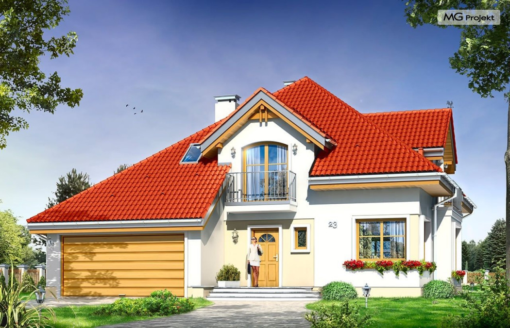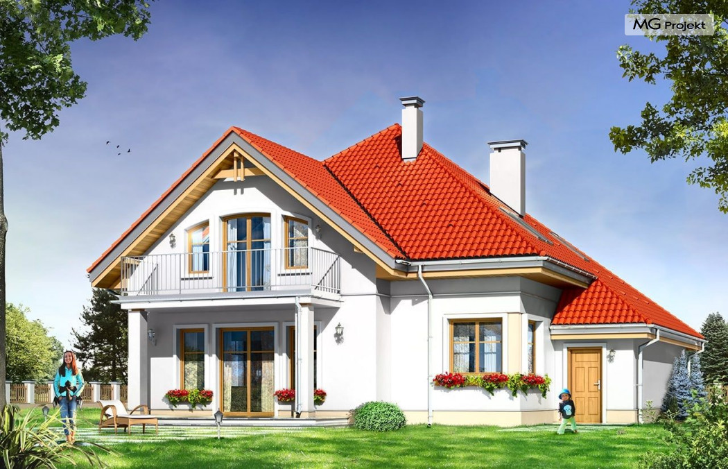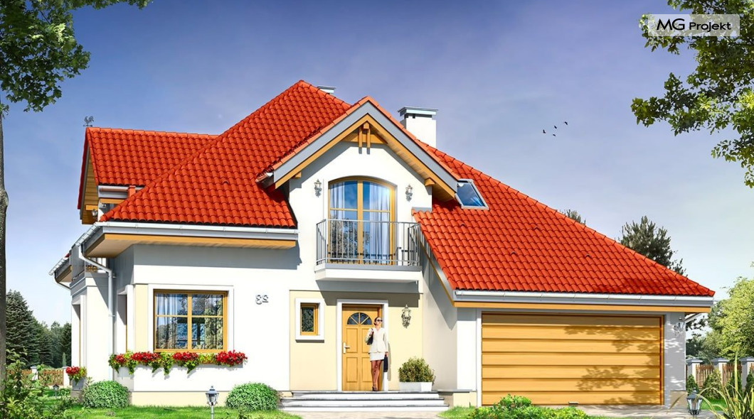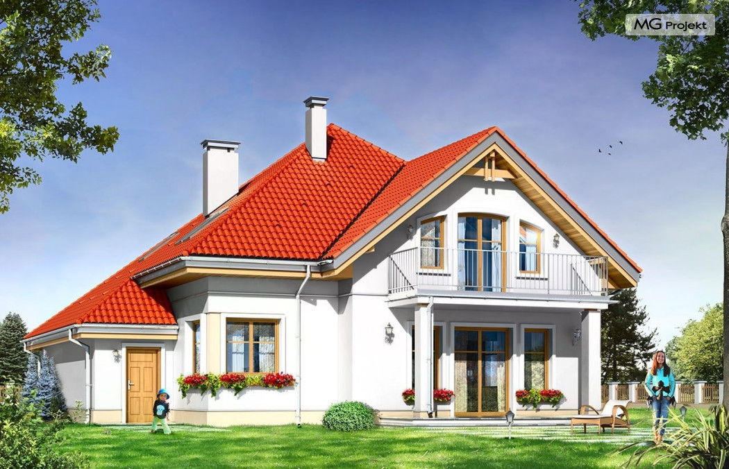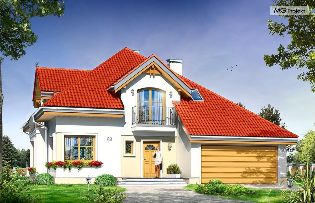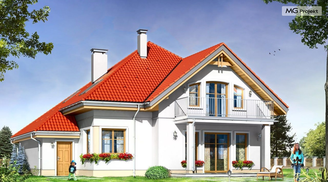 Projekt domu Amadeusz to reprezentacyjna willa jednorodzinna dla cztero-pięcioosobowej rodziny, parterowy z poddaszem użytkowym.