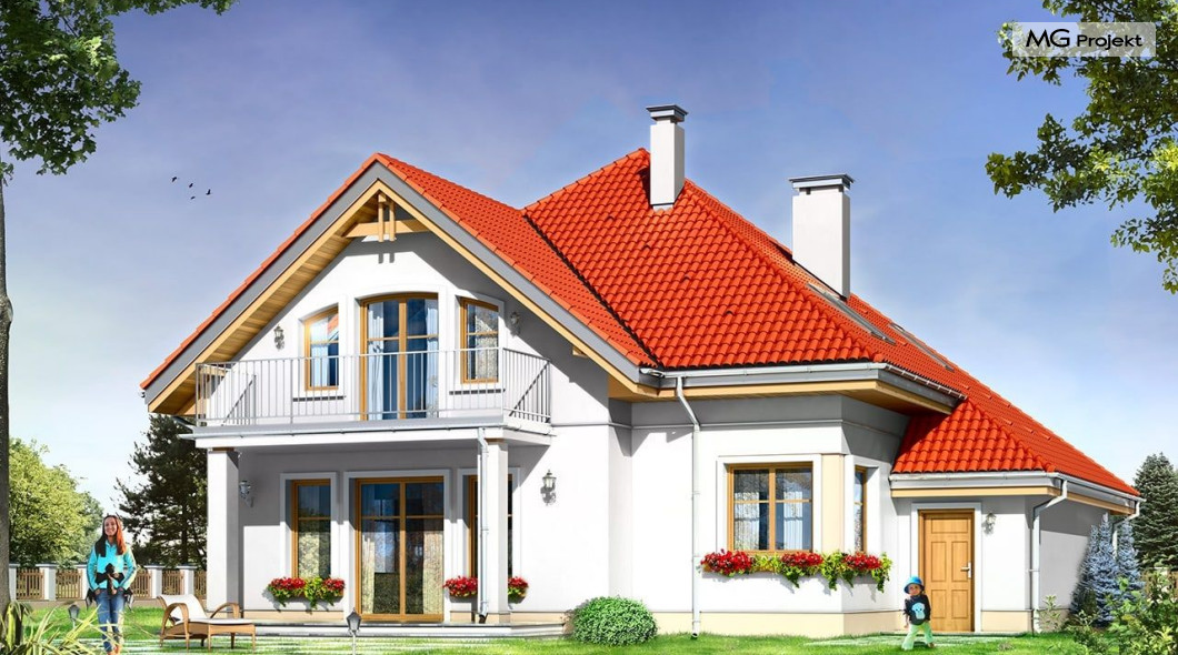 Autorska pracownia architektoniczna MG Projekt dysponuje również projektem domku Amadeusz w odbiciu lustrzanym.