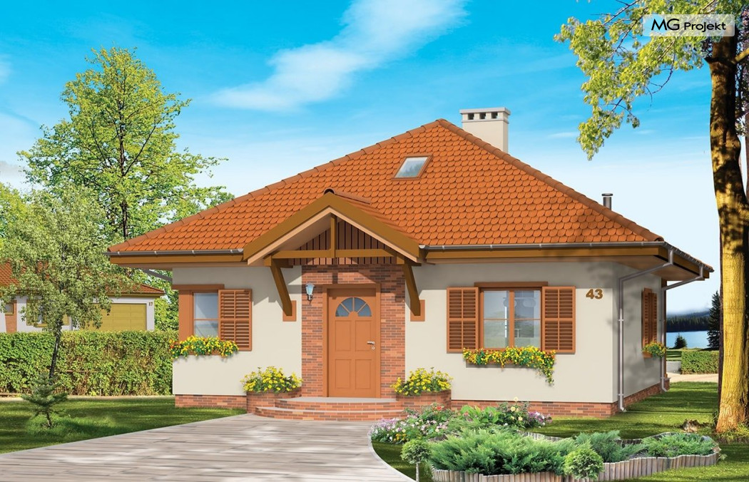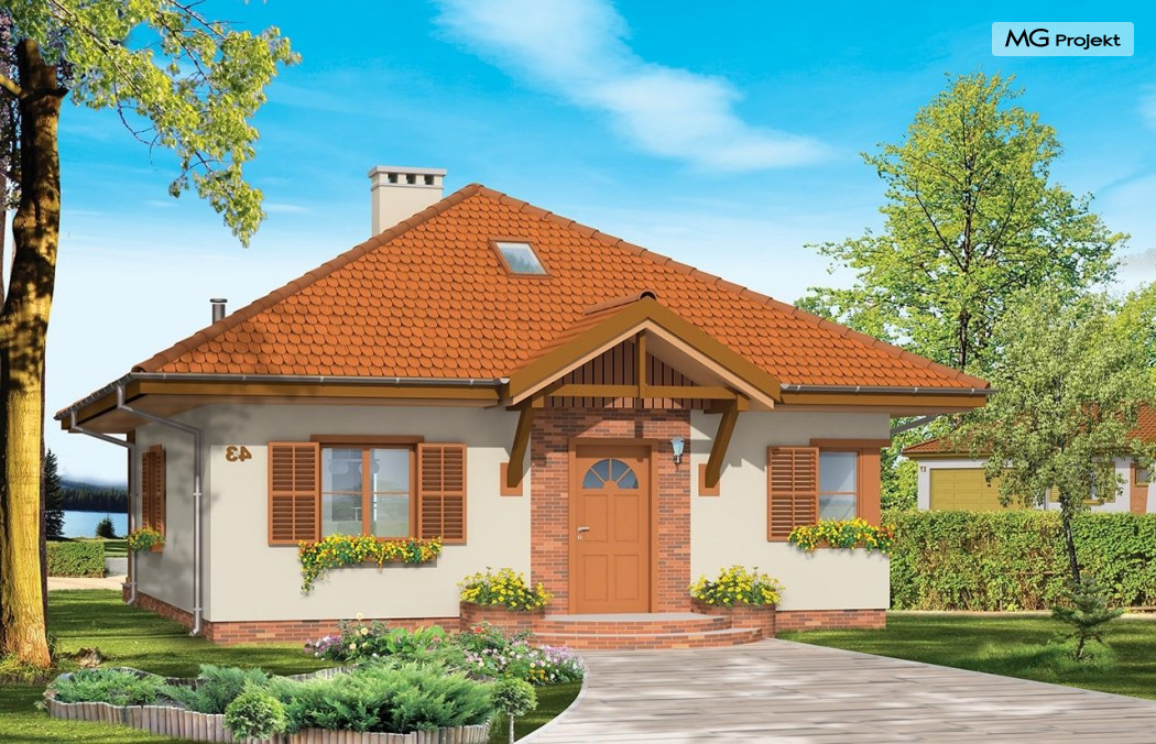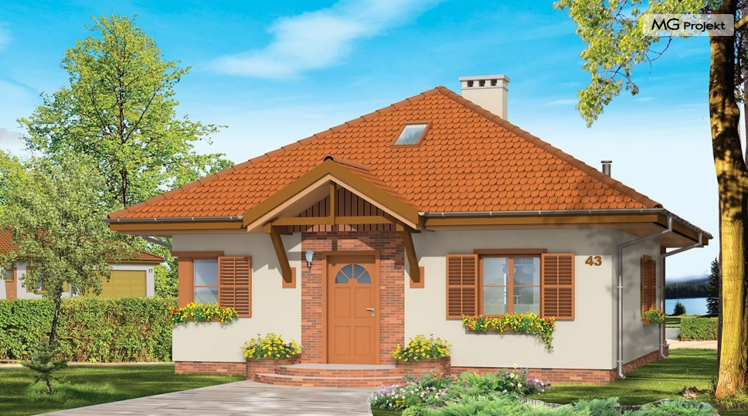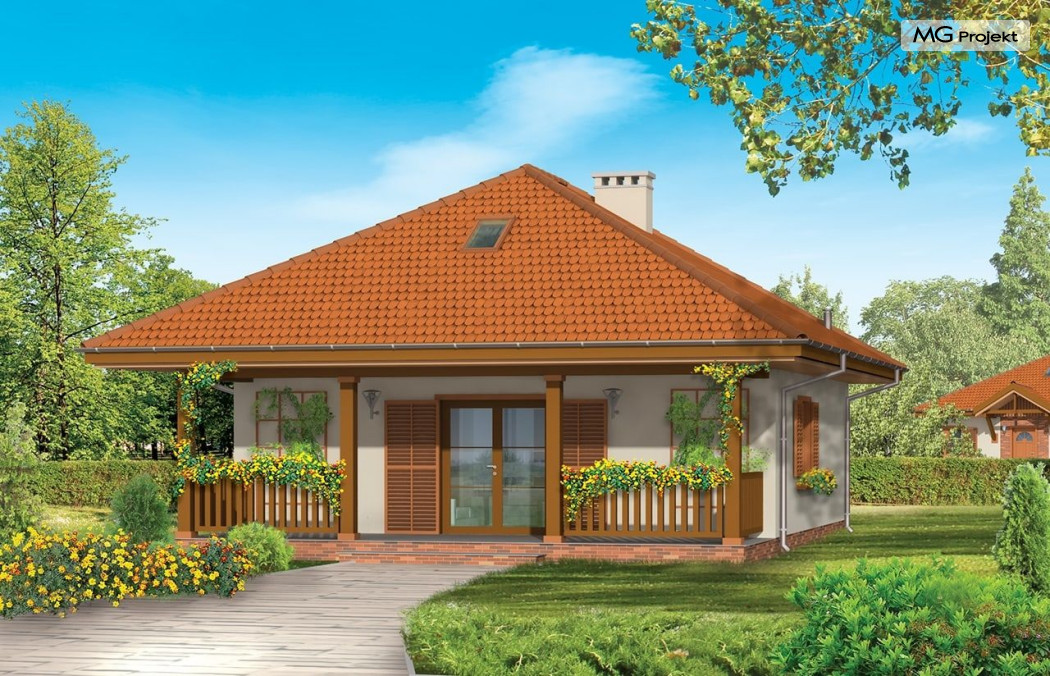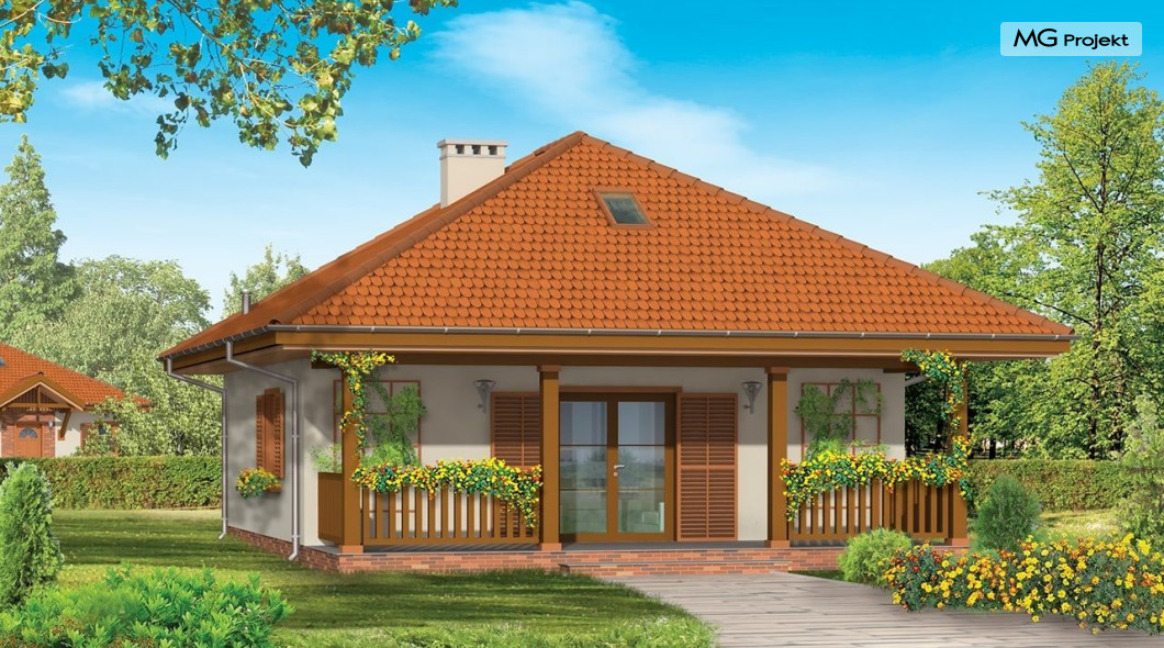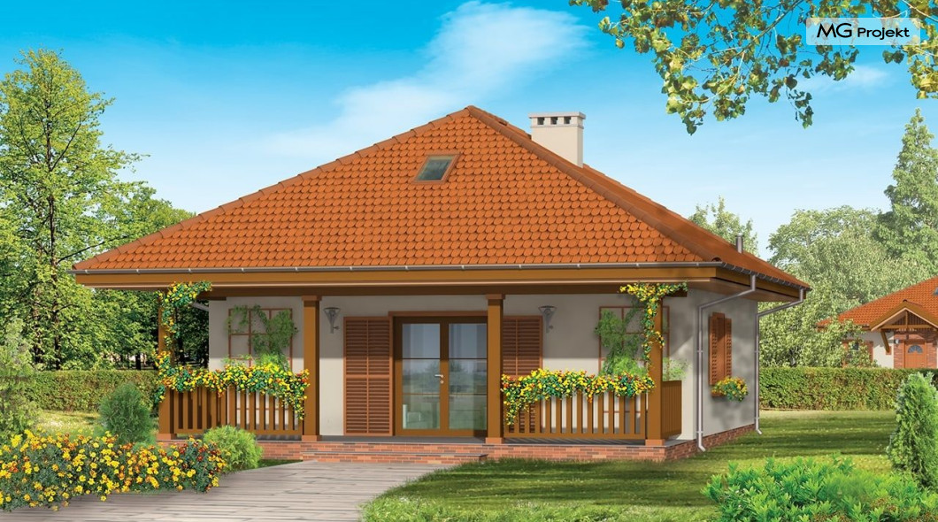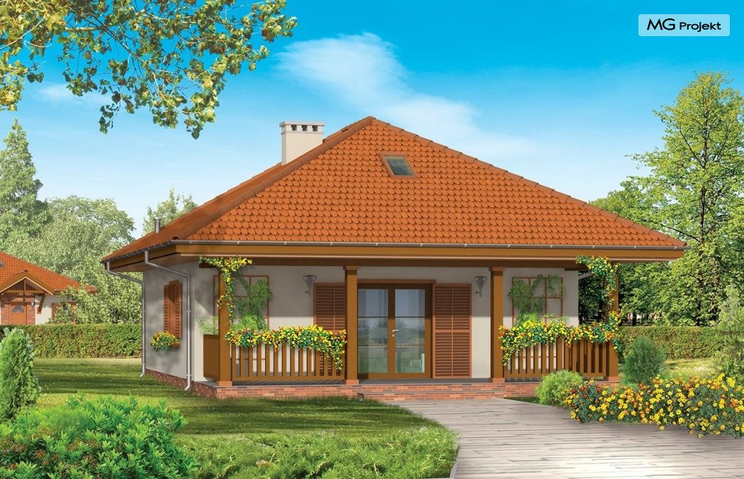 Projekt domu Ambrozja to domek dla 3-4 osobowej rodziny, mogący służyć zarówno jako domek całoroczny jak i letniskowy. Wnętrze projektu domu Ambrozja ukształtowano z podziałem na część ogólną, dzienną - z salonem oraz część prywatną, nocną z dwoma sypialniami i łazienką na parterze oraz dwa pomieszczenia na poddaszu mogące pełnić funkcję sypialni. Pracownia posiada wersję projektu domu Ambrozja z kotłownią w pomieszczeniu gospodarczym, wariant z garażem z boku domu, wersję w technologii szkieletu drewnianego oraz odbicie lustrzanego projektu.