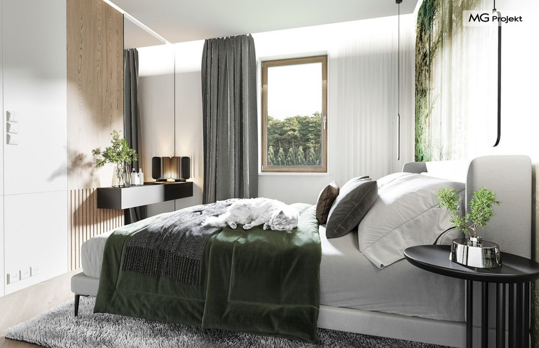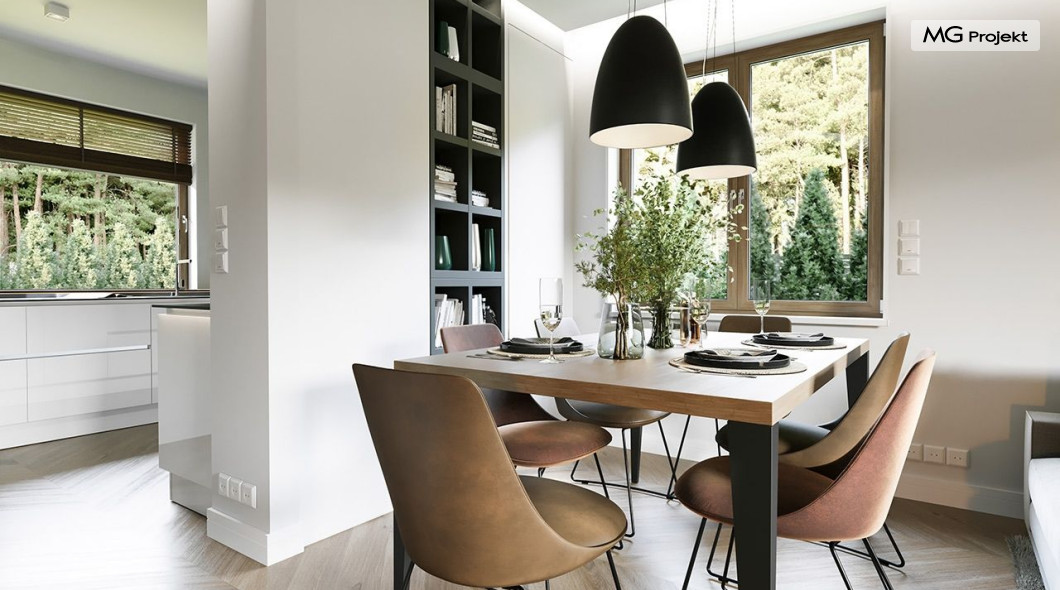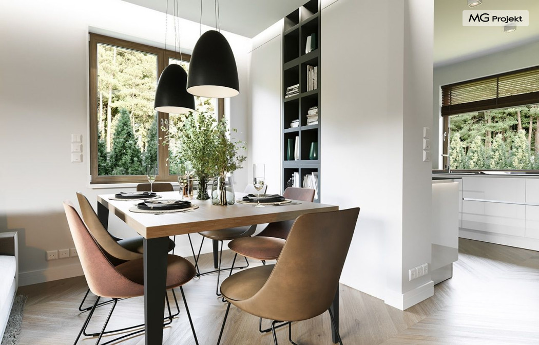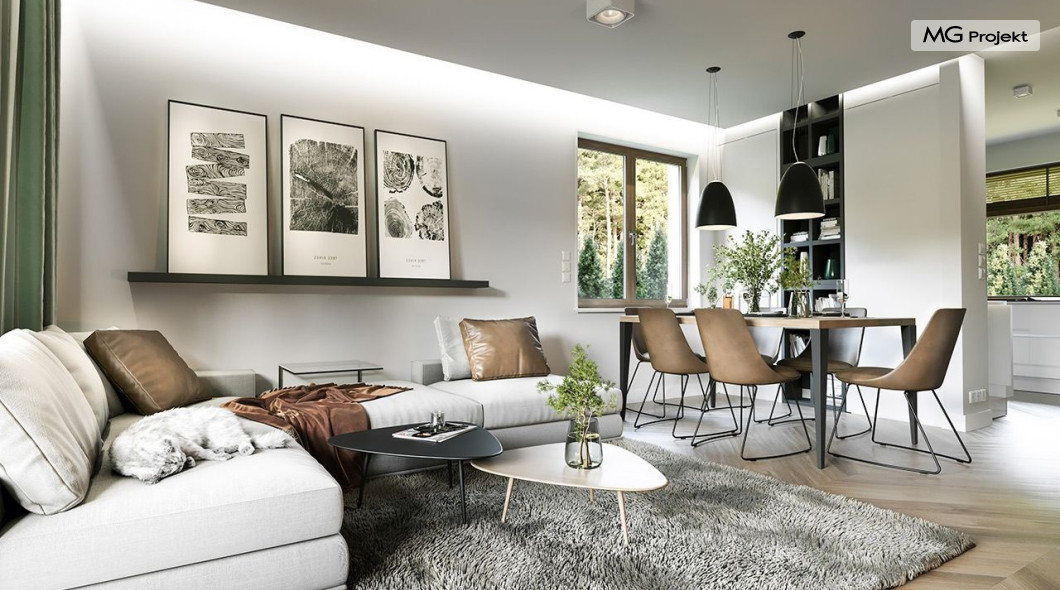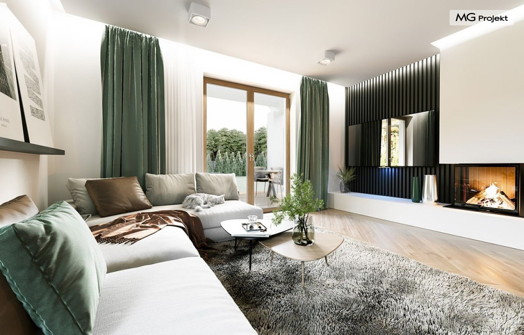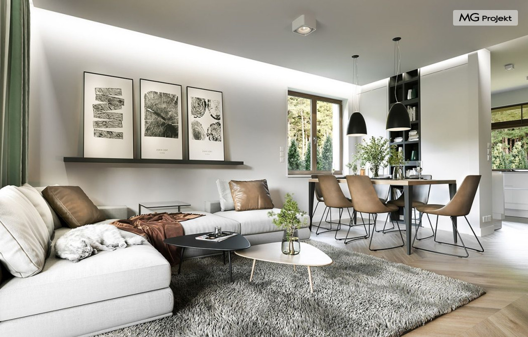 Projekt domu Anatol 2 to kolejna odsłona popularnego projektu domu jednorodzinnego Anatol. Jest to parterowy domek, przeznaczony do zamieszkania dla 4-6cioosobowej rodziny. Dzięki dużemu strychowi, który można zaadaptować na poddasze użytkowe, dom doskonale sprawdzi się dla rozwojowej, rosnącej rodziny, której potrzeby mogą się zwiększać. Dzięki strychowi do adaptacji w łatwy sposób można uzyskać dodatkową powierzchnię mieszkalną. Architektonicznie dom jest prostą ponadczasową bryłą, zbudowaną na planie prostokąta, przekrytą dwuspadowymi dachami. Dobrze dobrane proporcje elewacji, oraz nowoczesne materiały wykończeniowe, dają domowi atrakcyjny i przyjemny dla oka wygląd. Funkcjonalne wnętrze, mieszczące wszystkie pomieszczenia mieszkalne i techniczne na parterze, dopełnia atrakcyjności domu. Na parterze zmieszczono część dzienną z salonem, kuchnią i holem, oraz sypialnie domowników - trzy sypialnie i dodatkowy pokój do pracy. Prócz tego w domu zmieściły się łazienki, garderoba, spiżarnia i kotłownia, oraz garaż. Na strych dostajemy się schodkami z kotłowni. Strych można dowolnie zagospodarować - urządzić tam dodatkowe 2-3 pokoje, lub jednoprzestrzenną powierzchnię. Dom ma prostą konstrukcję, jest łatwy w budowie. Dzięki temu koszty realizacji nie powinny być wygórowane. Dzięki zwartej bryle i dobrym izolacjom dom jest ciepły i energooszczędny. Koszty utrzymania Anatola 2 nie będą wysokie. Zapraszamy do zapoznania się z pełną ofertą pracowni MG Projekt: projekt domu Anatol.