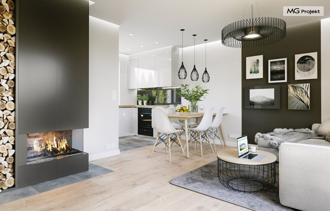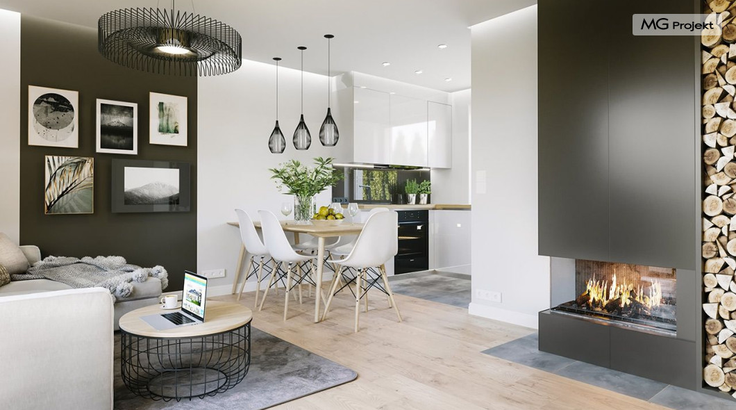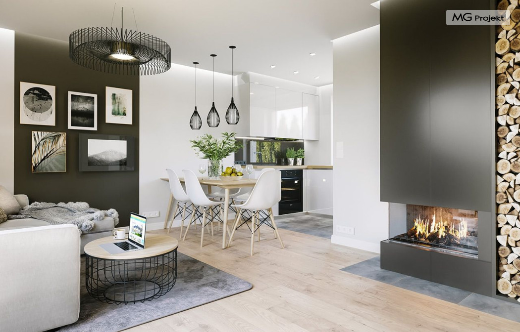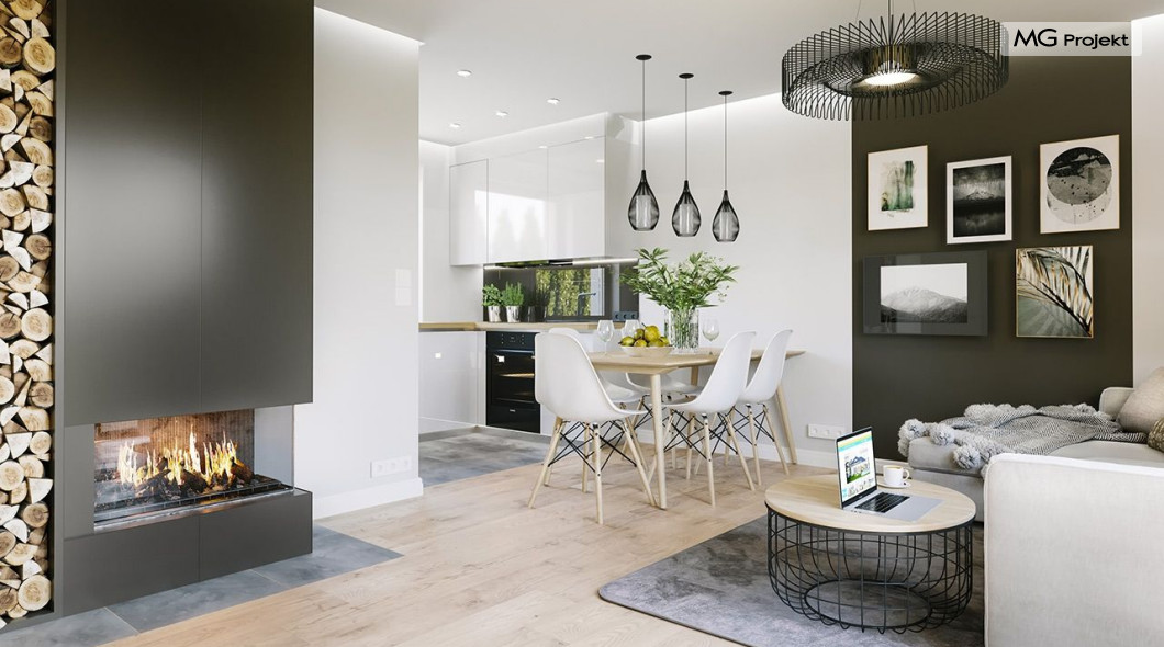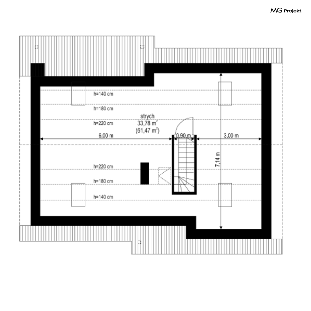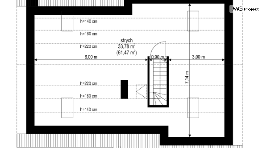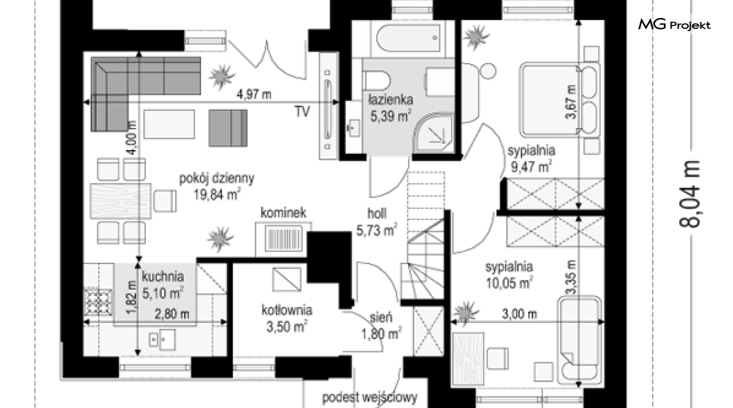 Projekt domu Biedronka 2 jest to wariantowa wersja naszego popularnego niewielkiego domu jednorodzinnego dla trzy-czteroosobowej rodziny, parterowego, przekrytego dwuspadowym łagodnym dachem, ze strychem do adaptacji. Domek ma prostą bryłę i konstrukcję. Jest łatwy w budowie i tani w przyszłej eksploatacji. Dzięki zastosowaniu bardzo dobrego ocieplenia i nowoczesnych instalacji, Biedronka jest budynkiem energooszczędnym. Wygląd zewnętrzny to połączenie nowoczesności z tradycyjną formą. Nowoczesne materiały wykończeniowe i detale architektoniczne łączą się tu z tradycyjną formą parterowego domu na planie prostokąta, z dwuspadowym dachem. Elewacje frontowa i ogrodowa zostały urozmaicone zadaszonymi podcieniami, oraz drewnianymi okładzinami ścian. Oryginalny dach kryty blachą na rąbek można łatwo zastąpić dachówką lub blacho dachówką. Parter domu składa się z części dziennej z salonem, kuchnią i holem, oraz dwóch sypialni z łazienką. Przy przedsionku znajduje się kotłownia gazowa, którą łatwo można zmienić na kotłownię z piecem na paliwo stałe. Strych – poddasze można dowolnie zagospodarować. Mimo niewielkiej powierzchni dom ma przestronne i wygodne wnętrze. Biedronka 2 jest budynkiem całorocznym, może być też wykorzystywana jako dom wakacyjny. Prosta i łatwa konstrukcja pozwoli zaoszczędzić na kosztach budowy. Biedronka to z pewnością propozycja dla rozsądnie myślącego Klienta. Zapraszamy do zapoznania się z pełną ofertą pracowni MG Projekt: projekt domu Biedronka.