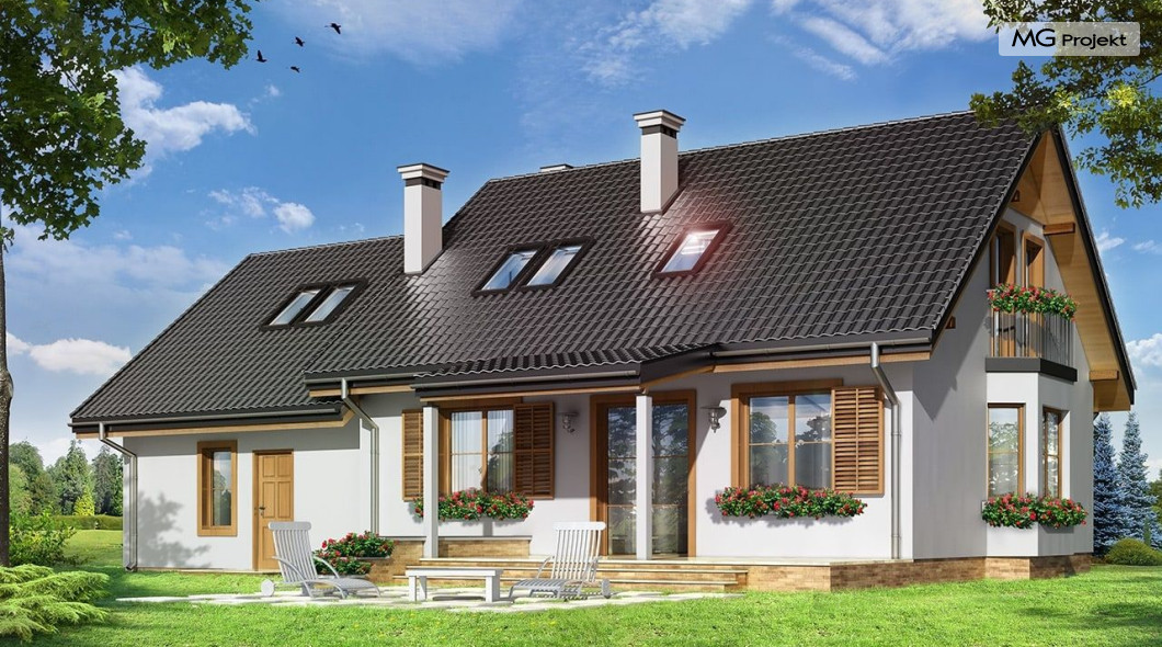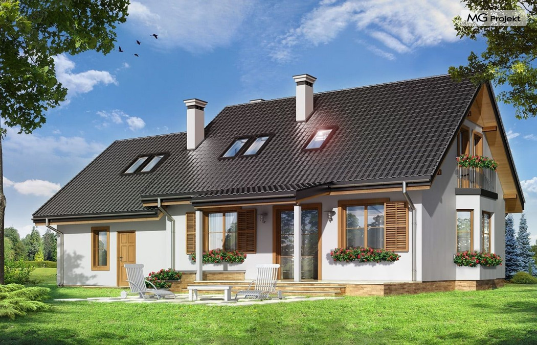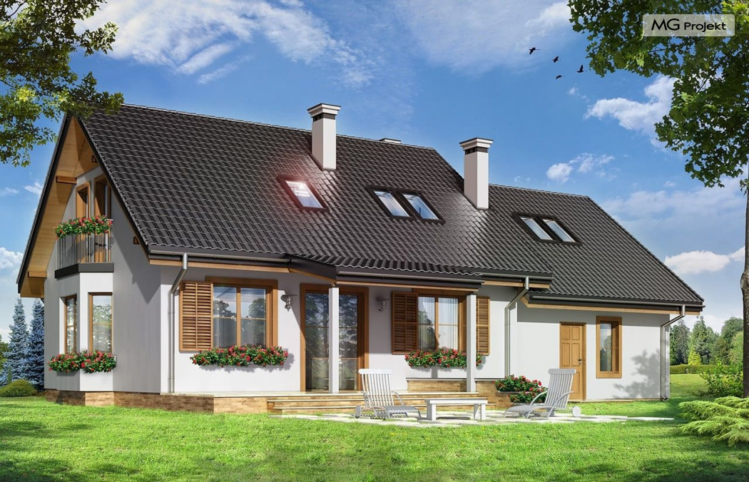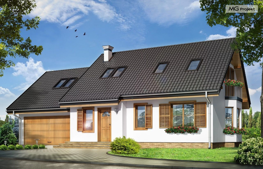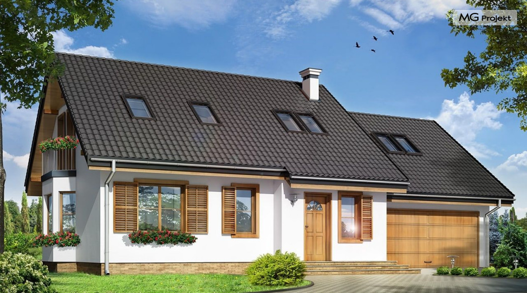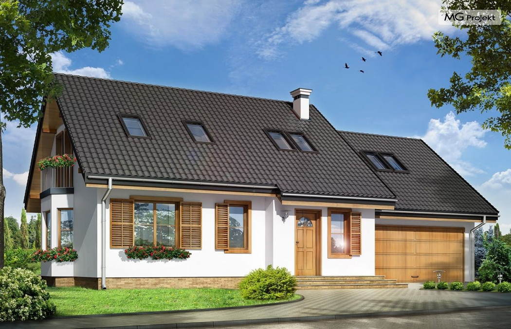 Projekt domu Bryza 2 stanowi wariantową wersję projektu Bryza. Od podstawowej wersji projektu odróżnia go powiększony, dwustanowiskowy garaż. Bryza 2 to nieduży domek dla cztero-pięcioosobowej rodziny, który można zaadoptować nawet na niewielką działkę. Prosta, łatwa w budowie bryła budynku została przekryta dwuspadowymi dachami. Projekt pozwala na połączenie dwóch domów w budynek bliźniaczy, stykający się garażami. Na powierzchni poniżej 140 m2 zaplanowano trzy pokoje na poddaszu, salon i dodatkowy pokój na parterze. Na poddaszu domu, nad garażem, można zaadaptować strych na dodatkowe dwa pokoje. W projekcie domu Bryza 2 zaplanowano dwa pomieszczenia gospodarcze, dostępne z garażu. Dostępny jest również projekt w wersji odbicia lustrzanego. Zapraszamy do zapoznania się z pełną ofertą pracowni MG Projekt: Bryza, Bryza 3, Bryza 4, Bryza 5 (NF 40) , Bryza 6 (MDM) .