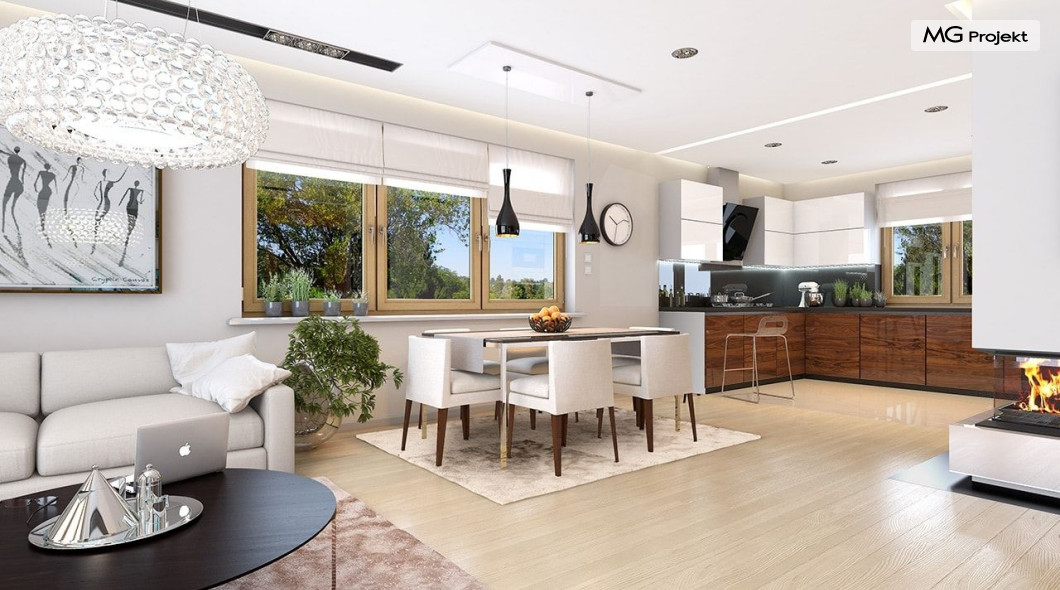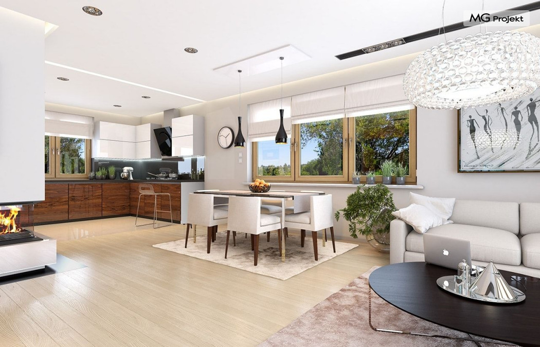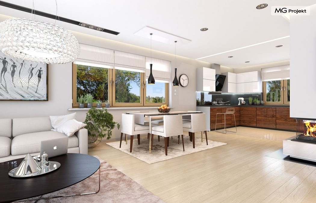 Projekt domu Bursztyn to propozycja budynku jednorodzinnego dla 4-5 osobowej rodziny.