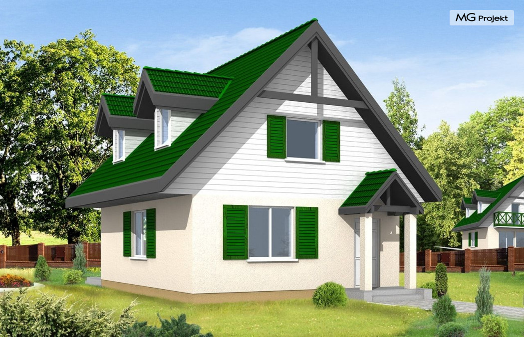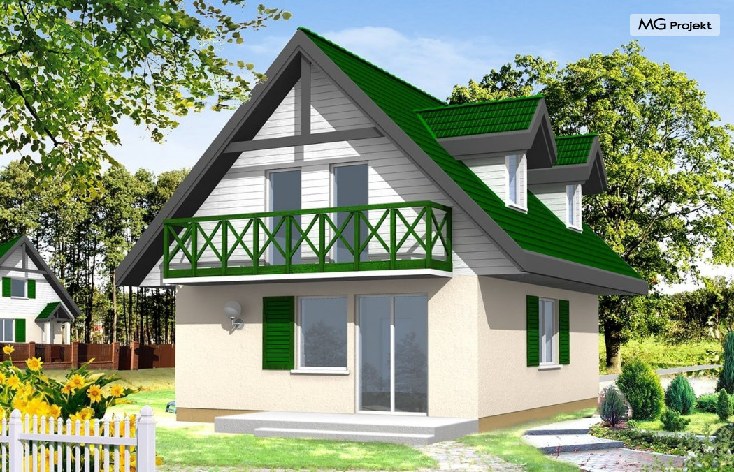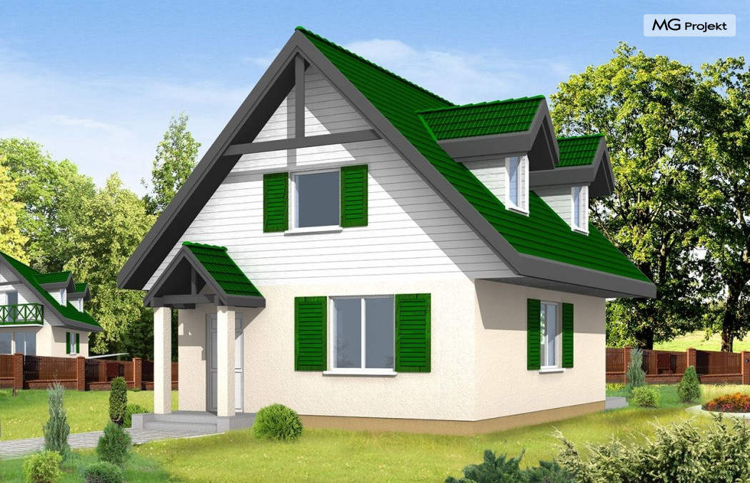 Projekt domu D03 to budynek jednorodzinny z użytkowym poddaszem. Domek parterowy zaprojektowany z myślą o 3-4 osobowej rodzinie. Mimo niedużej powierzchni dom doskonale spełnia wymagania. Dzięki funkcjonalnemu rozplanowaniu jest bardzo wygodny. W projekcie D03 zaplanowano część dzienną na parterze. Na poddaszu mieszczą się trzy sypialnie. Pracownia dysponuje także innymi wersjami wariantowymi domu D03, jak również odbiciem lustrzanym projektu. Zapraszamy do zapoznania się z pełną ofertą pracowni MG Projekt: D03 Grześ drewniany, D03 z garażem.