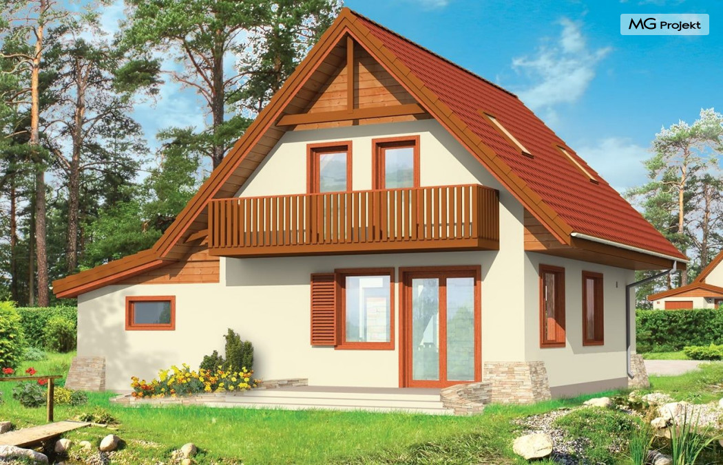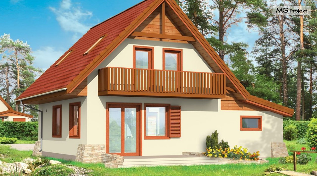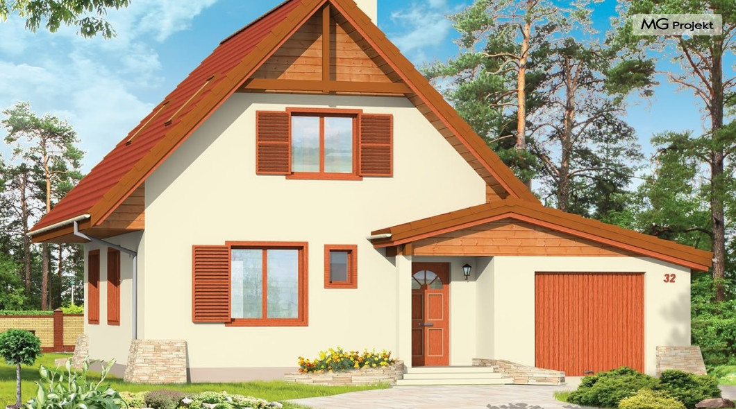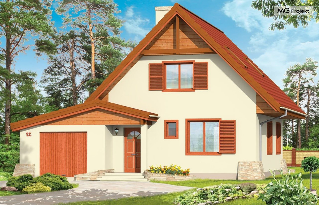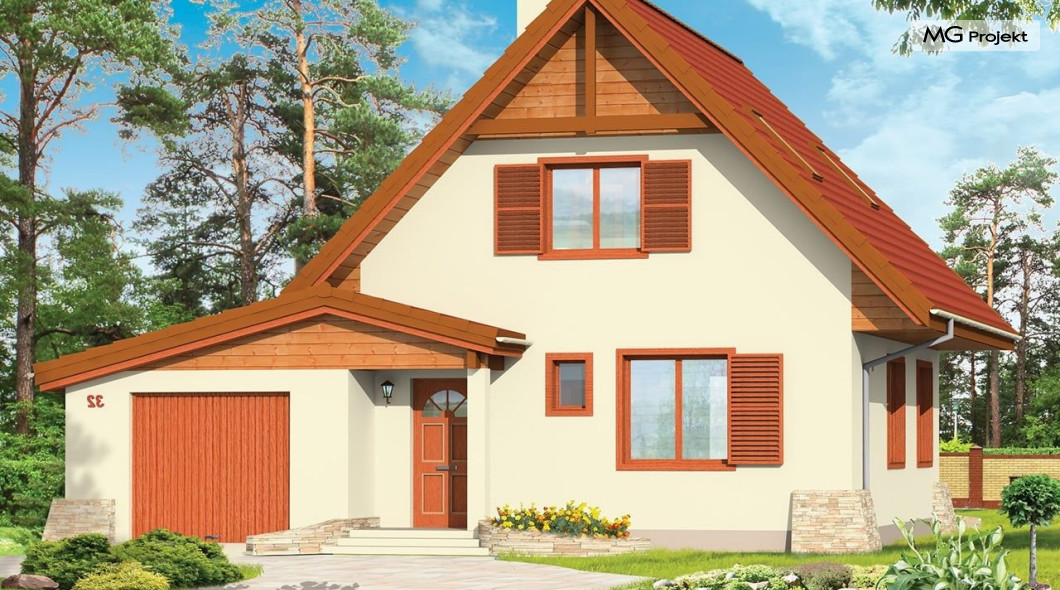 Projekt domu D03 z Garażem stanowi rozbudowaną wersję projektu D03. Do pierwotnego projektu dodano garaż i pomieszczenie gospodarcze mogące pełnić rolę kotłowni. Na parterze mieści się duży salon z kominkiem i otwarta kuchnią. Na poddaszu zaplanowano trzy sypialnie. Występują dwie wersje ogrzewania - kocioł gazowy oraz na paliwo stałe. Dostępne jest także odbicie lustrzane projektu D03 z Garażem, oraz wariant z pomieszczeniem gospodarczym za garażem i z lukarnami w dachu. Zapraszamy do zapoznania się z pełną ofertą pracowni MG Projekt: D03, D03 Grześ drewniany.