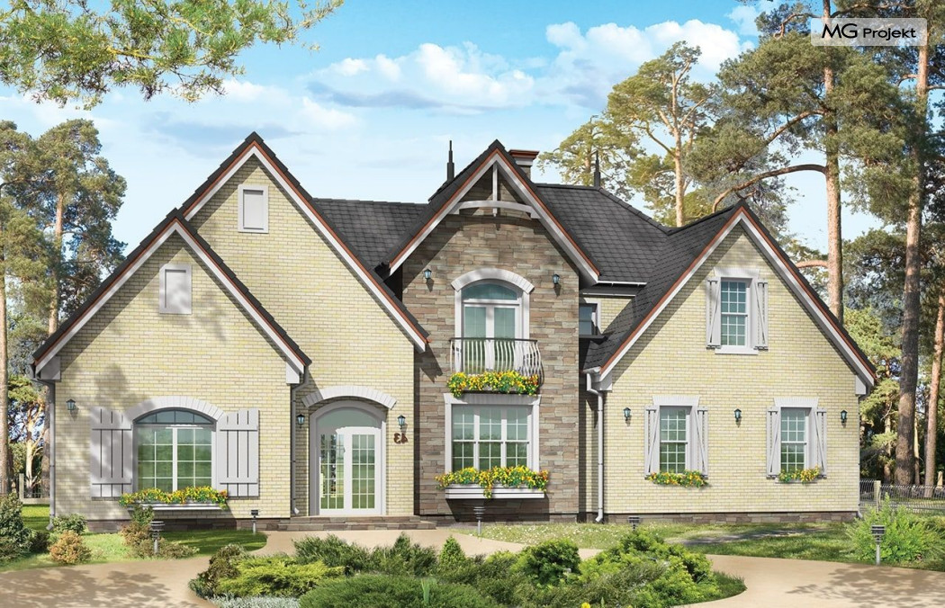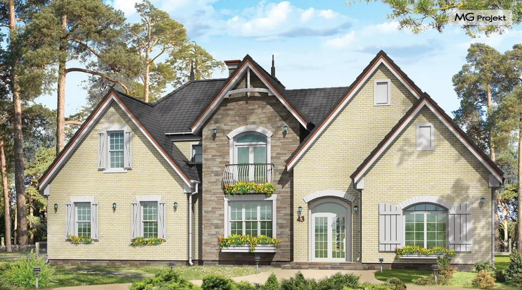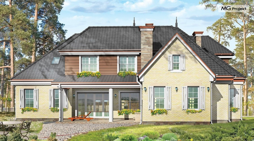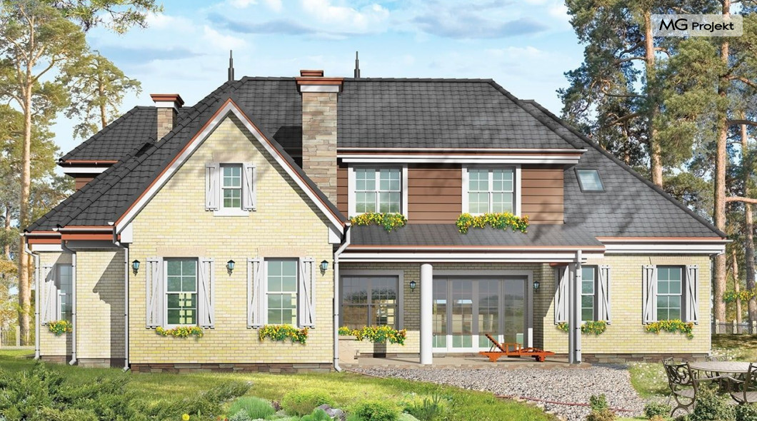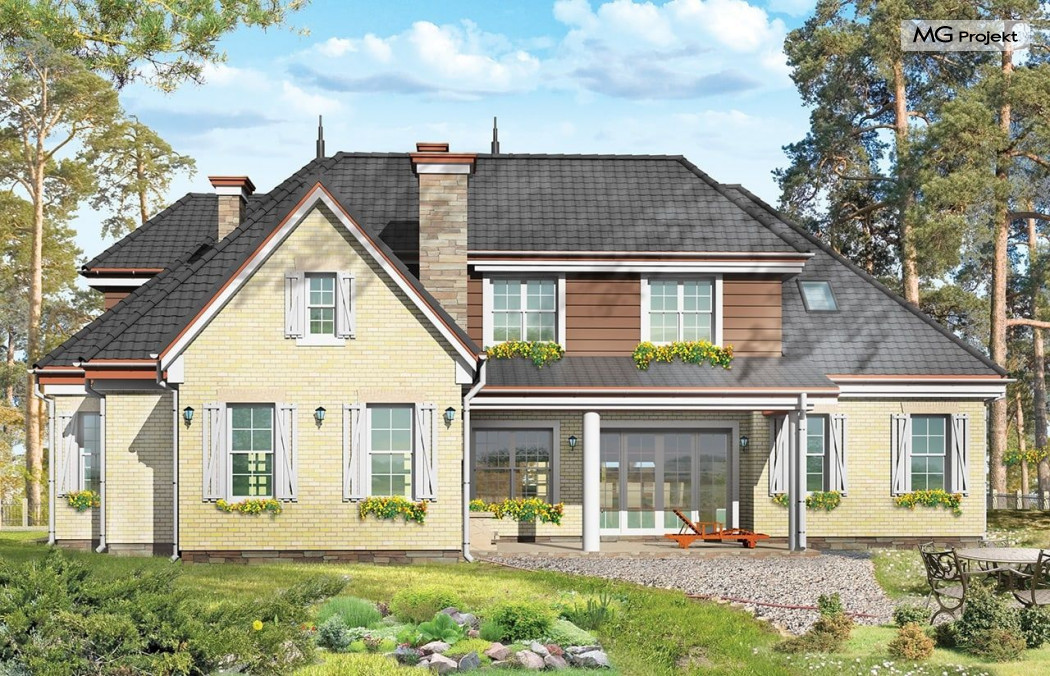 Projekt domu Dallas to duża rezydencja w zwartej bryle o dwóch kondygnacjach. Wnętrze budynku jest bardzo obszerne a poszczególne pokoje mają duże powierzchnie. Pomieszczenia salonu holu jadalni i pokoju kominkowego łączą się na parterze w jednoprzestrzenne wnętrze. Wewnętrzny hol dworku Dallas z zabiegowymi schodami i z antresolą na piętrze stanowi bardzo reprezentacyjny element. Budynek zawiera w sobie wszelkie pomieszczenia wymagane od reprezentacyjnej willi. Połączenia komunikacyjne między poszczególnymi pomieszczeniami zostały dobrze przemyślane: w strefie wejściowej została zaprojektowana obszerna garderoba/szatnia. Przejście z garażu to połączenie z kuchnią z wygodnym dostępem do spiżarni. Dostęp do pomieszczenia rekreacyjnego na piętrze w strefie wypoczynkowej zapewniono przez osobne schody z holu na parterze. Dom Dallas mimo swego rozmiaru składa się z jednej zwartej bryły z ukrytym tarasem. Jego budowa wbrew pozorom nie powinna być skomplikowana. W budynku zastosowano dobre materiały izolacyjne i technologie energooszczędne. Lokalizacja tarasu zapewnia mieszkańcom intymność i komfort wypoczywania. Projekt domu Dallas dostępny jest też w wersji odbicia lustrzanego.