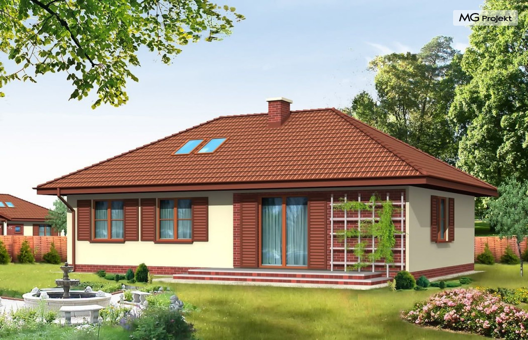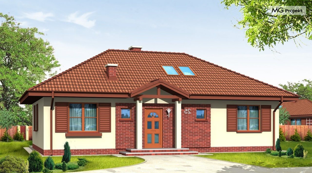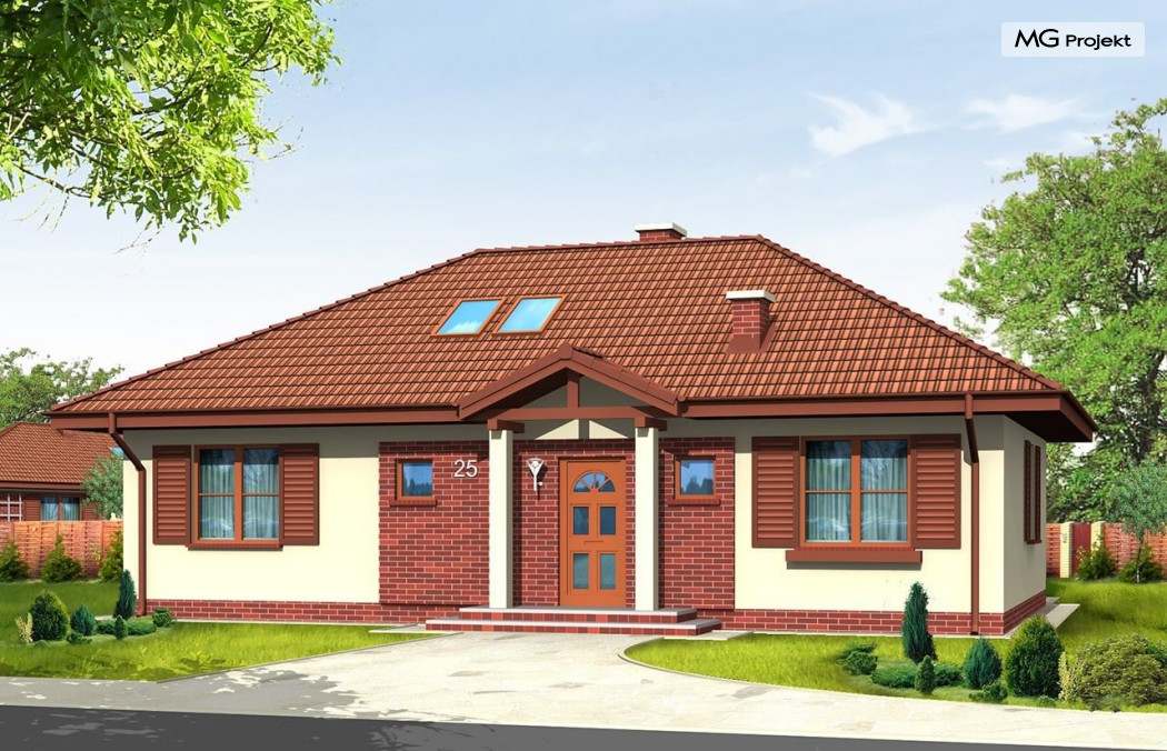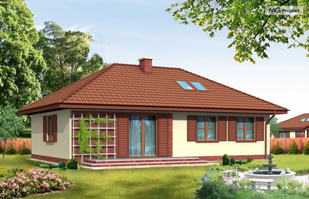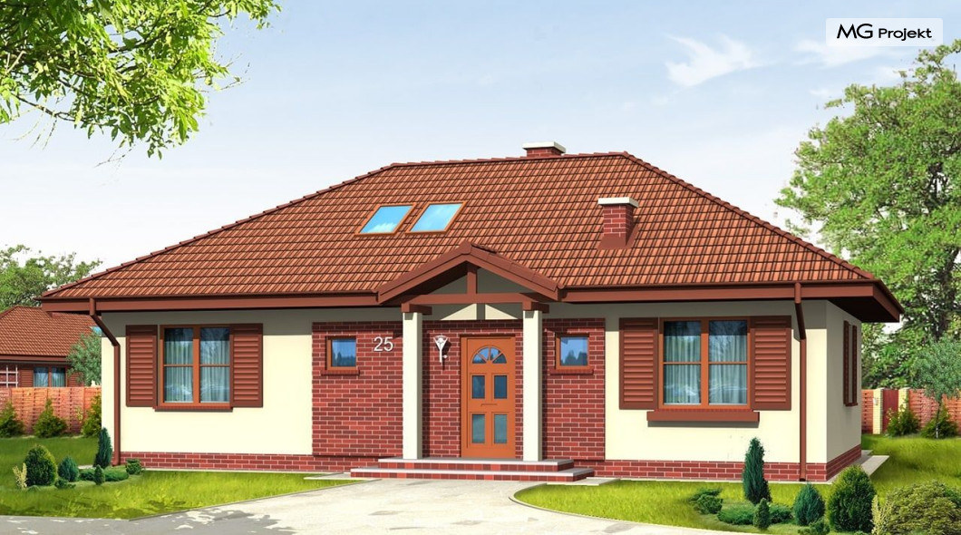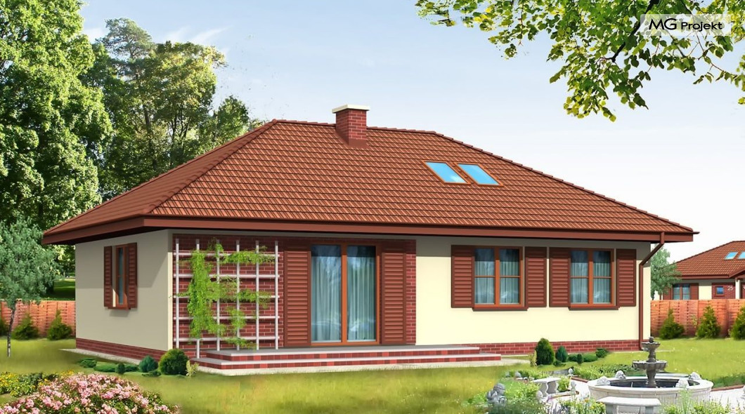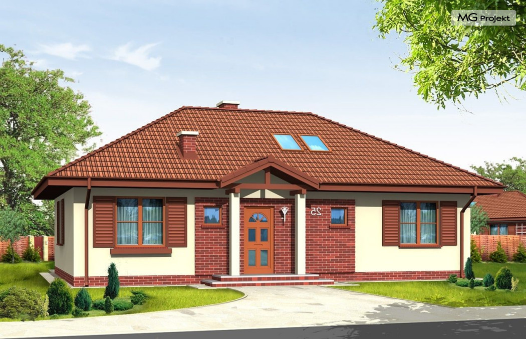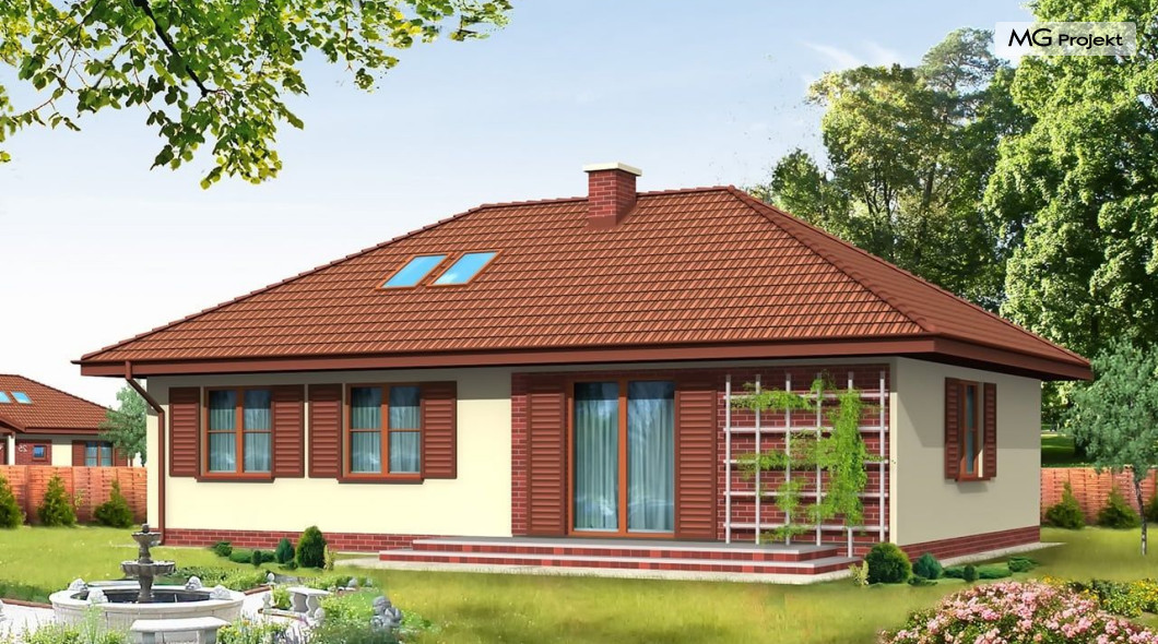 Projekt domu Dominik to elegancki, nieduży dom jednorodzinny dla rodziny nawet 7-osobowej. Kopertowy dach, ozdobny portyk wejściowy i okładziny klinkierowe tworzą udane połączenie. Wnętrze domu - przy niewielkiej powierzchni udało się pomieścić salon oraz pięć pokoi - rzecz niespotykana w małych domach. Dom Dominik został zaprojektowany w taki sposób, aby poddasze można wykończyć w drugim etapie budowy. Pracownia dysponuje także wersją projektu Dominik w odbiciu lustrzanym. Zapraszamy do zapoznania się z pełną ofertą pracowni MG Projekt: Dominik 2.
