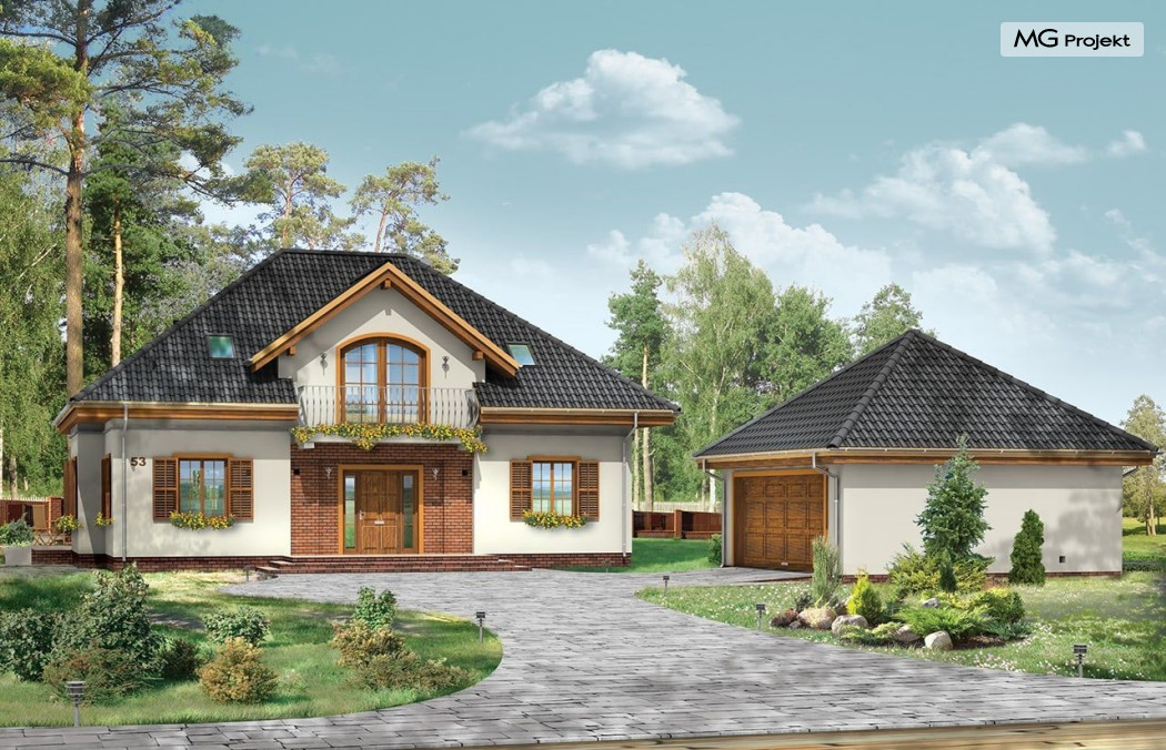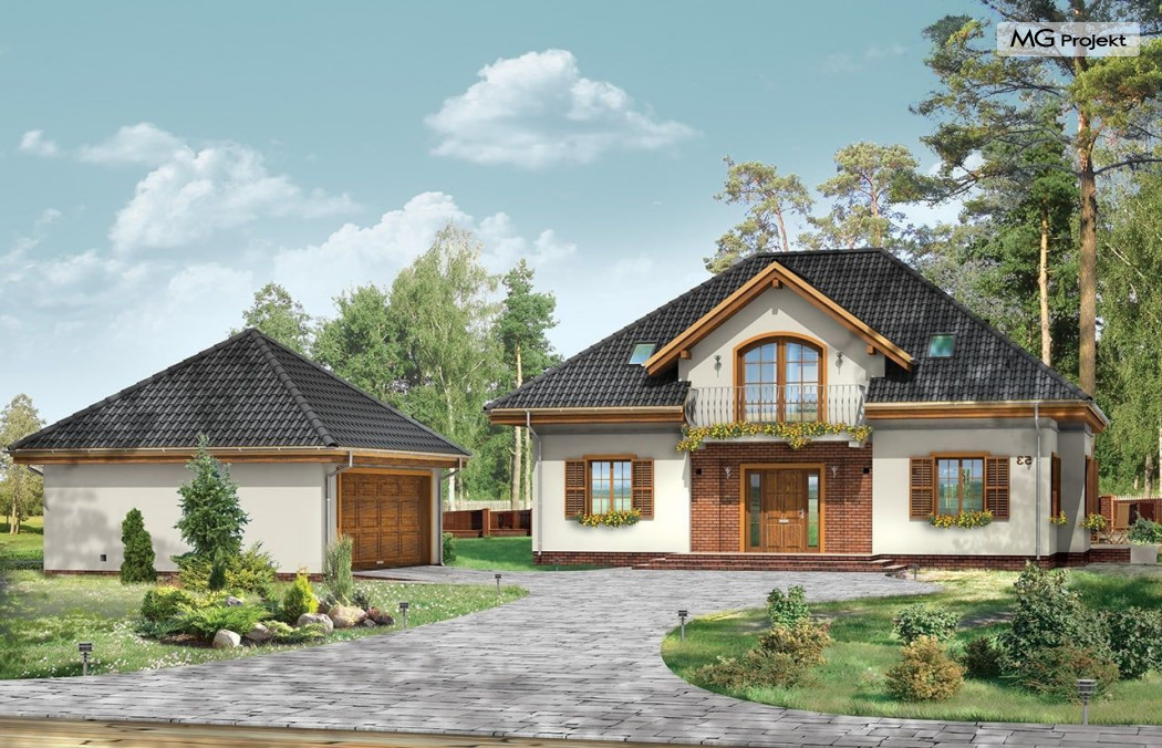 Projekt domu Filip dostępny jest w wersji bez garażu - cena 4,590.00 zł, oraz z garażem wolnostojącym dedykowanym do projektu Filip - cena za komplet: dom + garaż BG 100 - 5 190,00 zł.