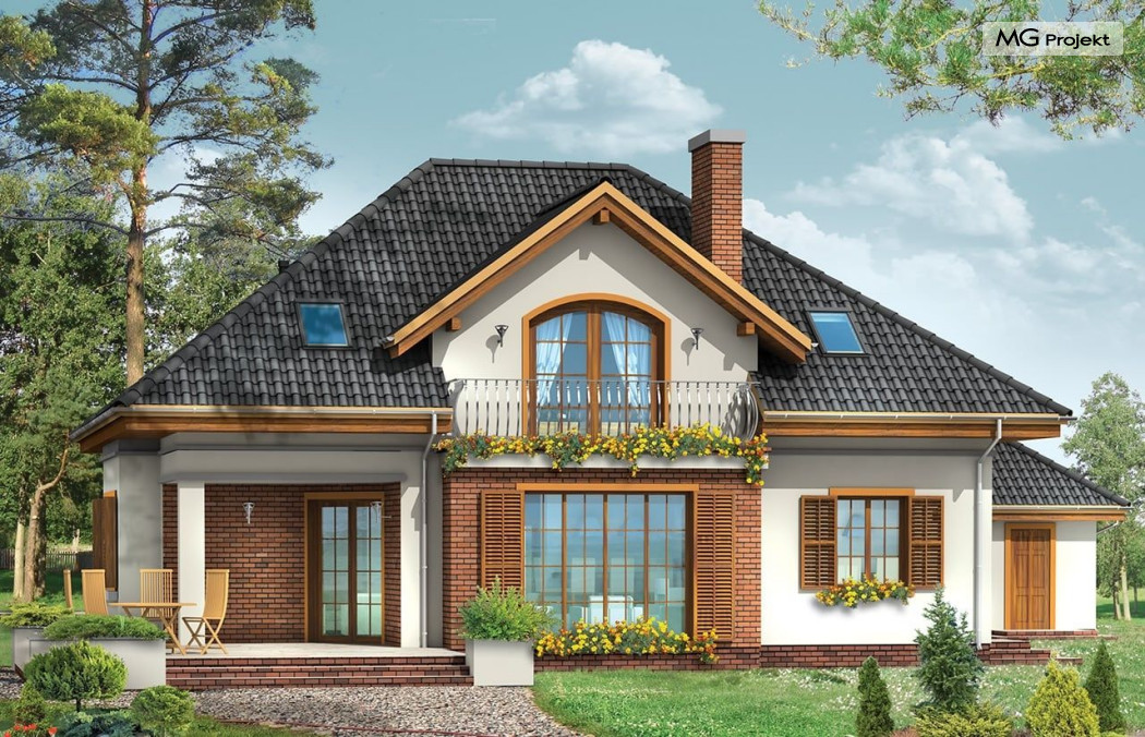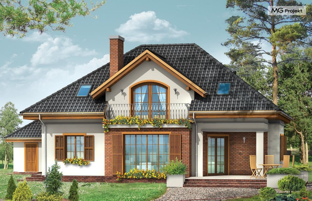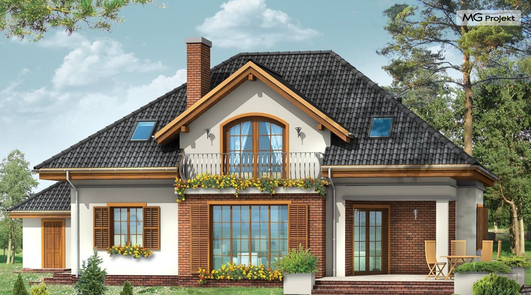 Projekt domu Filip to pełen uroku dom jednorodzinny z wolnostojącym, dwustanowiskowym garażem. Budynek charakteryzuje się atrakcyjną bryłą z łagodnym, wielospadowym dachem, w który wkomponowano duże lukarny z balkonami. Powierzchnia willi Filip pozwoli wygodnie mieszkać rodzinie czteroosobowej. Od strony ogrodu znajduje się podcień, na parterze oprócz obszernego salonu z otwartą jadalnią zaprojektowano dodatkowy pokój - gabinet lub sypialnię gościnną. W części piętra znajdują się sypialnie z garderobami i duża wygodna łazienka. Wolnostojący garaż formą architektoniczną nawiązuje do budynku. Pracownia dysponuje odbiciem lustrzanym projektu domu Filip. Zapraszamy!