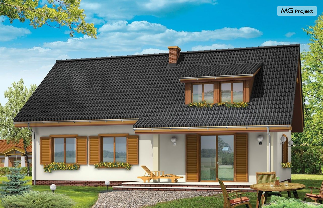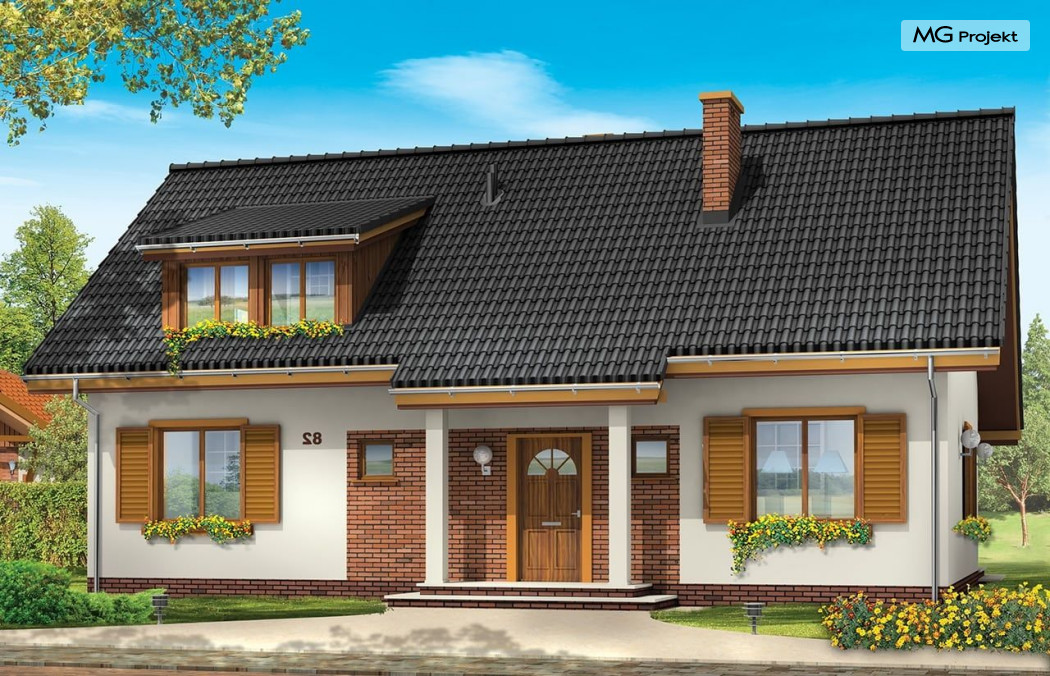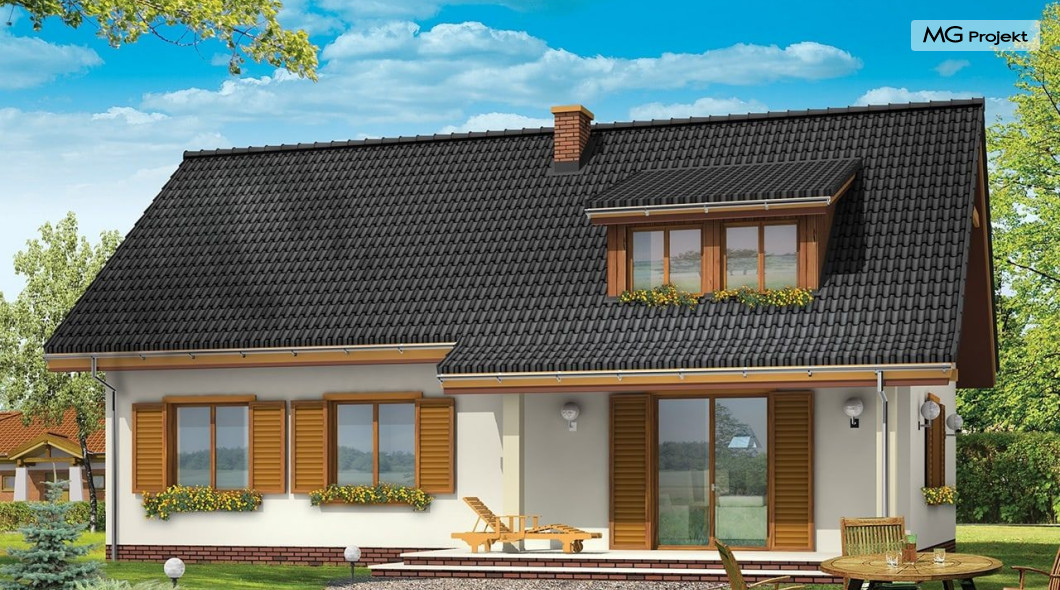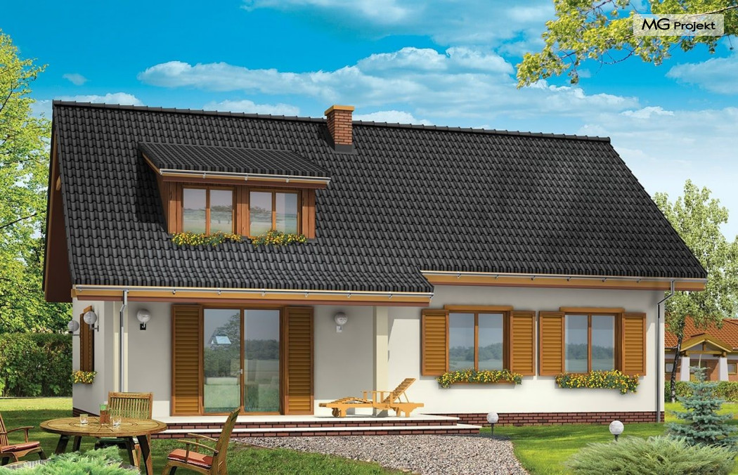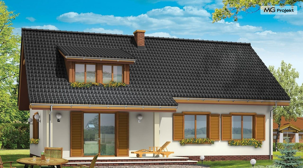 Projekt domu Fraszka to budynek jednorodzinny dla rodziny 4-7 osobowej, z możliwością rozwoju i zmiennymi potrzebami lokalowymi. Dzięki dodatkowym pomieszczeniom na poddaszu i bliskości schodów od wejścia dom można z powodzeniem podzielić nawet na dwa niezależne mieszkania. Prostota konstrukcji domku Fraszka i łatwy do wykonania dach to niepodważalne zalety projektu. Na parterze prócz salonu połączonego z kuchnią i holem mamy trzy sypialnie. Na poddaszu mieszczą się dodatkowo trzy ładne pokoje. Dom może zamieszkiwać duża rodzina, lub dwie rodziny. Można też mieszkając na parterze wykorzystać poddasze jako jednoprzestrzenne studio o dowolnej funkcji - rekreacyjnej czy np. związanej z pracą. Pracownia posiada także projekt domu Fraszka w odbiciu lustrzanym. oraz projekt domu Fraszka 2. Zapraszamy!