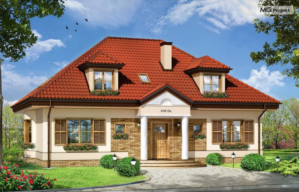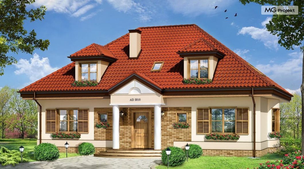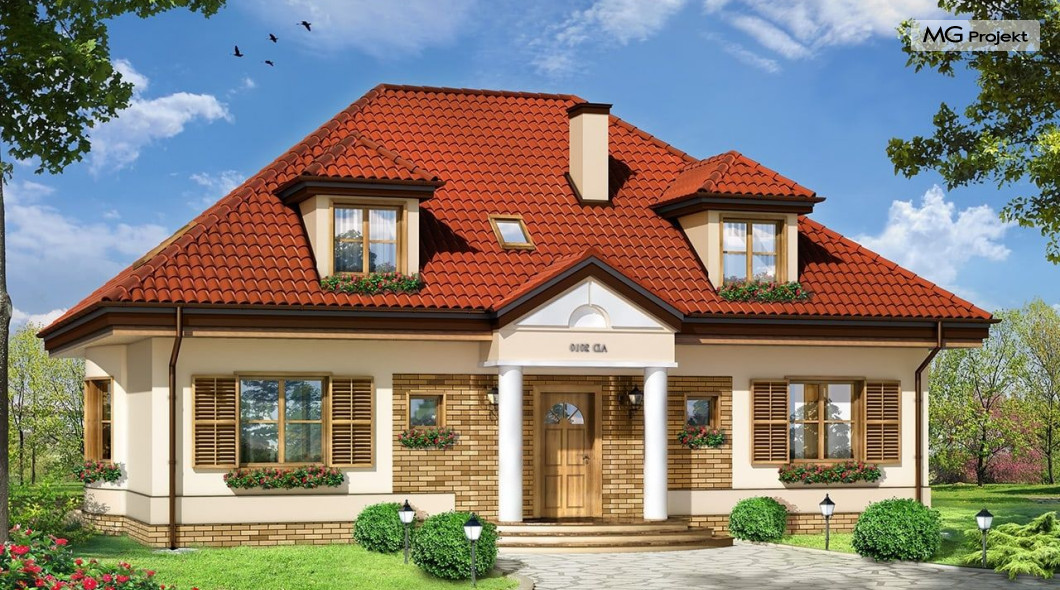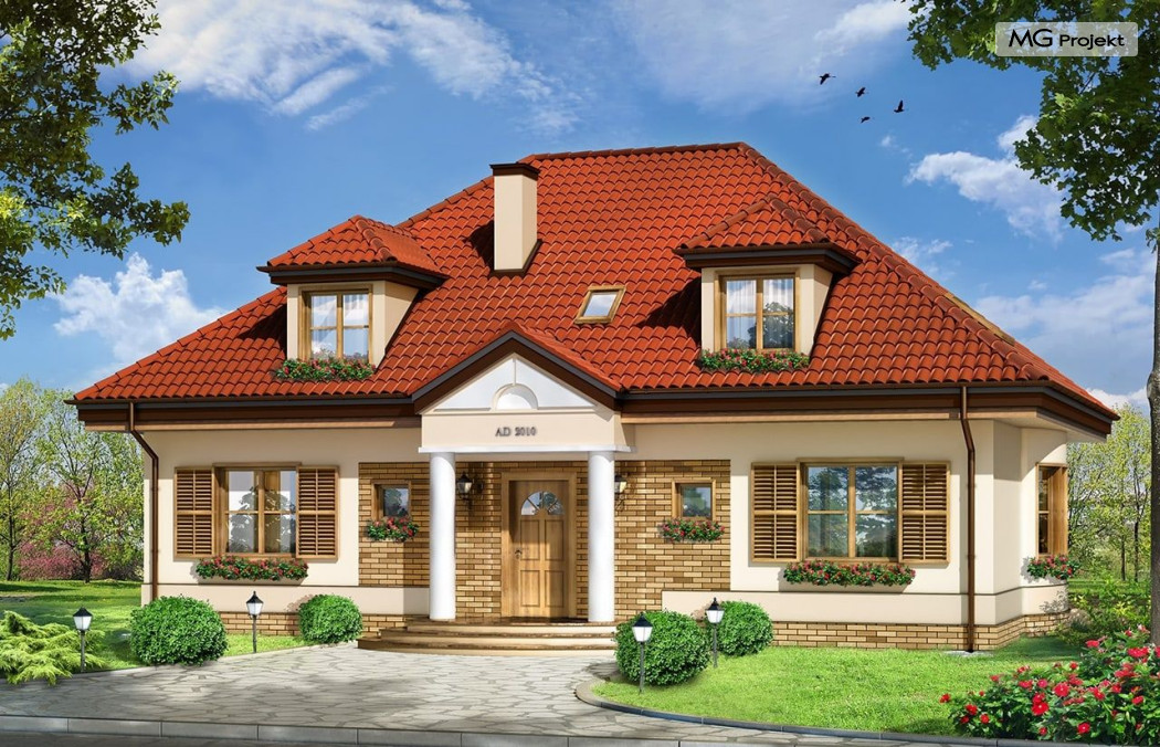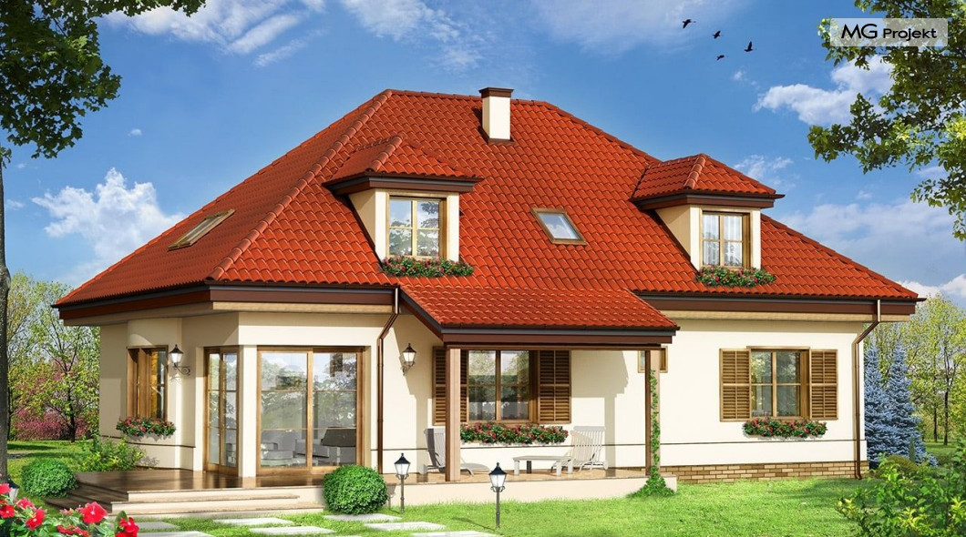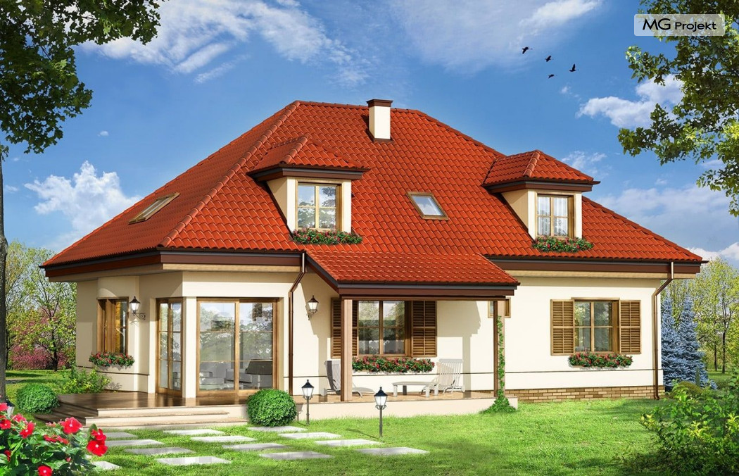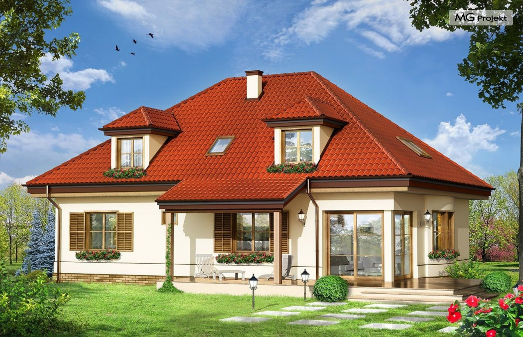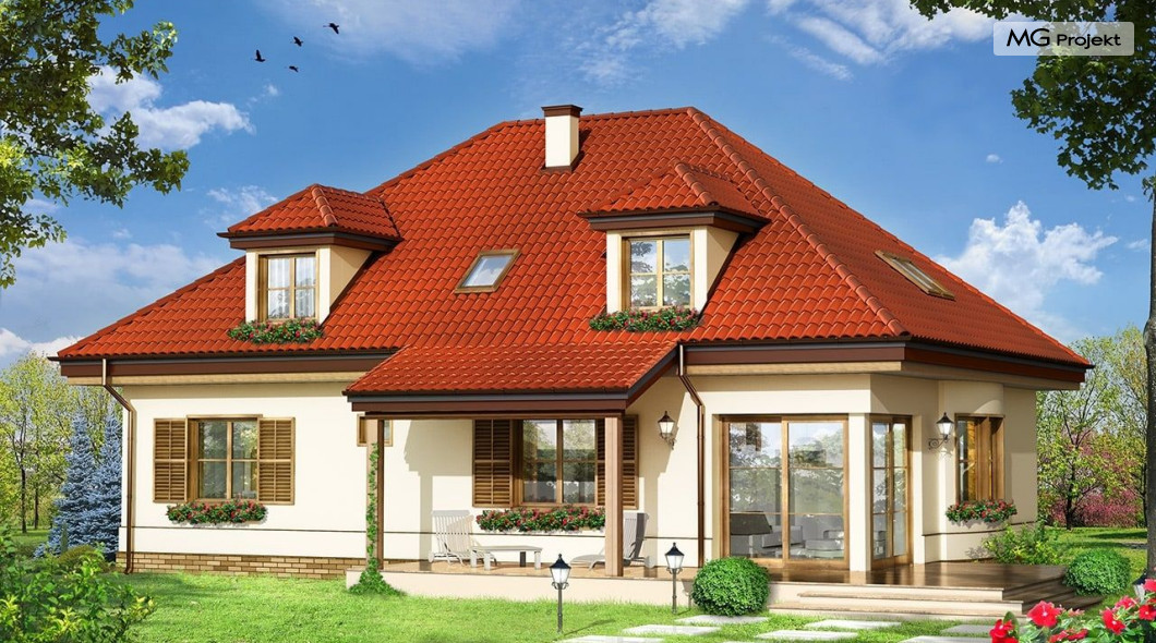 Projekt domu Hetman to domek jednorodzinny dla rodziny cztero-siedmioosobowej z możliwością zamieszkania rodziny wielopokoleniowej - dzieci, rodziców i dziadków. Budynek jest parterowy z poddaszem użytkowym przykrytym czterospadowym dachem. W częściowym podpiwniczeniu umieszczono zaplecze gospodarcze. Projekt domu Hetman, swoją bryłą z symetrycznymi elewacjami nawiązuje do polskiego dworku, ale we współczesnym ujęciu. Przełamanie monotonii osiowego podziału wnętrz choćby przez narożne otwarcie salonu na ogród czy częściowo zadaszony taras, daje ciekawy architektonicznie efekt. Elementy te nadają domowi Hetman oryginalną, niepowtarzalną formę, nie wpływając przy tym na zwiększenie kosztów budowy. Cały dom architektonicznie podporządkowano układowi funkcjonalnemu wnętrza. Na parterze zaprojektowano część dzienną z otwartą przestrzenią pokoju dziennego z częścią jadalną i holu, oraz częściowo otwartą kuchnią. Po drugiej stronie umieszczono dwa pokoje i oddzielną łazienkę. Pokoje mogą pełnić rolę osobnego mieszkania seniorów, lub spełniać funkcję dodatkowych pomieszczeń - gabinetu, czy sypialni dla gości. Otwarcie salonu na taras i ogród narożnymi drzwiami doda uroku temu dużemu wnętrzu. Na poddaszu zaplanowano cztery sypialnie i dwie łazienki. Jeden z pokoi może być sypialnią rodziców z garderobą i własną łazienką. Do piwnicy, w której zaprojektowano duże otwarte pomieszczenie techniczne schodzi się schodami dostępnymi z sieni na parterze. Częściowe zadaszenie tarasu pozwoli korzystać z niego również przy niepogodzie, lub zbyt dużym nasłonecznieniu. Pracownia posiada również wersję odbicia lustrzanego projektu domu Hetman.