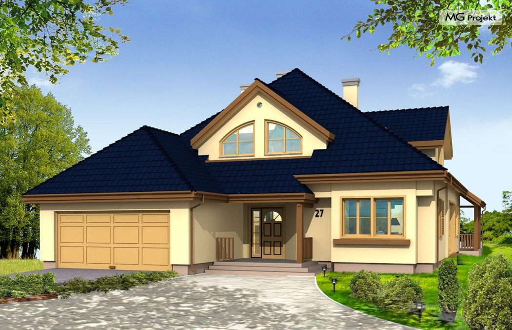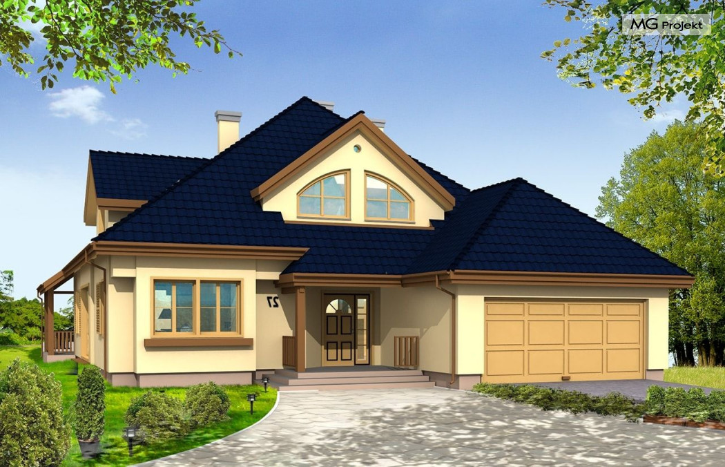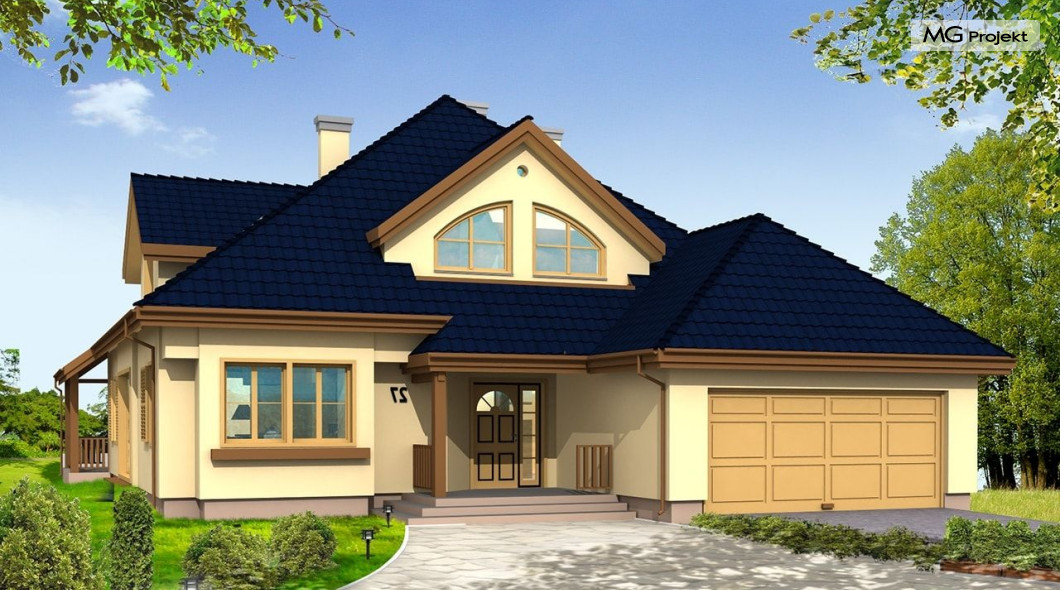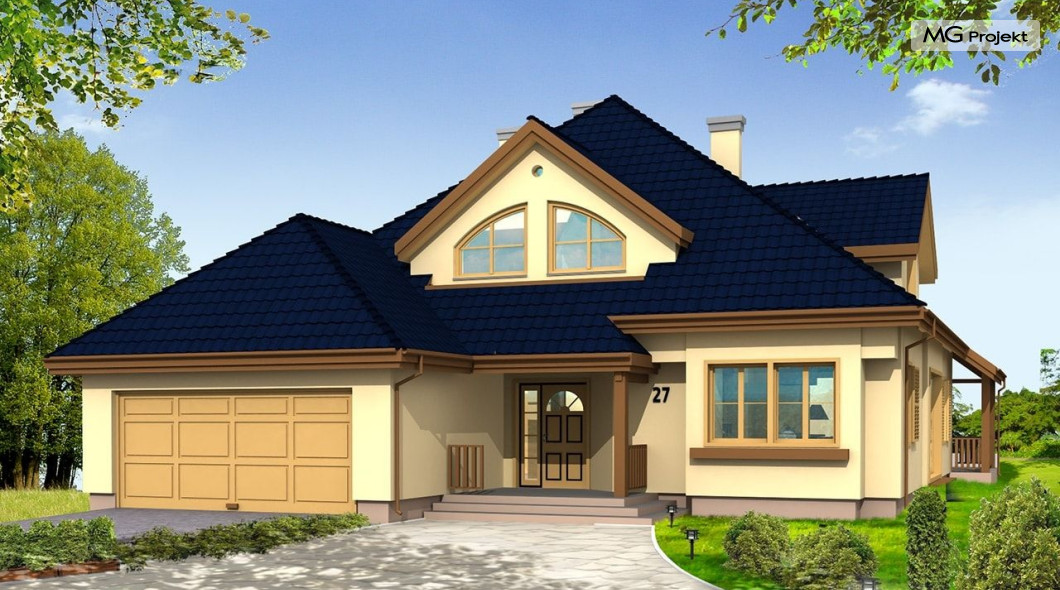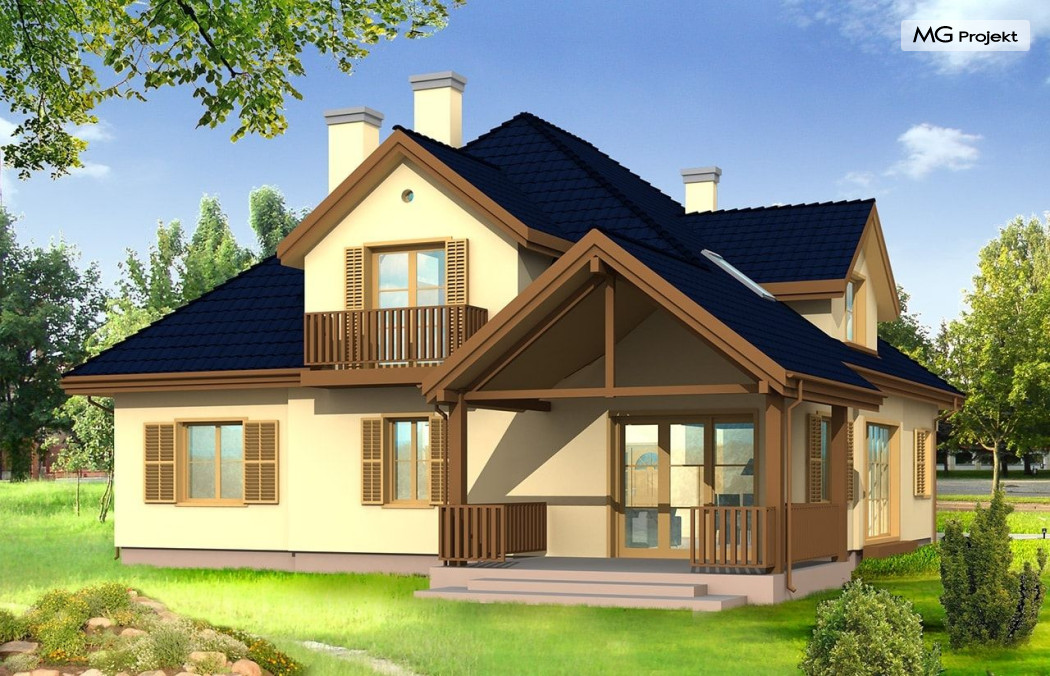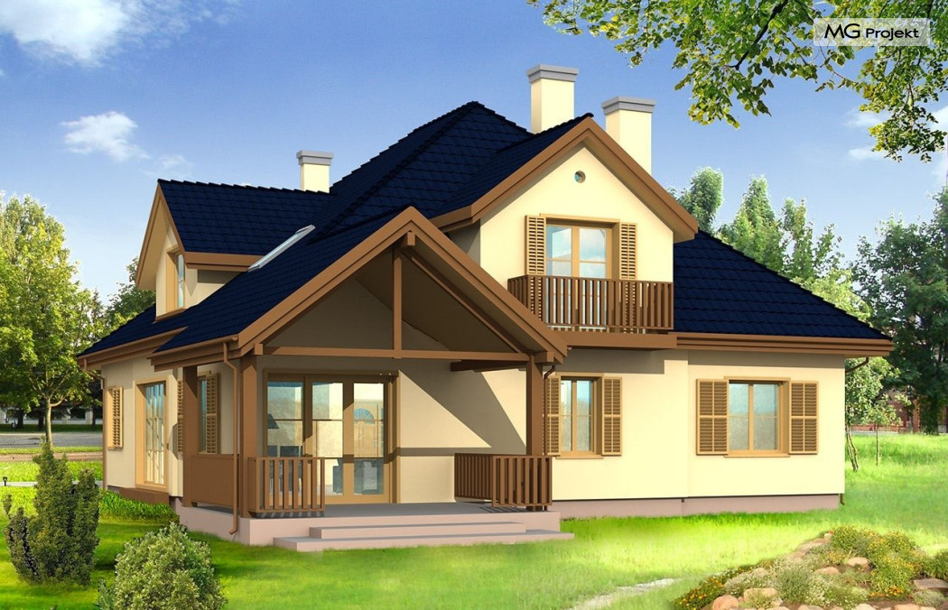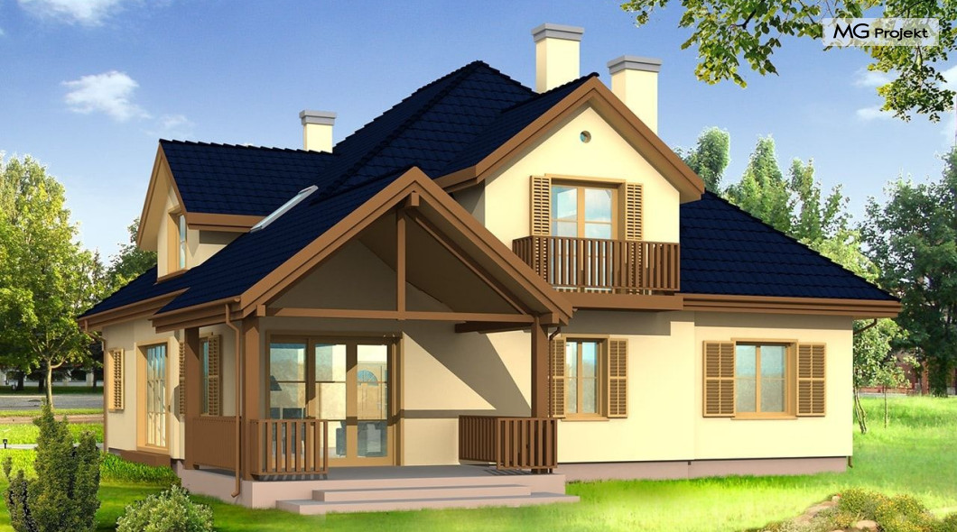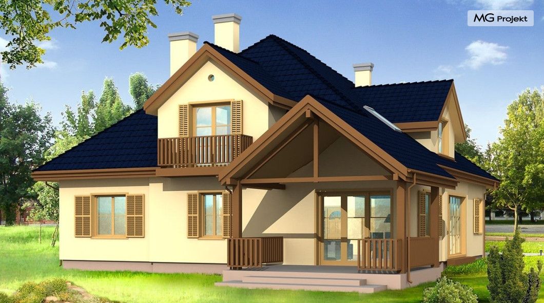 Projekt domu Hornówek to dom jednorodzinny dla rodziny cztero-pięcioosobowej. Wyróżnia go o atrakcyjna, rozłożysta bryła z łagodnym wielospadowym dachem, w który wkomponowano duże lukarny. Obszerny podcień frontowy i weranda od strony ogrodu chronią przed deszczem lub zbyt ostrym słońcem. Wnętrze zaprojektowano z podziałem na część dzienną - otwartą i jednoprzestrzenną, łączącą się poprzez szerokie przeszklenia z ogrodem, oraz część gospodarczą z garażem dwustanowiskowym. W bocznym skrzydle domu Hornówek zaplanowano dodatkowy pokój na parterze - gabinet lub sypialnię gościnną. Całość wnętrza łączy reprezentacyjny holl z wygodnymi schodami na poddasze. Na piętrze zaprojektowano trzy sypialnie - w tym jedna z osobną łazienką i garderobą, z balkonem z widokiem na ogród. Na poddaszu umieszczono jeszcze dodatkowy - czwarty pokój. Dostępna jest wersja odbicia lustrzanego projektu domu Hornówek oraz projekt domu Hornówek 2. Zapraszamy!