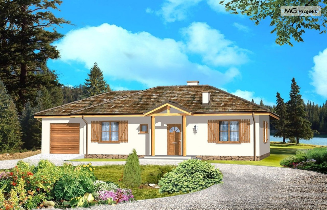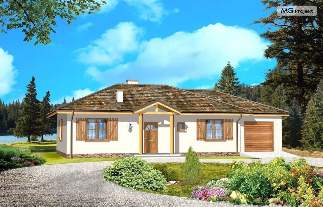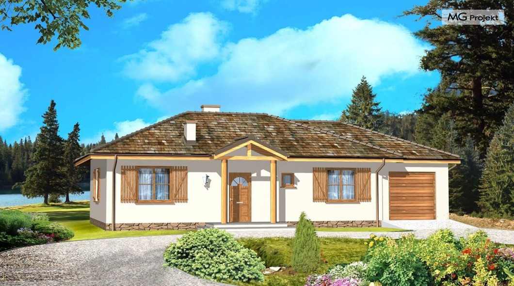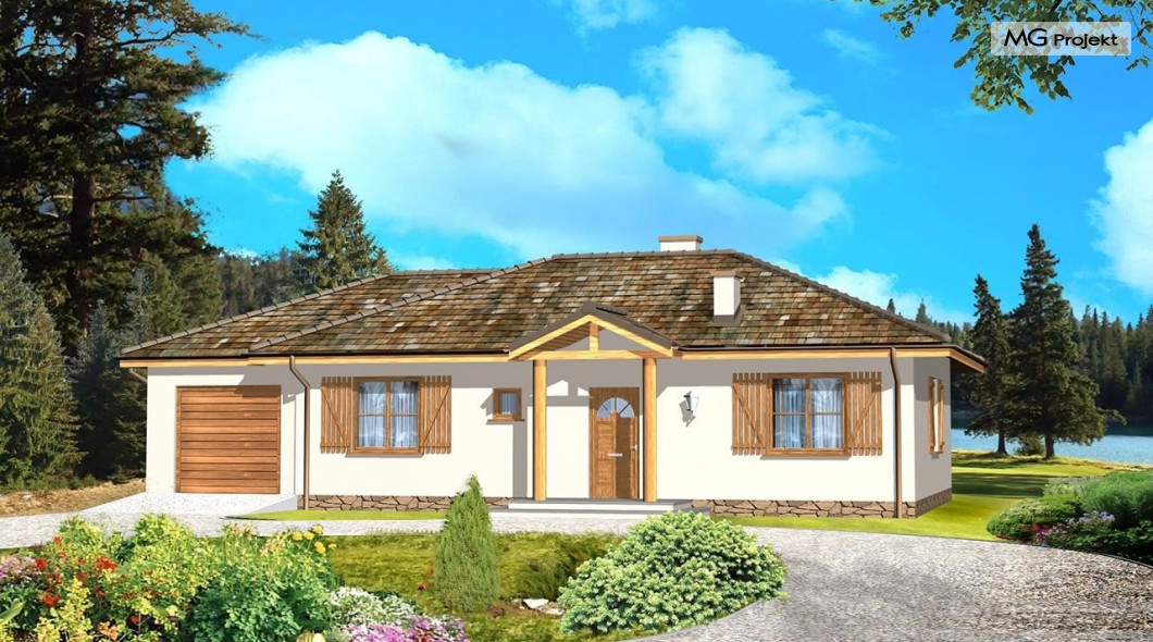 Projekt domu Jak Marzenie z garażem jest parterowym domem o prostej, tradycyjnej bryle przywołującej wspomnienie polskiego dworku. Kopertowy dach przekrywa bryłę domu i dobudowany garaż. Dom doskonale spełnia wymagania 3-4 osobowej rodziny. Budynek posiada przestronne wnętrze z podziałem na część dzienną - reprezentacyjną oraz nocną - intymną. Pracownia dysponuje poszerzoną wersją projektu oraz wariantem bez garażu. Projekt domu Jak Marzenie z garażem dostępny jest także w odbiciu lustrzanym. Zapraszamy do zapoznania się ze wszystkimi projektami domów z tej serii: wersja podstawowa projekt domu Jak marzenie, z dobudowanym garażem (projekt domu Jak marzenie z garażem), z użytkowym poddaszem (projekt domu Jak marzenie 2), poszerzoną (projekt domu Jak marzenie 3). Wszystkie projekty domów dostępne są w odbiciu lustrzanym.