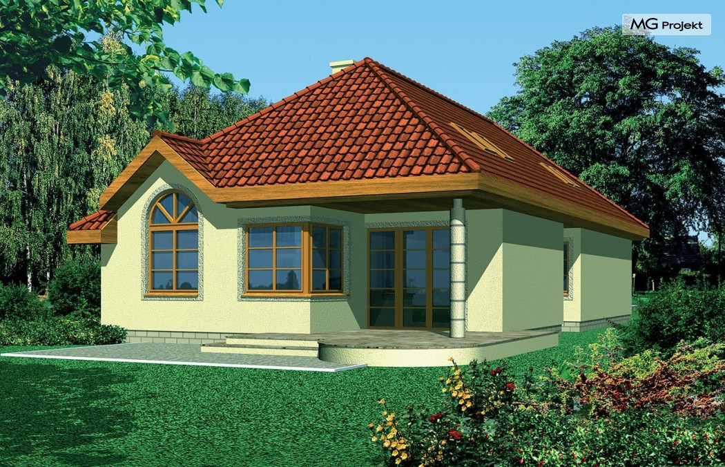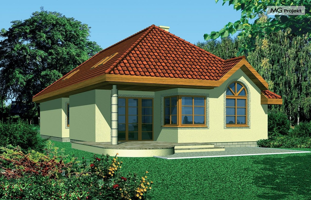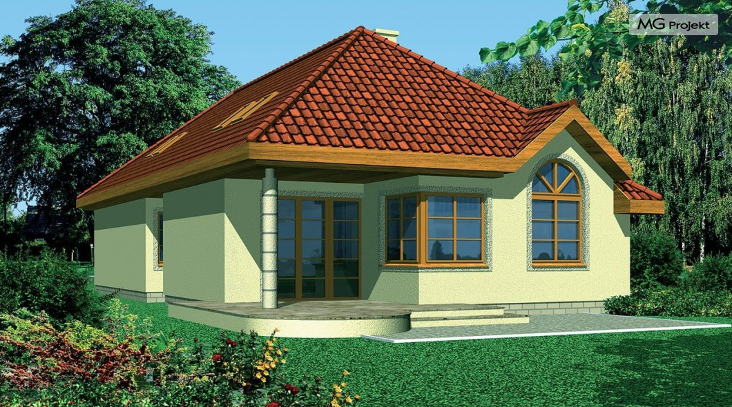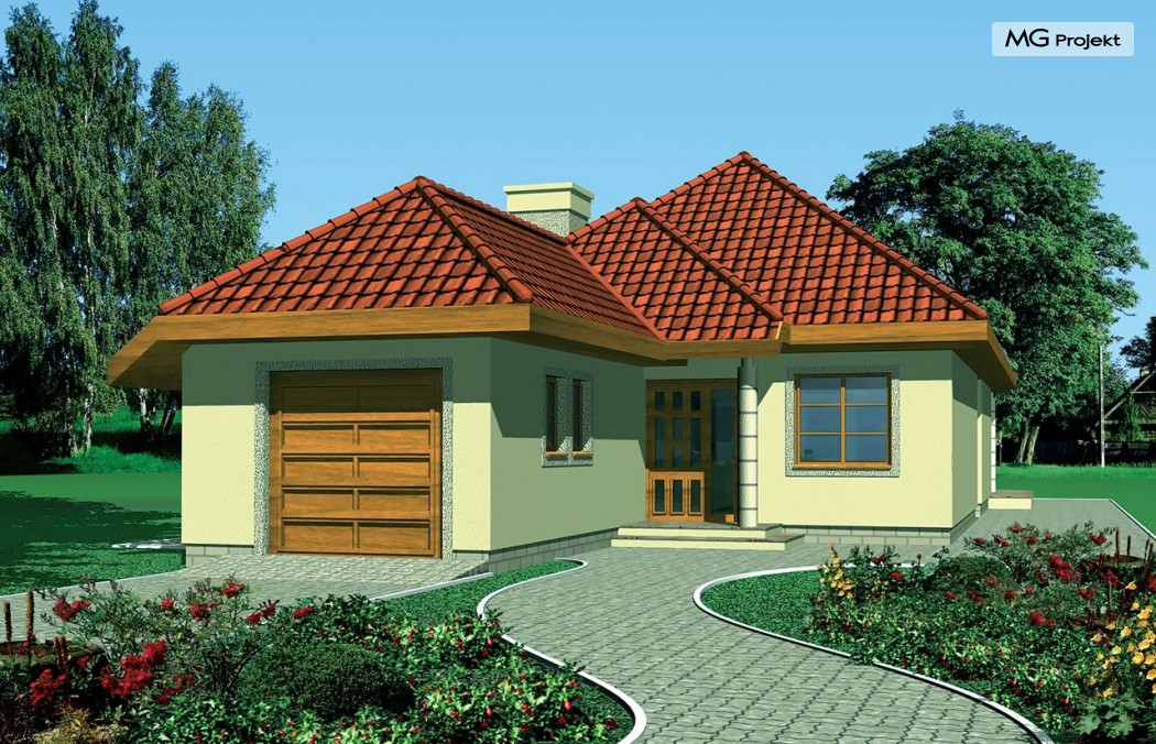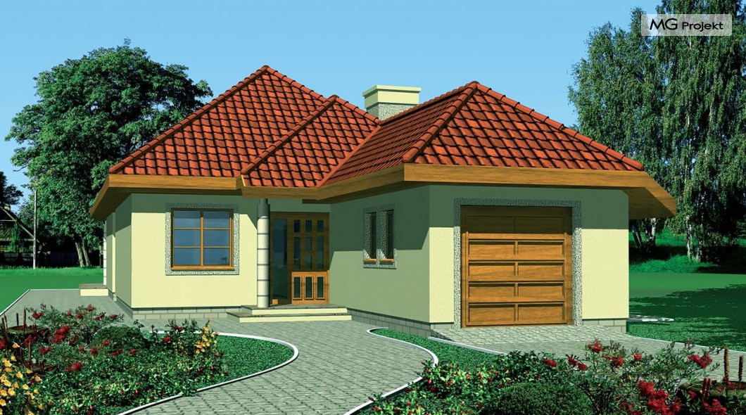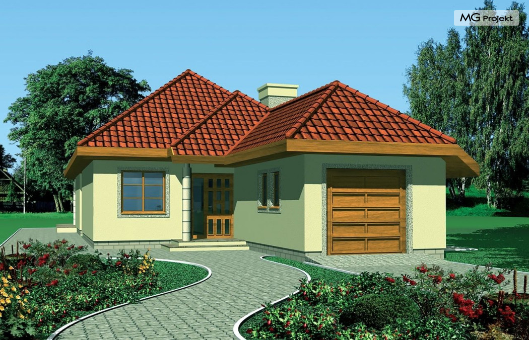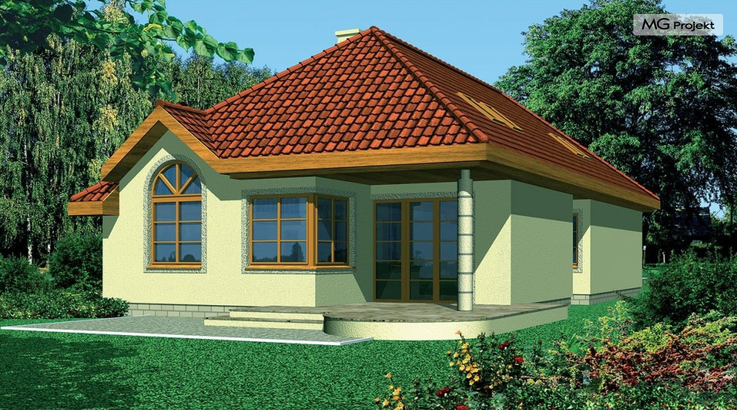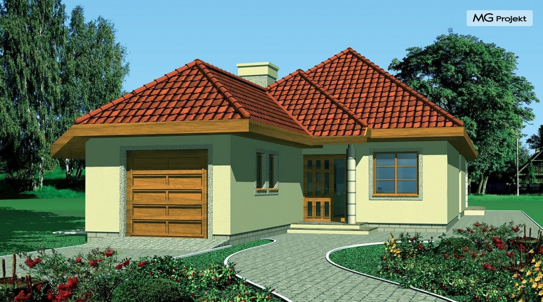 Projekt domu Jamnik 2 to wygodny dom na wąską działkę - nawet 15-metrową. Bryła przekryta wielospadowym dachem. Projekt domu Jamnik 2 posiada dobudowany garaż. Wnętrze domu zaprojektowano tak, aby była możliwość zamieszkania w pierwszym etapie tylko na parterze. Poddasze, na którym przewidziano dodatkowe pokoje można zagospodarować już mieszkając lub zostawić strych. Wnętrze salonu z jadalnią i holem tworzy dużą otwartą przestrzeń dzienną. Z salonu wychodzimy na zadaszony taras. Pracownia MGProjekt posiada projekt domu Jamnik w odbiciu lustrzanym oraz wersje z garażem i poddaszem użytkowym: Projekt domu Jamnik, Projekt domu Jamnik 2, Projekt domu Jamnik 3.