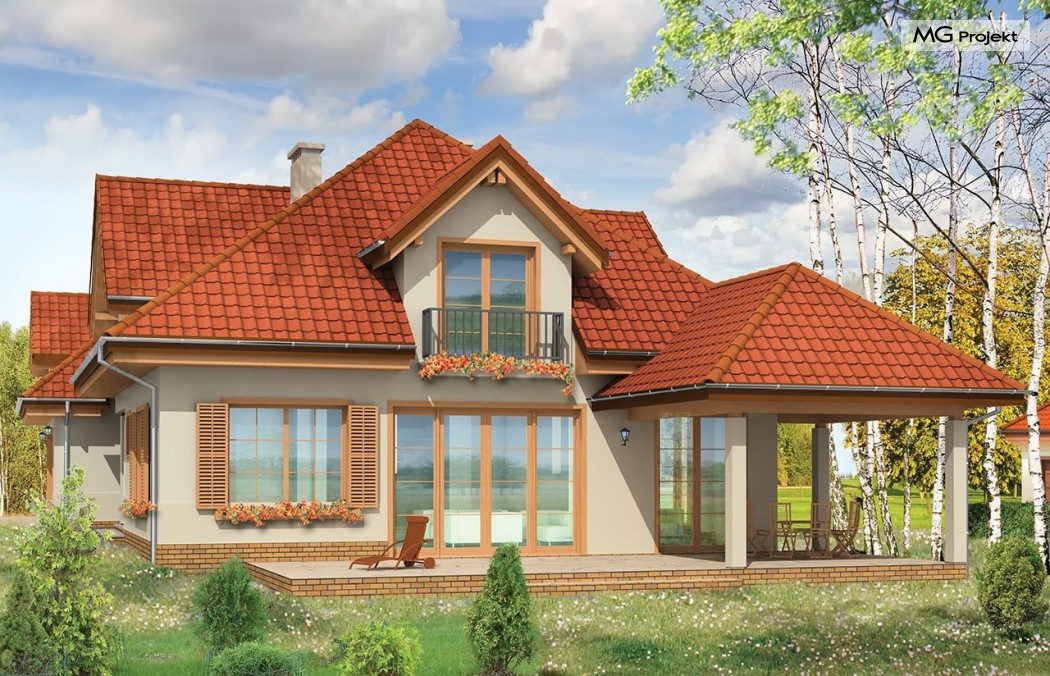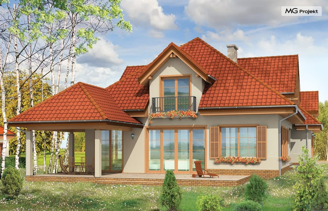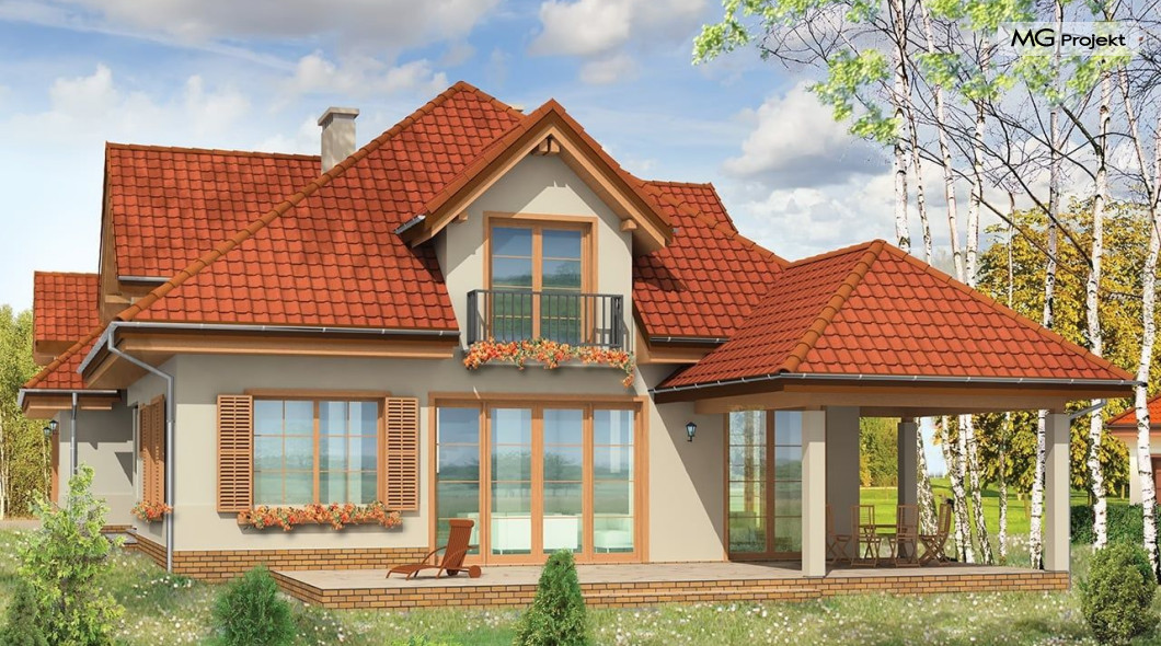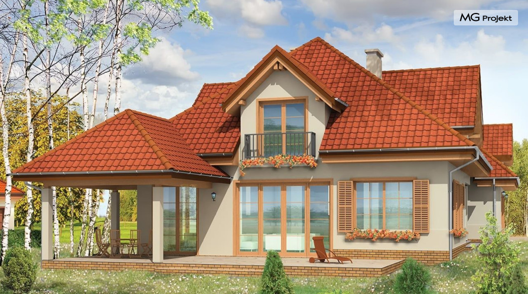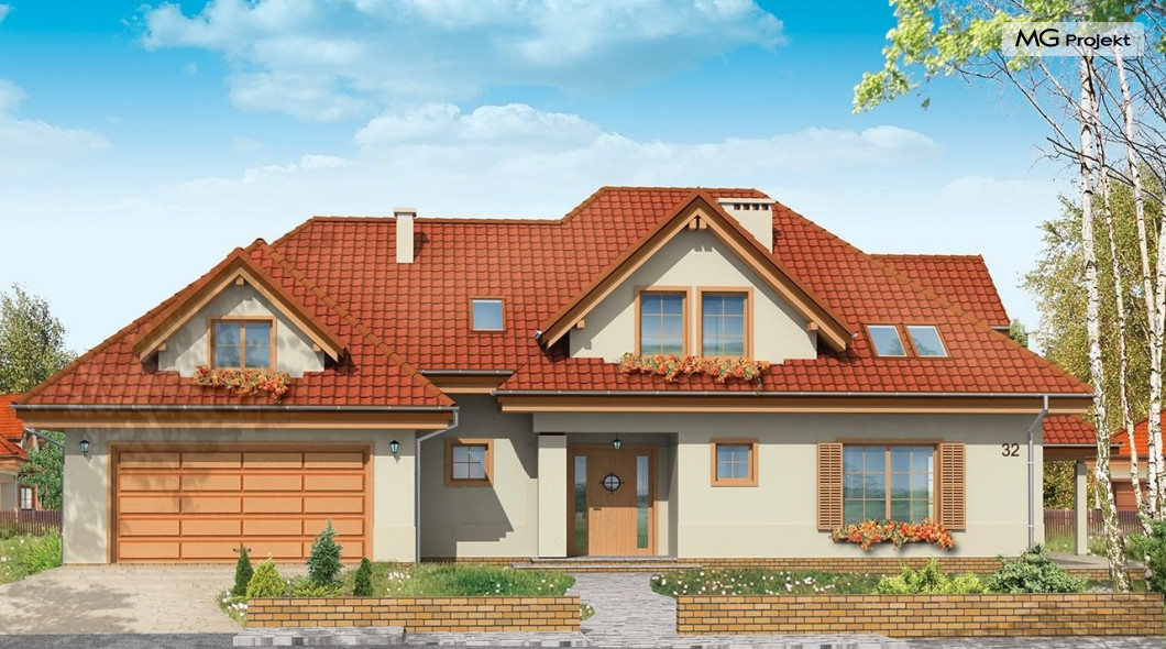 Projekt domu Joanna jest dużym, wygodnym domem parterowym z poddaszem użytkowym o rozległej, rozbudowanej bryle. Jest to propozycja dla Klientów lubiących wielospadowe dachy i duże lukarny. Główna bryła połączona jest łącznikiem z bryłą garażu. Projekt domu Joanna charakteryzuje się tradycyjną, konserwatywną architekturą - z nowoczesnymi elementami. Zasada kompozycji wnętrza domu: parter jednoprzestrzenna powierzchnia dzienna, salon połączony z jadalnią, obszerna kuchnia, hall łączący część garażową (pomieszczenia gospodarcze) - z resztą pomieszczeń parteru. W domu na poddaszu znajdują się trzy sypialnie dwie łazienki, pokój sportowy, oraz nad garażem strych, który można zaadaptować jako pokój kina domowego lub pokój sportowy. Pracownia posiada również wersję odbicia lustrzonego projektu domu Joanna. Zapraszamy!