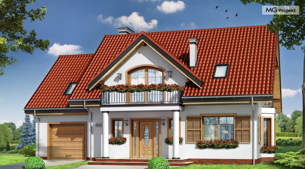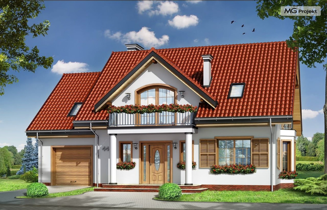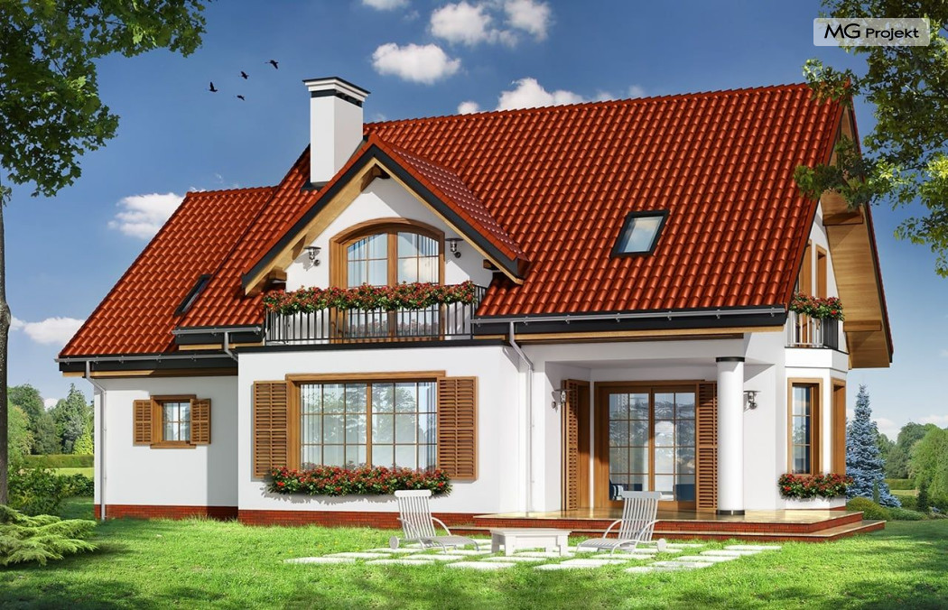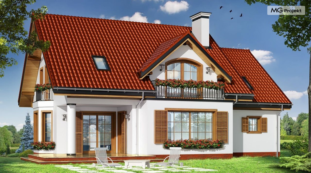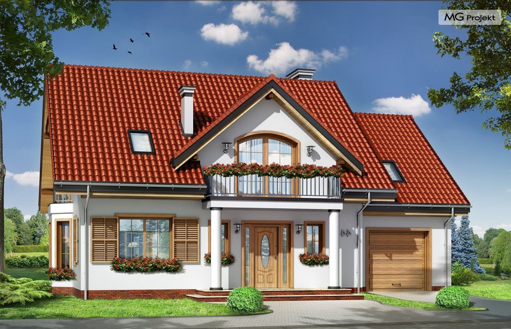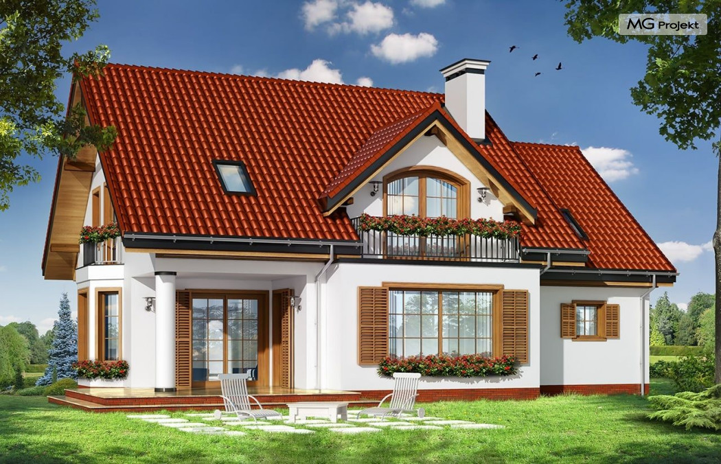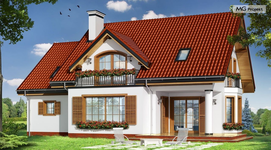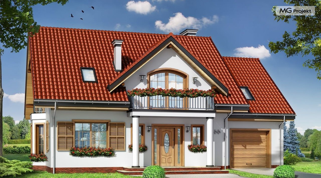 Projekt domu Julka 4 to wariantowa wersja popularnego projektu Julka. Projekt zwężono o część szerokości garażu - zamieniając go na garaż jednostanowiskowy, zmniejszono strych, oraz zmieniono dachy z wielospadowych na dwuspadowe - przekrywające część mieszkalną i garaż. Dzięki temu domek będzie można lokalizować na działkach, gdzie przepisy wymagają stosowania dwuspadowych dachów. Dom Julka 4, pomimo uproszczenia bryły prezentuje się bardzo atrakcyjnie. W powstałych bocznych szczytach umieszczone zostały dodatkowe okna i balkonik nad wykuszem jadalni. Frontowa i tylna lukarna z balkonami uatrakcyjniają pozostałe elewacje. Wbudowany w bryłę domu podcień ogrodowy pozwala na korzystanie z tarasu w dni bardzo słoneczne jak i deszczowe. We wnętrzu zachowany jest pierwotny - podobnie jak w projekcie podstawowym - podział na przestrzeń dzienną na parterze, z salonem, jadalnią, holem z wyeksponowanymi schodami i częściowo otwartą kuchnią, oraz na sypialnie na poddaszu. W tej wersji projektu sypialnie i łazienka mogą być trochę większe, ponieważ przy dwuspadowym dachu wyeliminowana została część "skosów". W projekciedomu Julka 4 również strych nad garażem jest większy niż w Julce 2. Pracownia posiada wersję odbicia lustrzanego projektu, wersję podstawową (projekt domu Julka), komfortową (projekt domu Julka 2), wersję z większym garażem (projekt domu Julka 3).