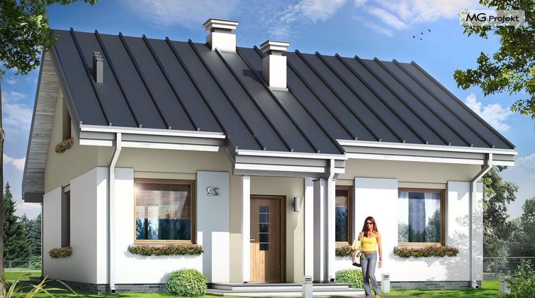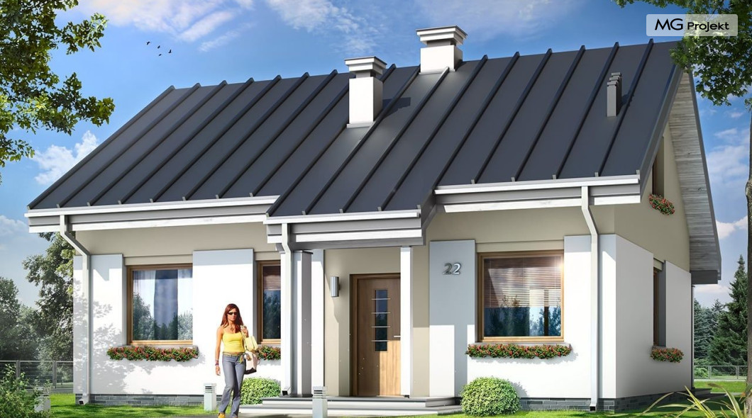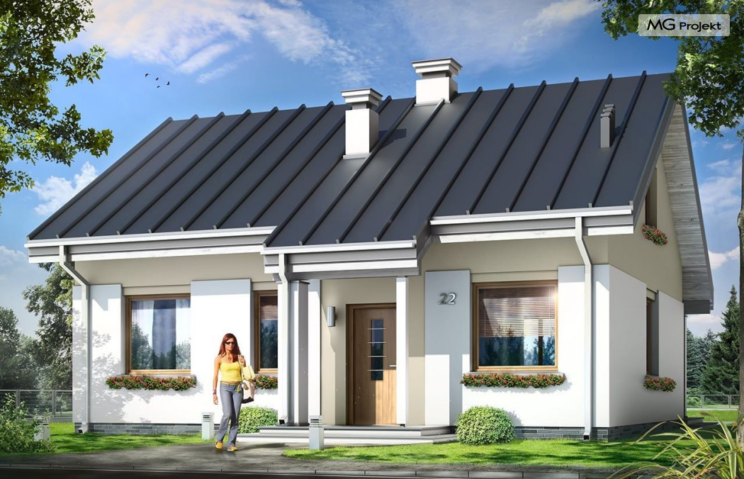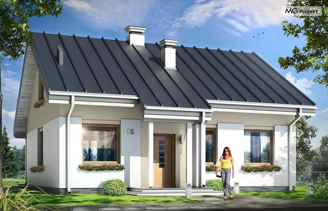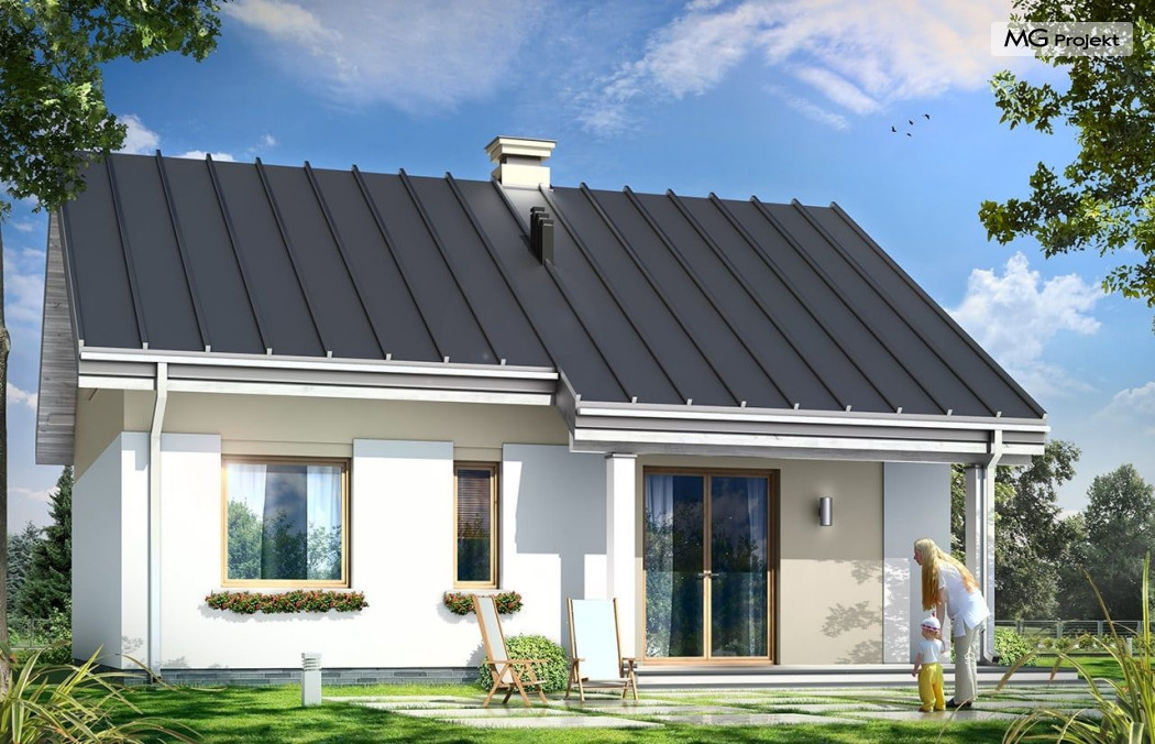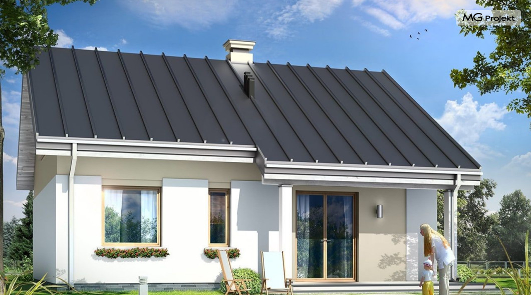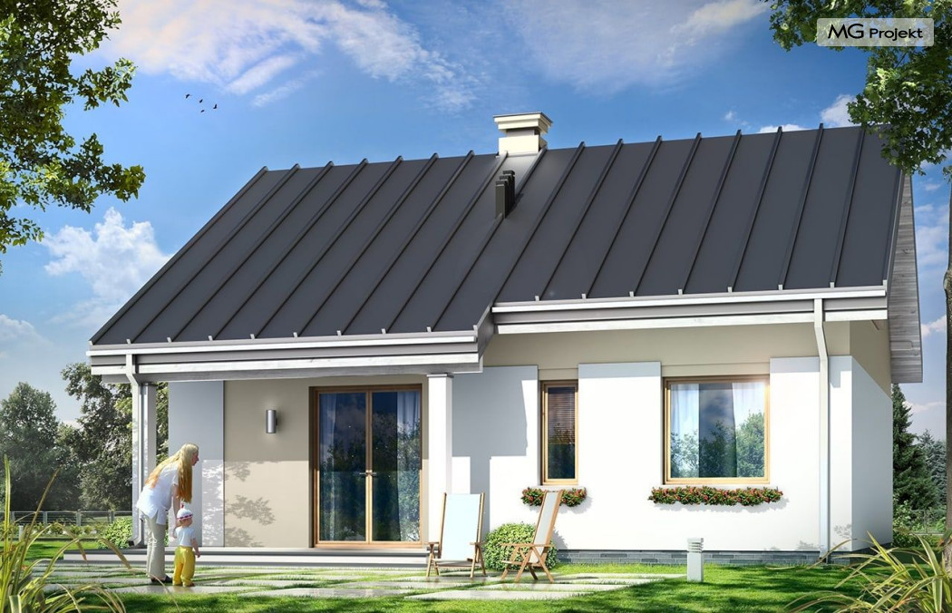 Projekt domu Kajtek to niewielki, przeznaczony dla trzy-czteroosobowej rodziny dom jednorodzinny. Budynek parterowy, przekryty dwuspadowym dachem. Prosta bryła domu połączona z nowoczesnym detalem i zastosowanymi materiałami tworzą udaną całość. Projekt domu Kajtek ma bezpretensjonalny a zarazem oryginalny wygląd. Wnętrze mieści w sobie wygodne trzypokojowe mieszkanie, z salonem, półotwartą kuchnią, dwiema sypialniami, łazienką i kotłownią dostępną z przedsionka. Po schodach można dostać się na strych, który - choć w projekcie traktowany jako nieużytkowy - bardzo łatwo można zaadaptować na poddasze użytkowe z dodatkowymi pokojami. W projekcie domu Kajtek zastosowano oddzielenie części dziennej od nocnej - z sypialniami. W salonie centralnym elementem jest kominek, oraz zabiegowe ozdabiające wnętrze schody. Szerokie drzwi balkonowe otwierają widok na częściowo zadaszony taras i ogród. Pracownia posiada odbicie lustrzane projektu.