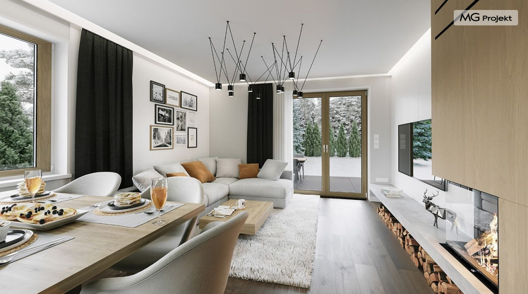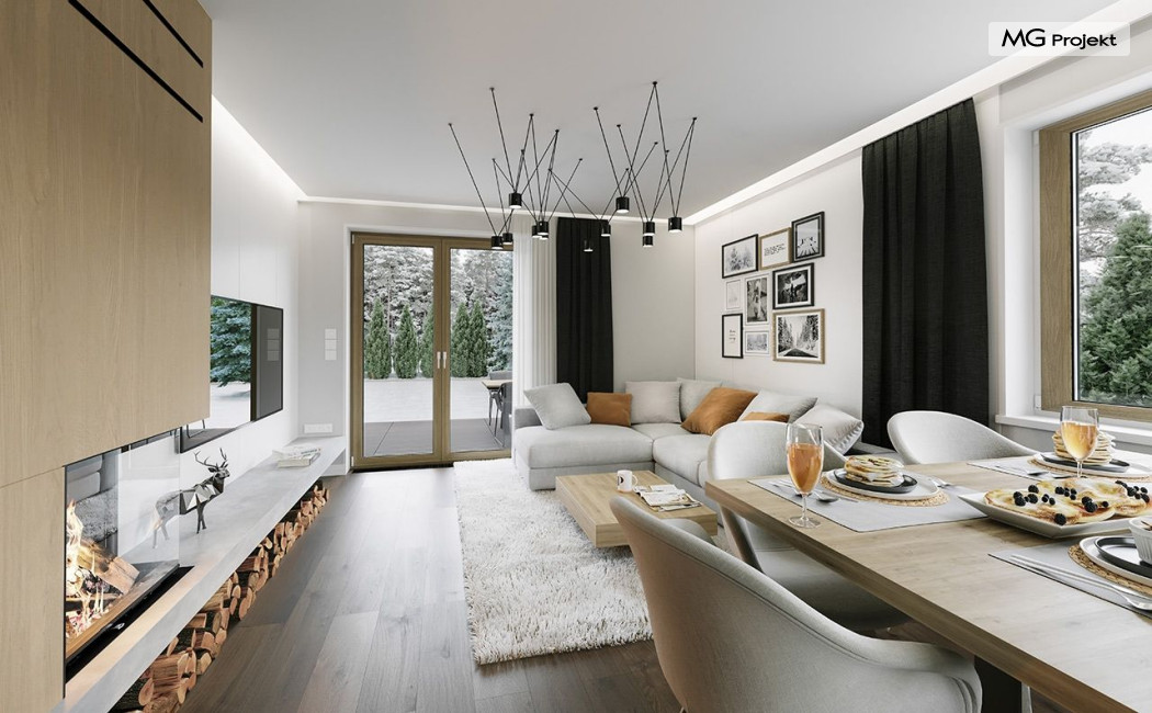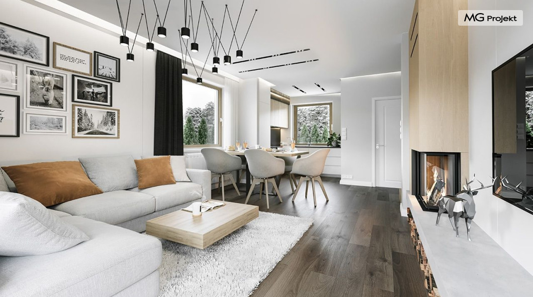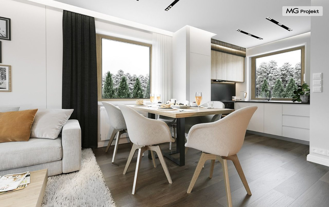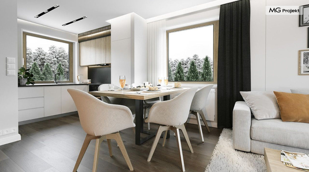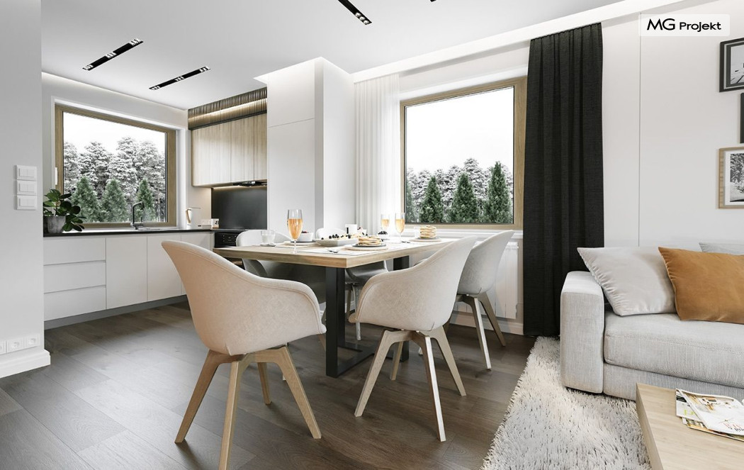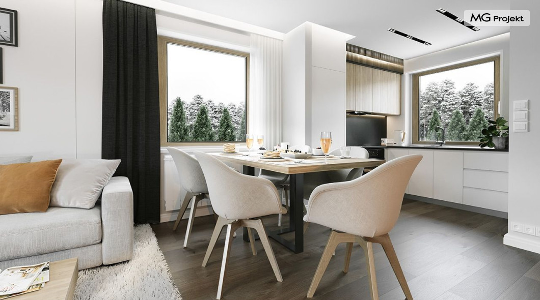 Projekt domu Kajtek to niewielki, przeznaczony dla trzy-czteroosobowej rodziny dom jednorodzinny. Budynek parterowy, przekryty dwuspadowym dachem. Prosta bryła domu połączona z nowoczesnym detalem i zastosowanymi materiałami tworzą udaną całość. Projekt domu Kajtek ma bezpretensjonalny a zarazem oryginalny wygląd. Wnętrze mieści w sobie wygodne trzypokojowe mieszkanie, z salonem, półotwartą kuchnią, dwiema sypialniami, łazienką i kotłownią dostępną z przedsionka. Po schodach można dostać się na strych, który - choć w projekcie traktowany jako nieużytkowy - bardzo łatwo można zaadaptować na poddasze użytkowe z dodatkowymi pokojami. W projekcie domu Kajtek zastosowano oddzielenie części dziennej od nocnej - z sypialniami. W salonie centralnym elementem jest kominek, oraz zabiegowe ozdabiające wnętrze schody. Szerokie drzwi balkonowe otwierają widok na częściowo zadaszony taras i ogród. Pracownia posiada odbicie lustrzane projektu.