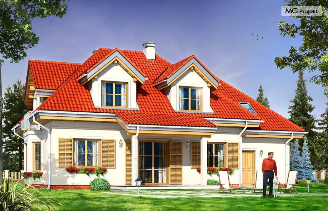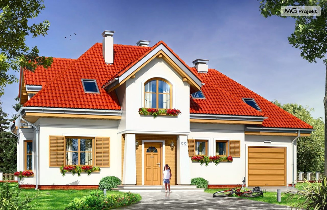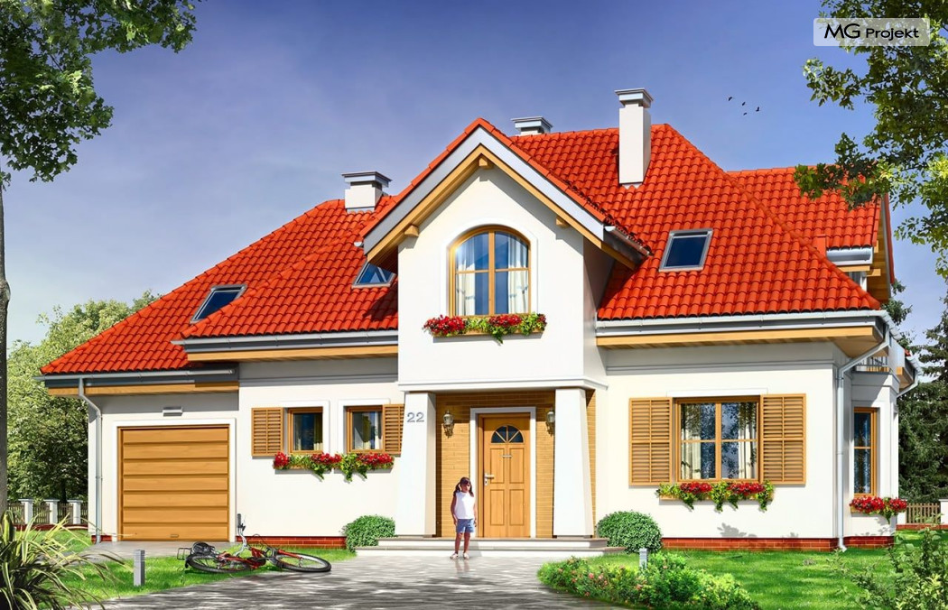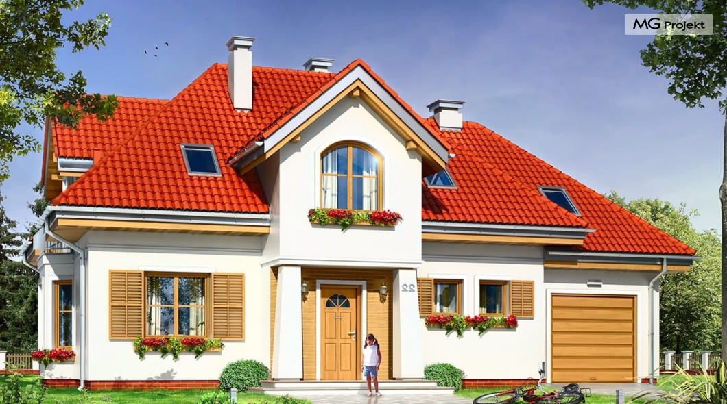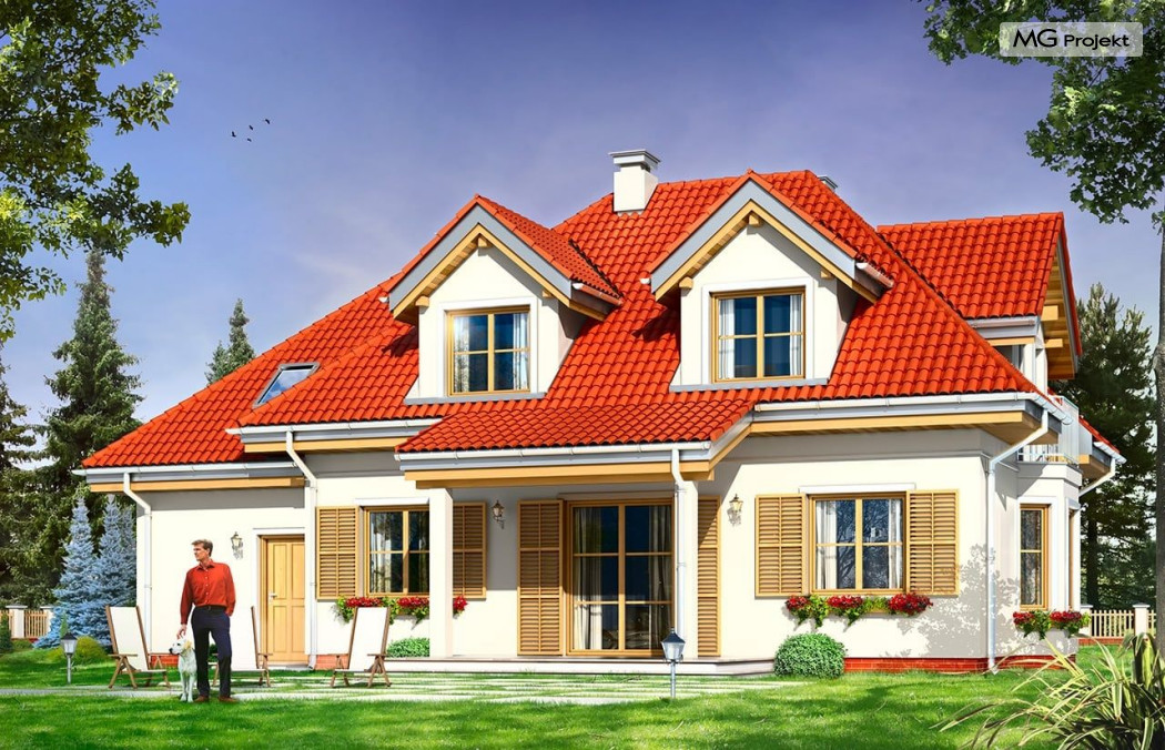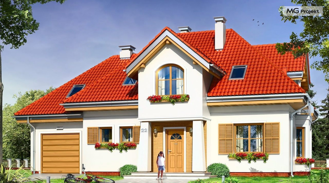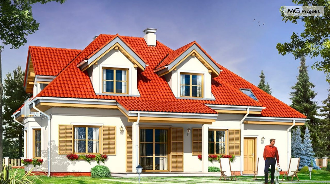 Projekt domu Kameralny to uroczy domek jednorodzinny dla czterech-pięciu osób, parterowy z poddaszem użytkowym. Główna prostokątna bryła budynku przekryta jest czterospadowym dachem, do niej dobudowany jest garaż. Architektonicznie dom luźno nawiązuje do tradycji polskiego dworku. Dach Kameralny urozmaicony został dużymi lukarnami, w elewacji frontowej centralnie zaprojektowana lukarna z łukowym oknem podparta jest na dwóch kolumnach, tworząc jednocześnie podcień wejściowy. Od strony elewacji ogrodowej dwie symetrycznie ustawione lukarny górują nad wygodnym zadaszeniem tarasu. Lukarna połączona z wykuszem jadalni zakończonym balkonikiem w elewacji bocznej dopełnia całość kompozycji. Wnętrze projektu domu Kameralnego podzielono na część dzienną i gospodarczą na parterze i sypialnie na poddaszu. Na parterze zaprojektowano obszerny salon, połączony częściowo z dużą kuchnią i holem . Przewidziano także dodatkowy pokój - gabinet lub sypialnię gościnną, łazienkę i kotłownię. W części garażowej znajduje się dodatkowe pomieszczenie gospodarcze. Na poddaszu umieszczono trzy ustawne sypialnie, dwie garderoby i bardzo ładną łazienkę. Dodatkowo można zaadaptować strych nad garażem na dodatkowy pokój. Pracownia posiada wersję odbicia lustrzanego projektu domu Kameralny.