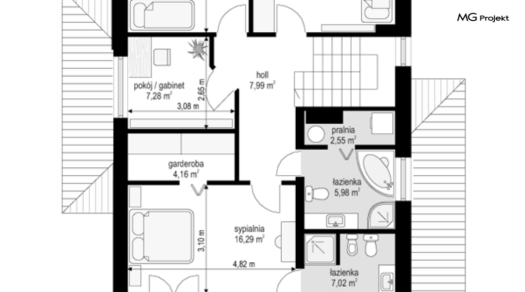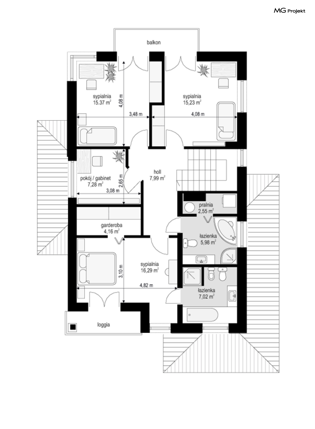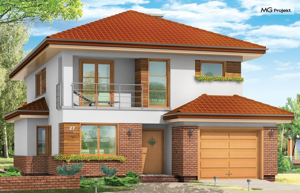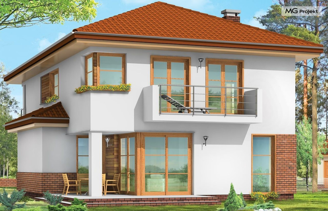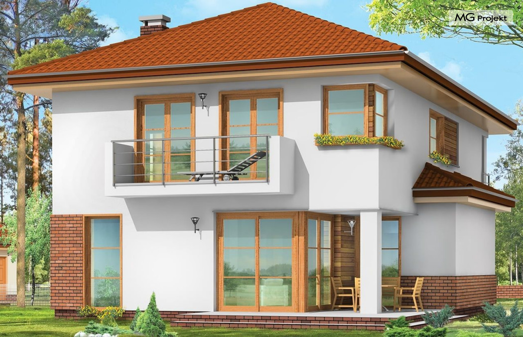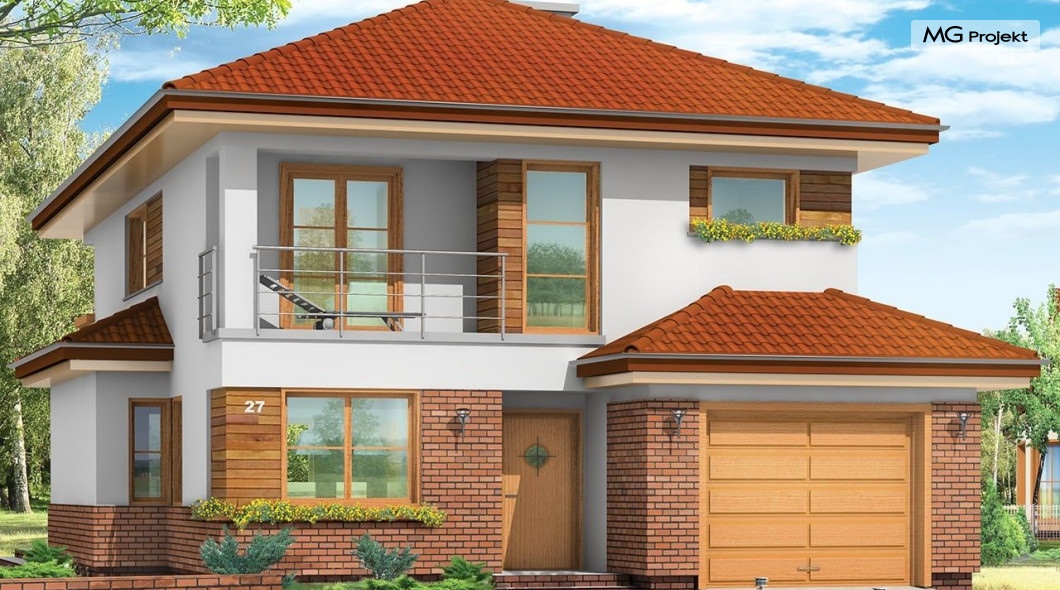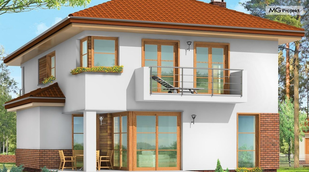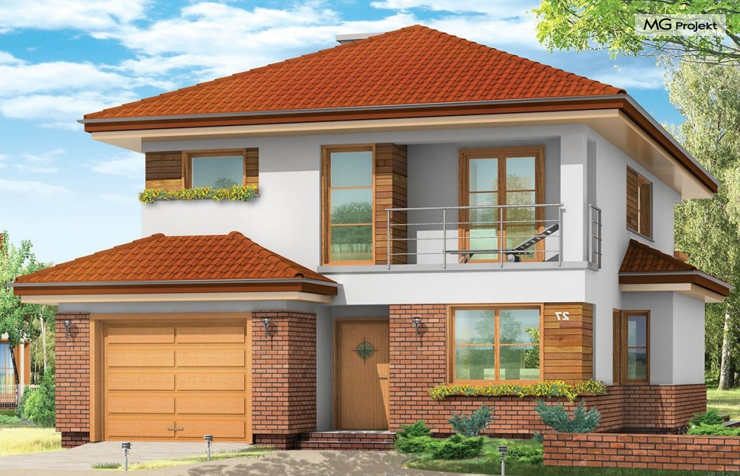 Projekt domu Kasjopea to przeznaczony dla rodziny 4-5 osobowej dom. Budynek zaprojektowano jako piętrowy, przekryty czterospadowym dachem z częściowo wbudowanym w główną bryłę garażem. Prosta forma domu w postaci prostopadłościanu została urozmaicona wystającymi wykuszami i daszkami, a także podcieniami, balkonami i loggią. Dom spodoba się niewątpliwie Klientom gustującym w nowoczesnych formach architektonicznych, ale z dozą konserwatyzmu - jednym słowem nieprzesadzonych. Kształt domu Kasjopea umożliwi lokalizowanie projektu również na wąskiej działce. Wnętrze parteru to: część dzienna, składająca się z salonu z aneksem jadalnym, holu, częściowo otwartej kuchni, oraz pomieszczenie gospodarcze i garaż. Na piętrze zaplanowano z kolei apartament rodziców - z łazienką, garderobą i balkonem, oraz dwie sypialnie dzieci - z łazienką. Dodatkowo zmieścił się jeszcze jeden pokój, który może być wykorzystany jako gabinet do pracy, ewentualnie sypialnia gościnna lub duża garderoba. Projekt domu Kasjopea występuje też w wersji odbicia lustrzanego, wersji odświeżonej (projekt domu Kasjopea 8) oraz w wersji zbliźniaczonej (projekt domu Kasjopea 2), wersji z garażem dwustanowiskowym (projekt domu Kasjopea 3), wersji najmniejszej (projekt domu Kasjopea 4), wersji powiększonej do 211.78 m2 (projekt domu Kasjopea 5), wersji największej (projekt domu Kasjopea 6), z nowocześniejszą architekturą (projekt domu Kasjopea 7) oraz z wyższym kątem nachylenia dachu (projekt domu Kasjopea 7 B).