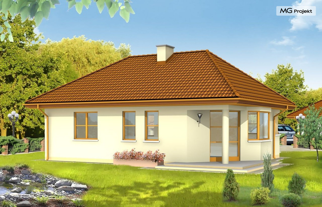 Projekt domu Klejnot to nieduży budynek dla trzyosobowej rodziny lub młodego małżeństwa z małymi dziećmi. Może być również użytkowany jako dom letniskowy. Prosta bryła domu bez udziwnień umożliwia łatwą i tanią budowę. Dobrane ze smakiem detale architektoniczne sprawiają przy tym, że przyjemnie się na domek patrzy. Wnętrze zaprojektowano z podziałem na strefy: dzienną i nocną. Pracownia posiada odbicie lustrzane projektu domu Klejnot.