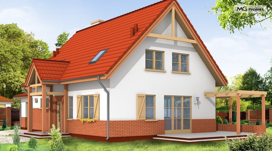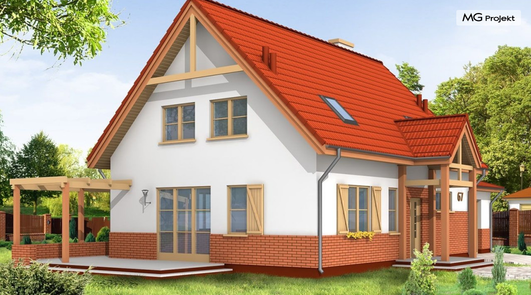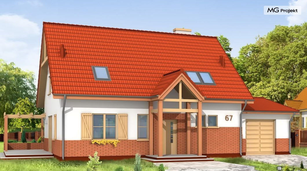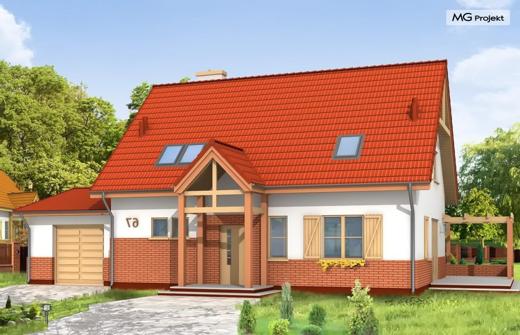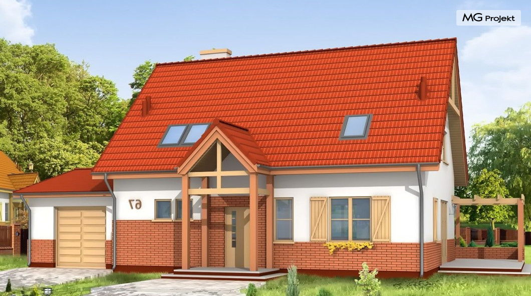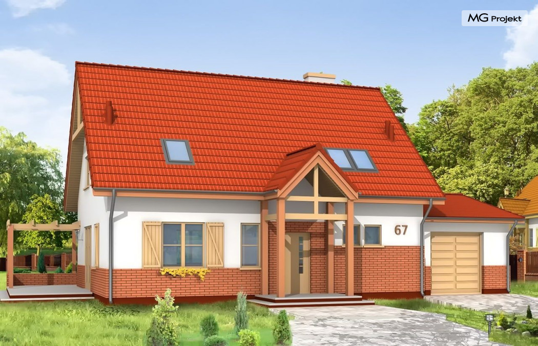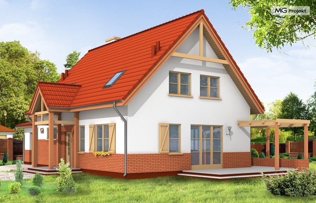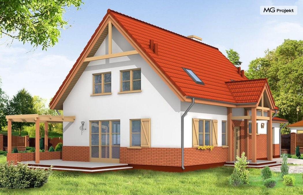 Projekt domu Leśny Zakątek to parterowy dom z poddaszem użytkowym i garażem przeznaczony dla 4-6 osobowej rodziny. Budynek można posadowić na działce z niekorzystnym nasłonecznieniem. Architektura projektu nawiązuje do prostych, tradycyjnych form i detali, w nowoczesnym ujęciu. Dzięki użyciu naturalnych materiałów: cegły, drewna, dachówki ceramicznej - dom doskonale komponuje się z otoczeniem. Wnętrze domu Leśny Zakątek ma układ półotwarty - pokój dzienny przestrzennie łączy się z holem oraz z tarasem. W dużej kuchni zaprojektowano stół do szybkich posiłków. Na parterze znajdują się ponadto: pokój (gabinet lub sypialnia), pomieszczenie gospodarcze, wc z natryskiem i garaż. Na poddaszu umieszczono trzy wygodne sypialnie, łazienkę i garderobę. Projekt domu Leśny Zakątek dostępny jest również w wersji odbicia lustrzanego, oraz wersji poowiększonej, ze zmienionym układem pomieszczeń (Projekt domu Leśny Zajątek 2).