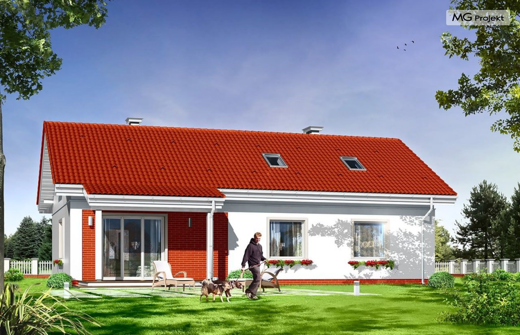 Projekt domu Luna to budynek jednorodzinny parterowy o powierzchni użytkowej 91,81 m2. Dom zbudowany jest na planie prostokąta, przekryty dwuspadowym dachem, z częściowo wbudowanym w bryłę budynku garażem 1 st.