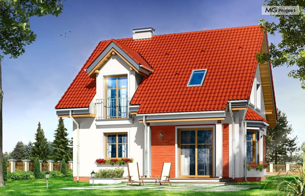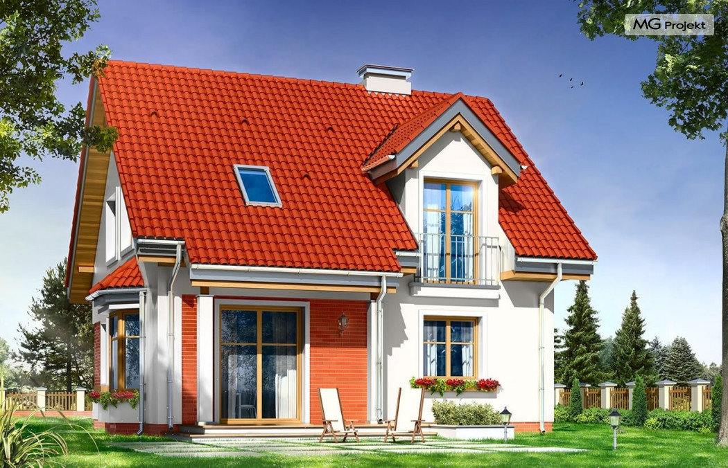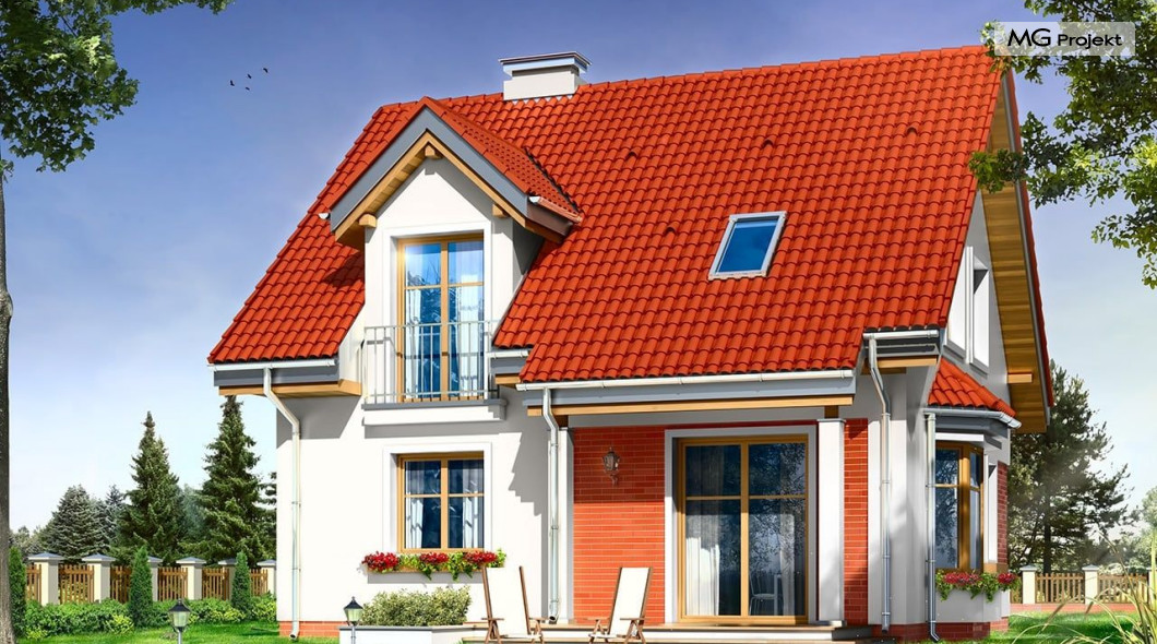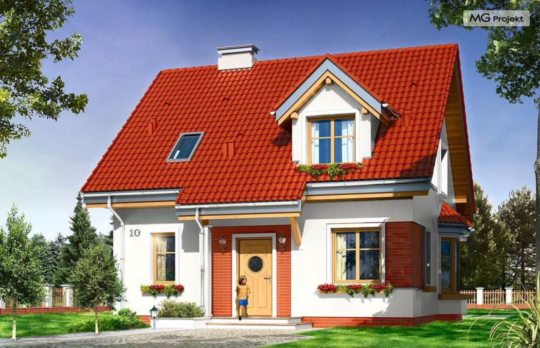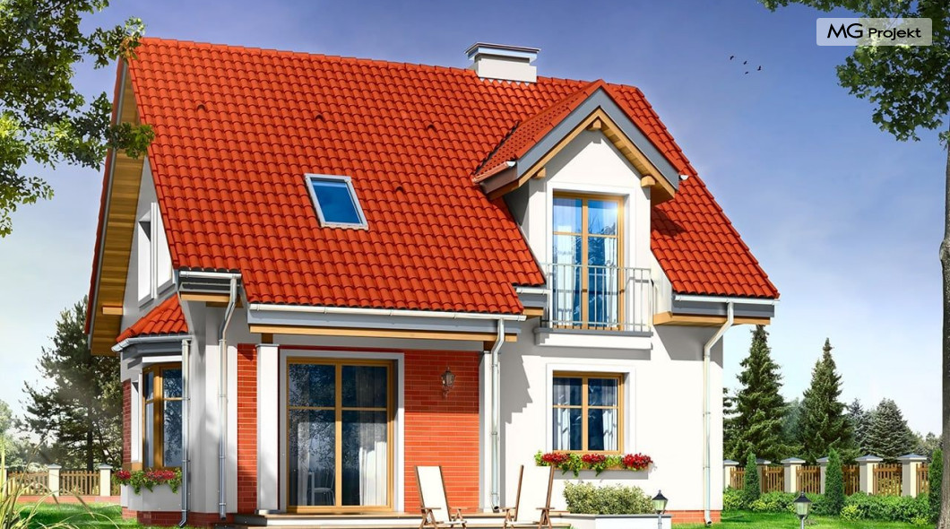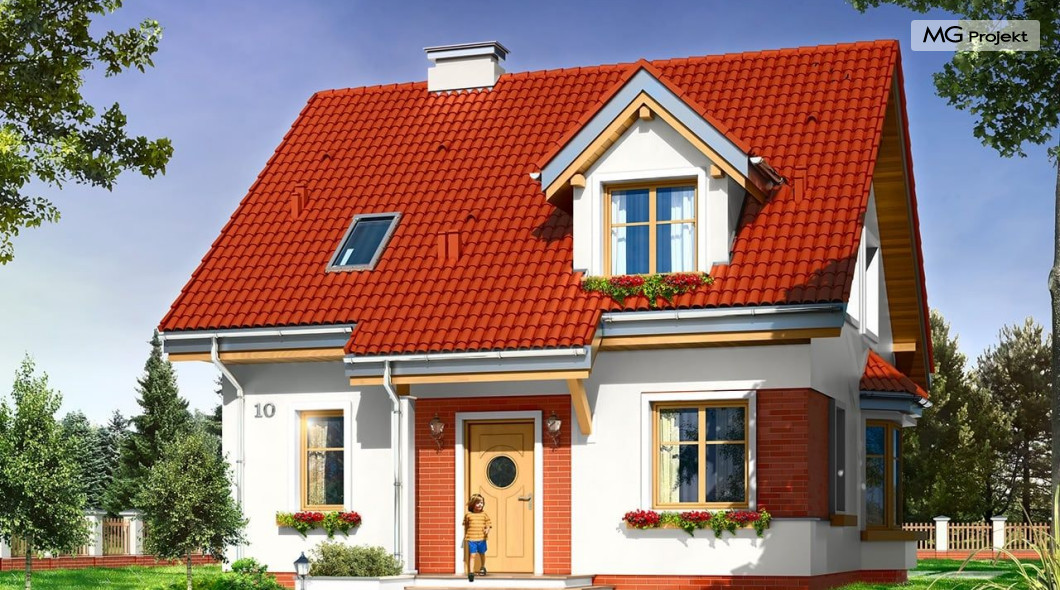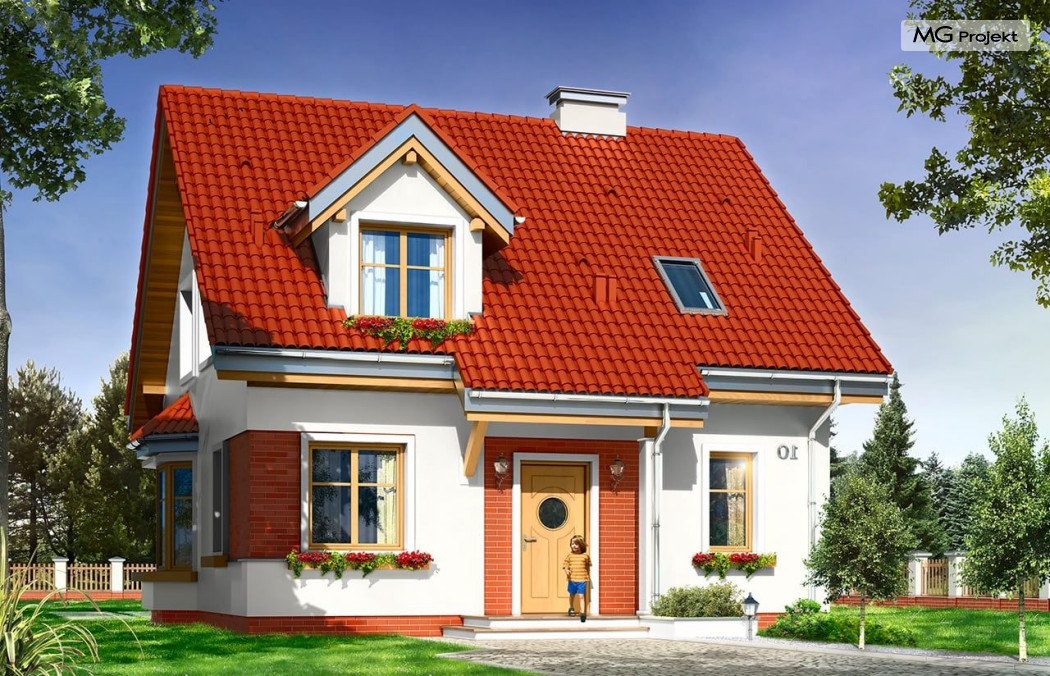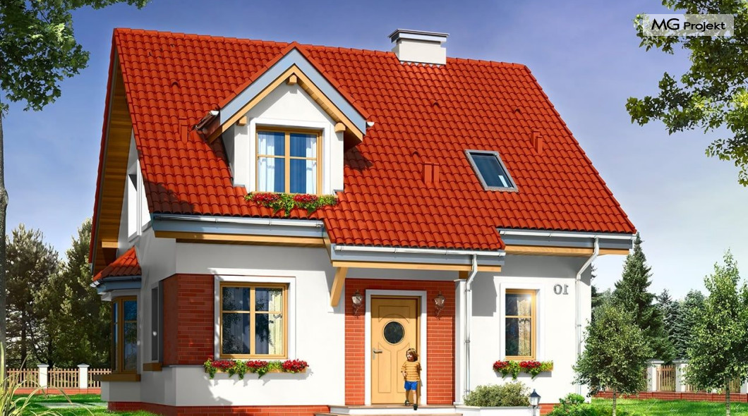 Projekt domu Michałek to śliczny domek jednorodzinny – zrealizowany jako „braciszek” projektu „Michalina” - oba domy mają podobną wielkość i rozplanowanie wnętrza , różną się kształtem dachu). Michałek został zaprojektowany jako wygodny dom dla czteroosobowej rodziny - jest parterowy z poddaszem użytkowym. Na parterze przewidziano obszerną część dzienną, z salonem, aneksem jadalnym, ładną – częściowo otwartą kuchnią, holem i dużą kotłownią. Na poddaszu mieszczą się trzy sypialnie i wygodna łazienka. Tradycyjna bryła budynku, zbudowana na planie kwadratu, została przekryta dwuspadowym dachem, z lukarnami. Elewację frontową urozmaica zadaszenie nad wejściem, wsparte na kolumnie i zastrzale. Elewację ogrodową ozdabiają: lukarna z balkonikiem i zadaszenie tarasu podparte kolumnami. Architektura domu jest spokojna i skromna, jednocześnie zachowane zostały właściwe proporcje bryły. Projekt domu Michałek to doskonała propozycja dla Inwestorów szukających niedużego, wygodnego domu dla swojej rodziny, biorących pod uwagę oszczędność kosztów, prostotę budowy i niewielki koszt utrzymania domu. Pracownia posiada wersję odbicia lustrzanego projektu.