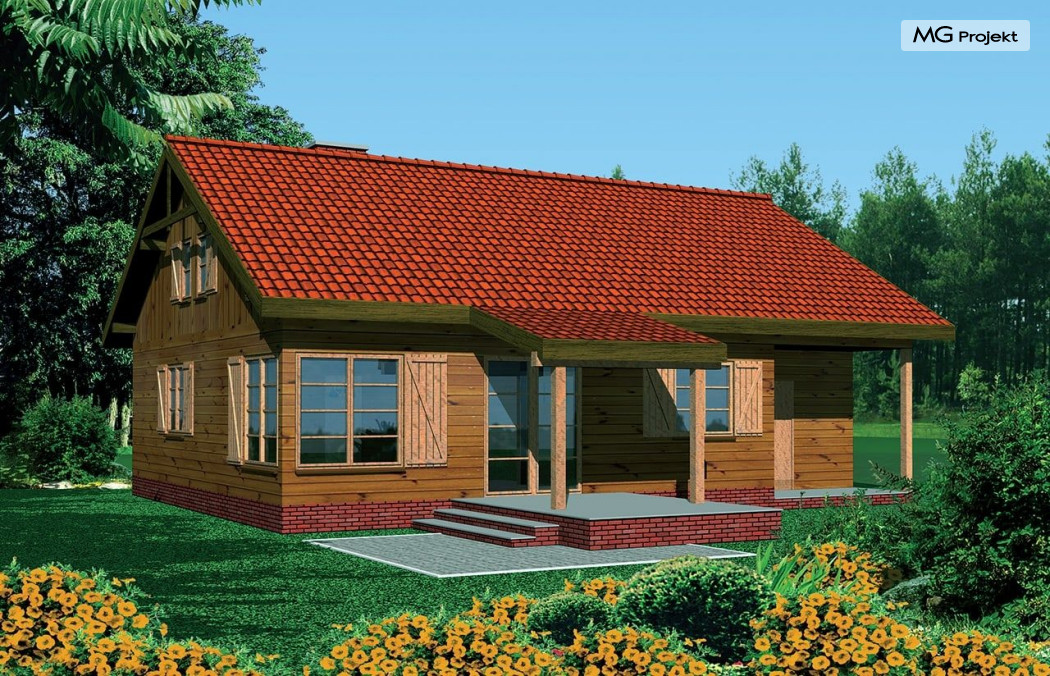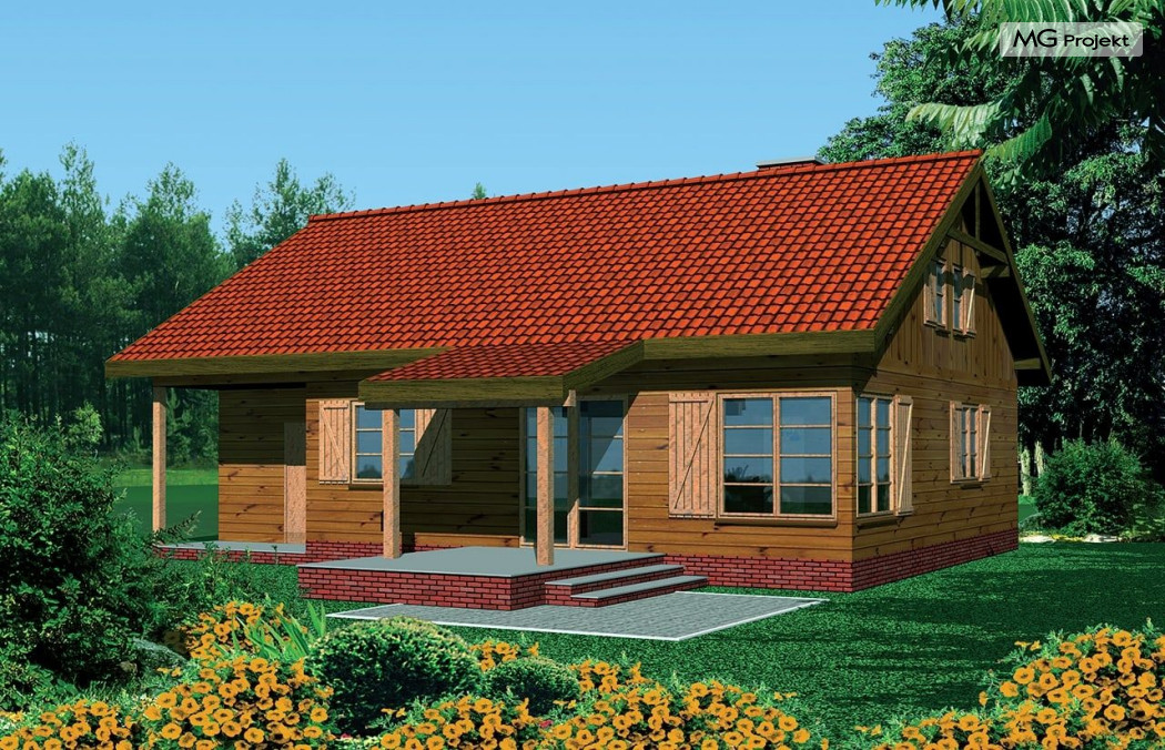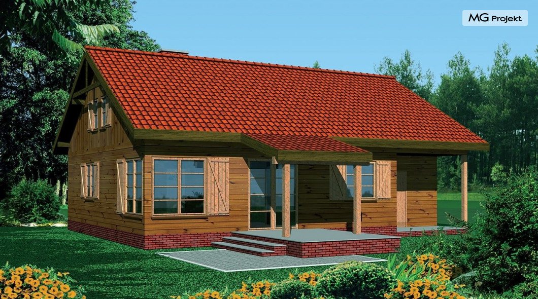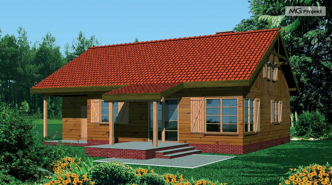 Projekt domu Modrzewiowy to drewniany dom, mogący służyć jako letniskowy lub całoroczny. Został zaprojektowany z myślą o wygodnym wypoczynku, zintegrowaniu się z otaczającą przyrodą. Sylwetka budynku przywodzi na myśl solidność i elegancką prostotę. Funkcjonalne wnętrze z dużym salonem łączy się z ogrodem przez zadaszony taras. Projekt domu Modrzewiowy dostępny jest również w wersji odbicia lustrzanego.