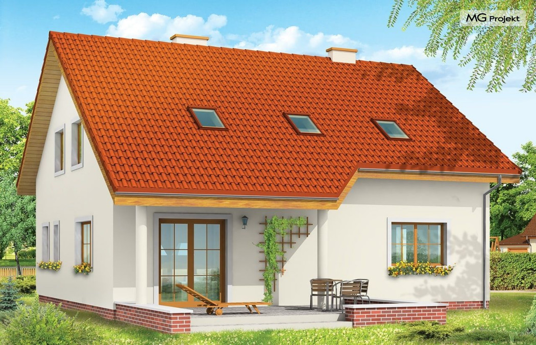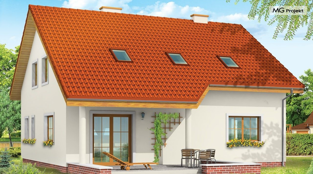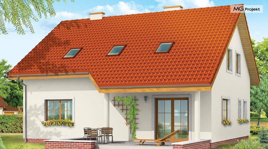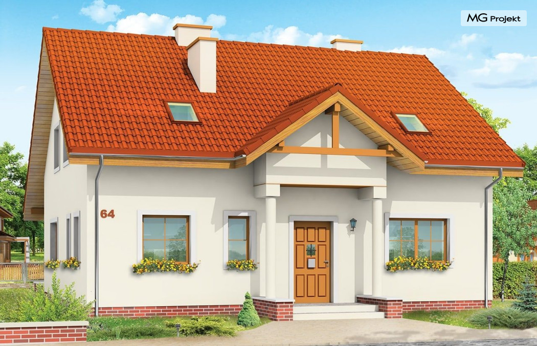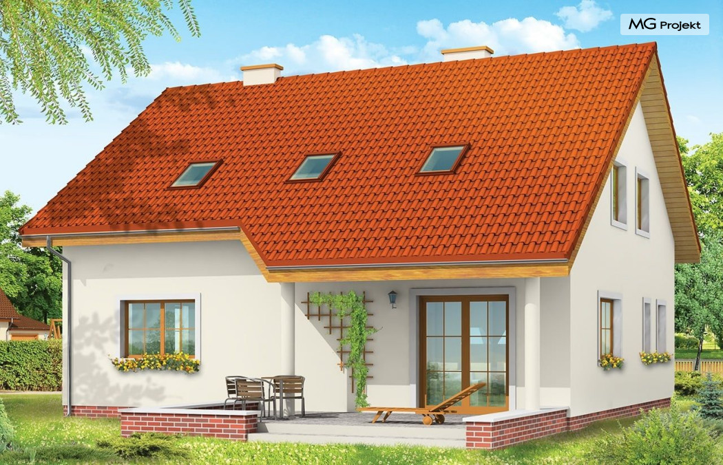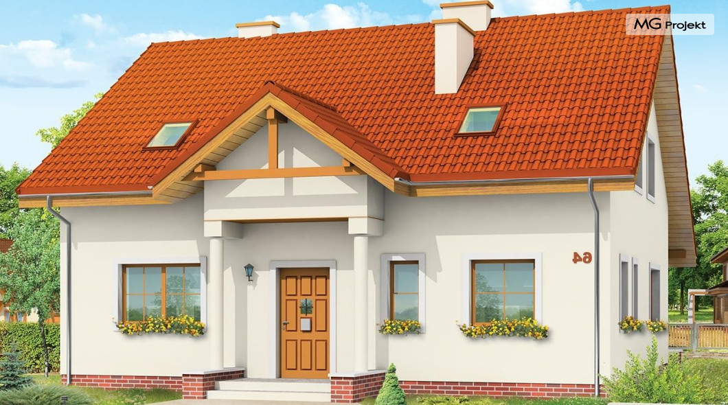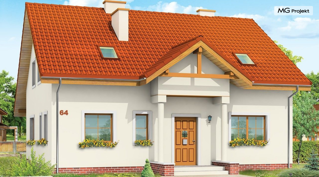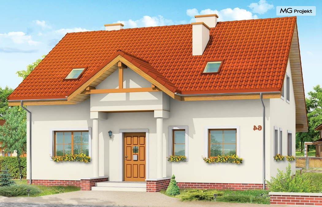 Projekt domu Na Wspólnej to dom jednorodzinny przeznaczony dla trzypokoleniowej rodziny, z odrębnym mieszkaniem dla dziadków lub dorosłych dzieci. Bryła domu jest prosta - rzut parteru o kształcie prostokąta przekryty poddaszem i dachem dwuspadowym. Wejście z domu zaakcentowano frontonem na dwóch kolumnach. Od strony ogrodu przewidziano zadaszony taras. Na parterze zaprojektowano wspólny dla obu mieszkań duży przedsionek z wejściem do kotłowni. W części odrębnego mieszkania znajdują się pokój dzienny z aneksem kuchennym, łazienka i sypialnia. W pozostałej części parteru: pokój dzienny z jadalnią i wygodnymi schodami, oraz kuchnia ze spiżarką. Na poddaszu umieszczono trzy sypialnie z dwiema łazienkami. Jedna z sypialni to oddzielna część państwa domu z ich łazienką i garderobą. Projekt domu Na Wspólnej można również zaadaptować likwidując oddzielne mieszkanie i zamieniając je na garaż i np. gabinet dostępny z pokoju dziennego.