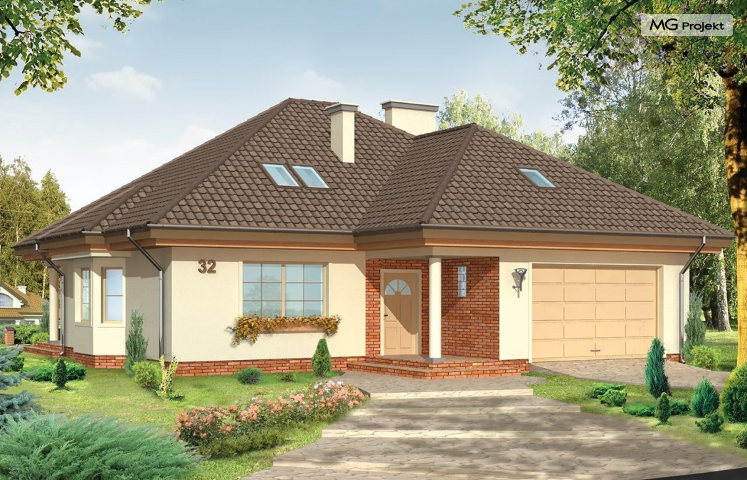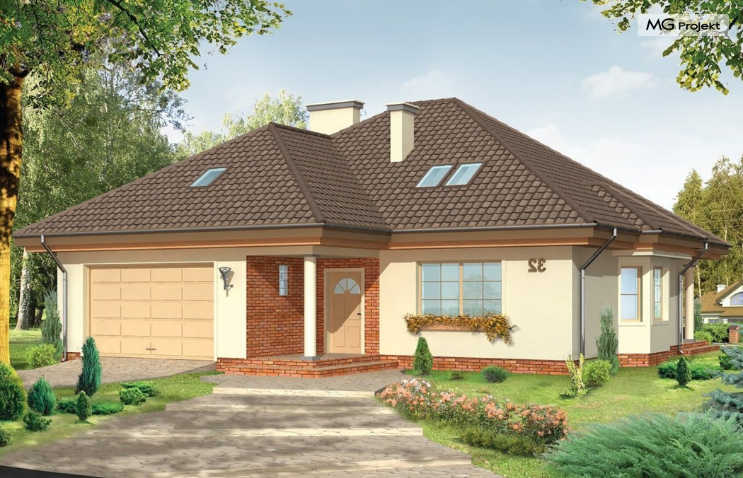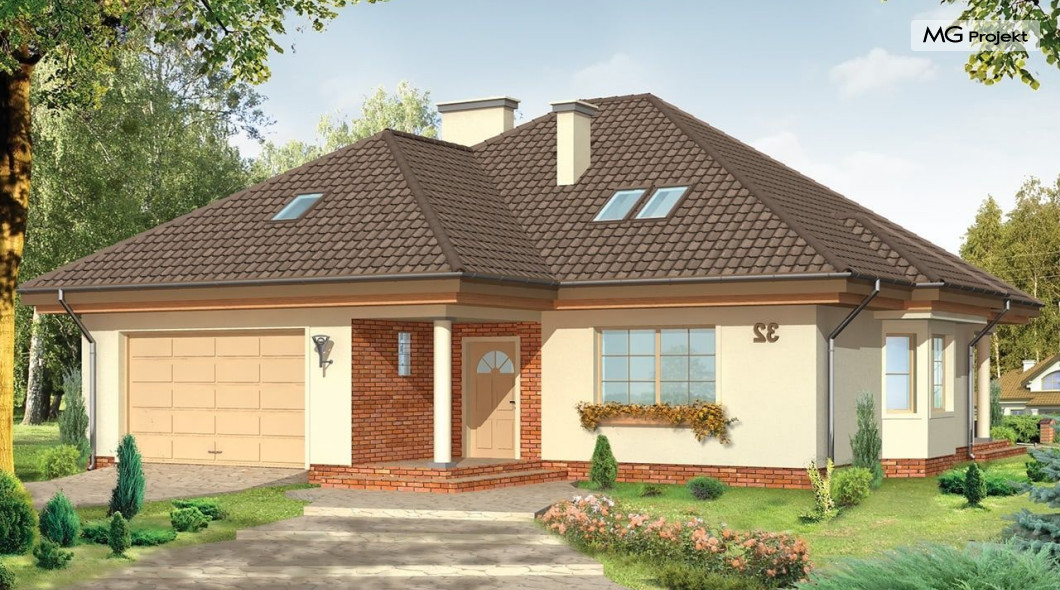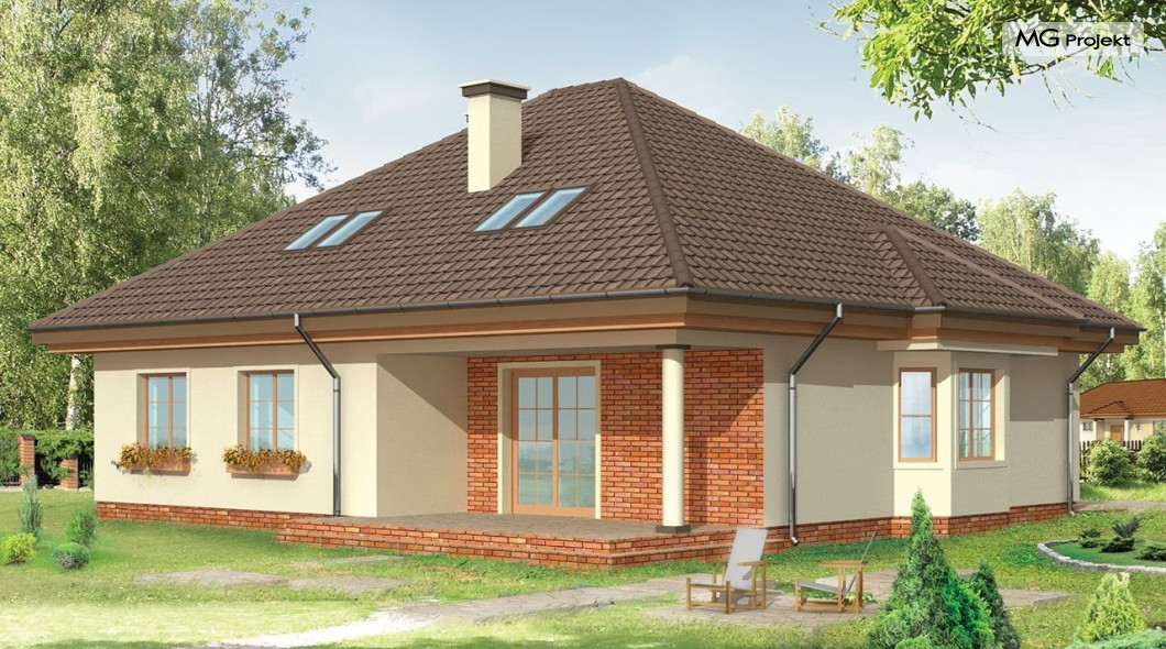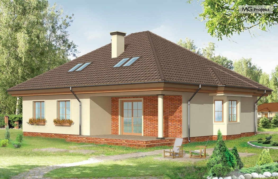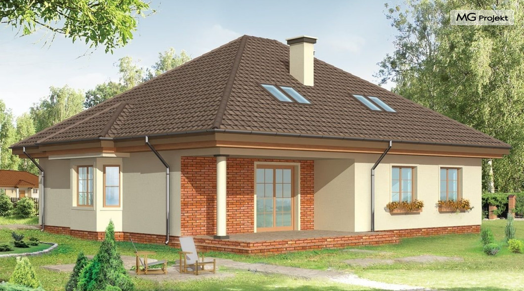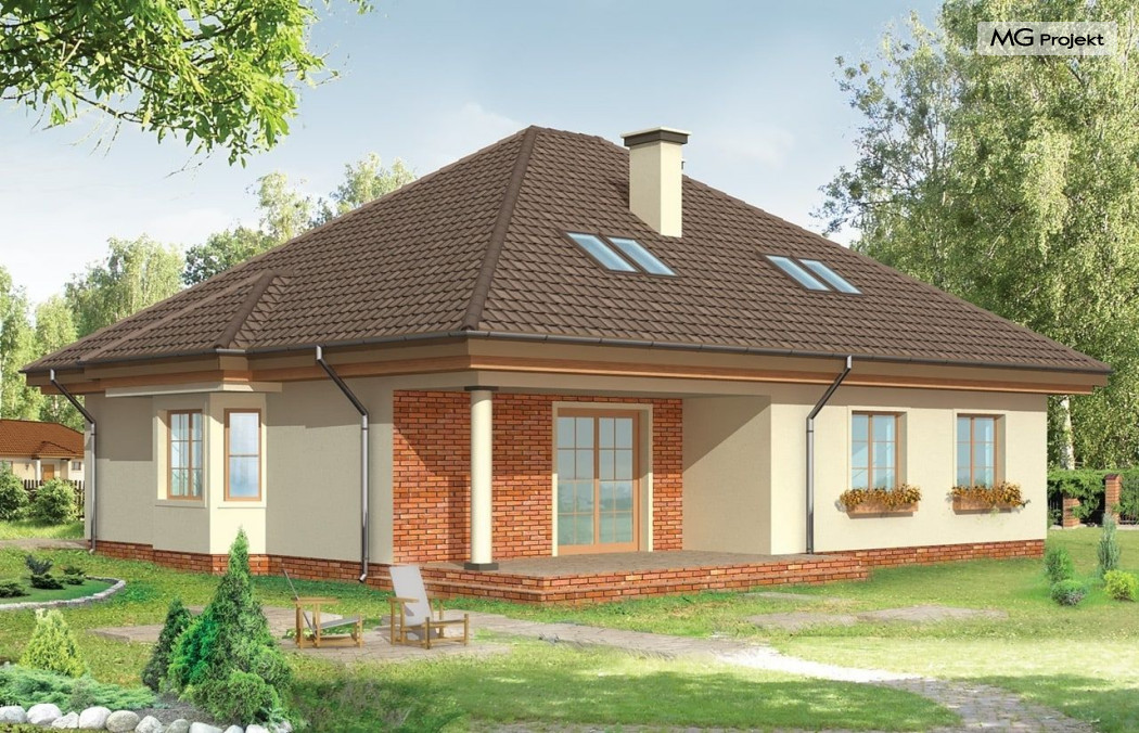 Projekt domu Natalia to wygodny, obszerny dom jednorodzinny dla rodziny dwu lub trzypokoleniowej. Dom Natalia posiada kopertowy dach, podcienie, wykusz i okładziny klinkierowe tworzą udane połączenie. Wnętrze domu zaprojektowano tak, aby w pierwszym etapie można było zagospodarować tylko parter. Pokoje na parterze mogą być sypialnią i gabinetem rodziców, sypialnią dziadków lub pokojami gościnnymi. Poddasze można wykończyć w drugim etapie. Dostępne jest także odbicie lustrzane projektu Natalia oraz inne wersje projektu: wersja przystosowana do działki z niekorzystnym względem stron świata wjazdem (projekt domu Natalia 2), wersja z dodatkową sypialnią (projekt domu Natalia 3), wersja przystosowana do wąskich działek (projekt domu Natalia 4). Zapraszamy!
