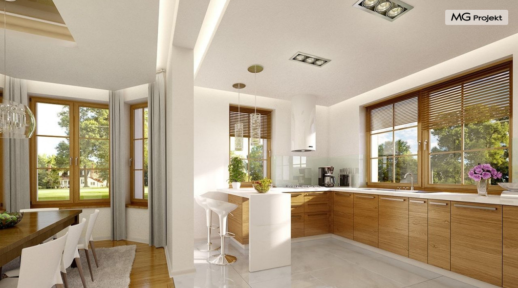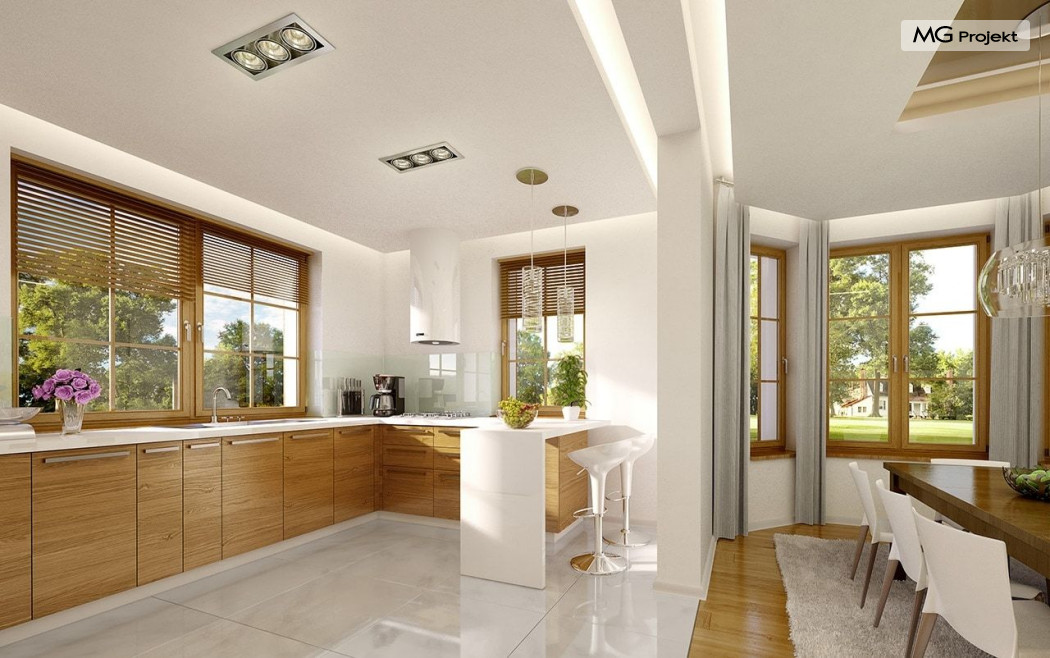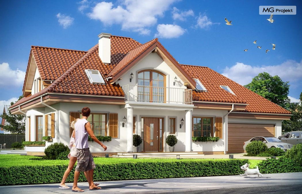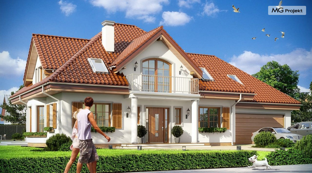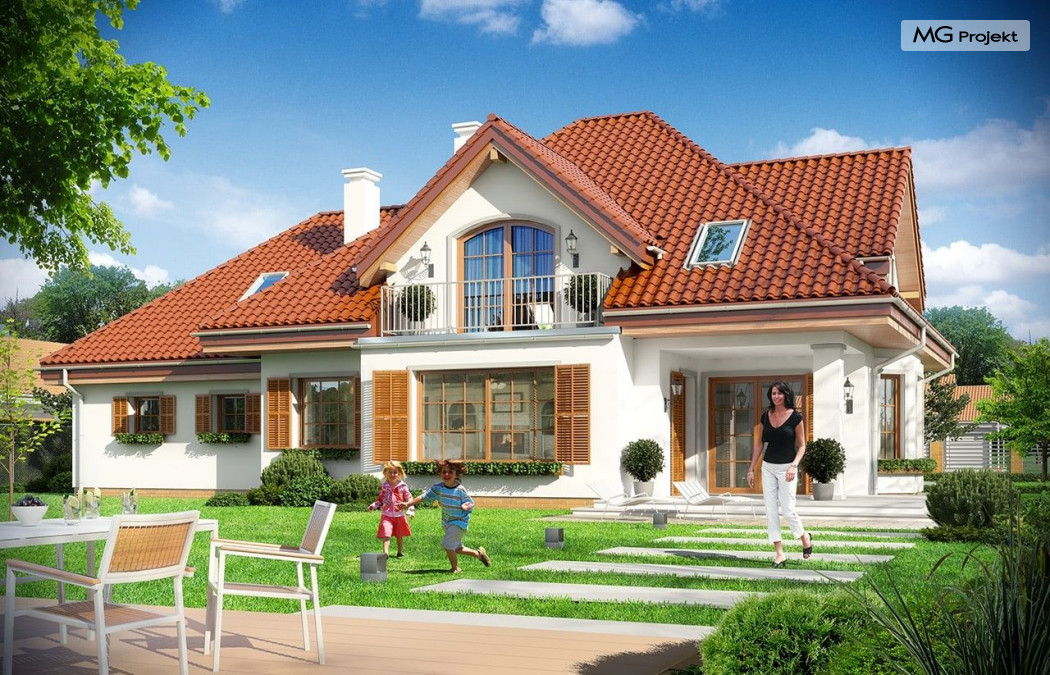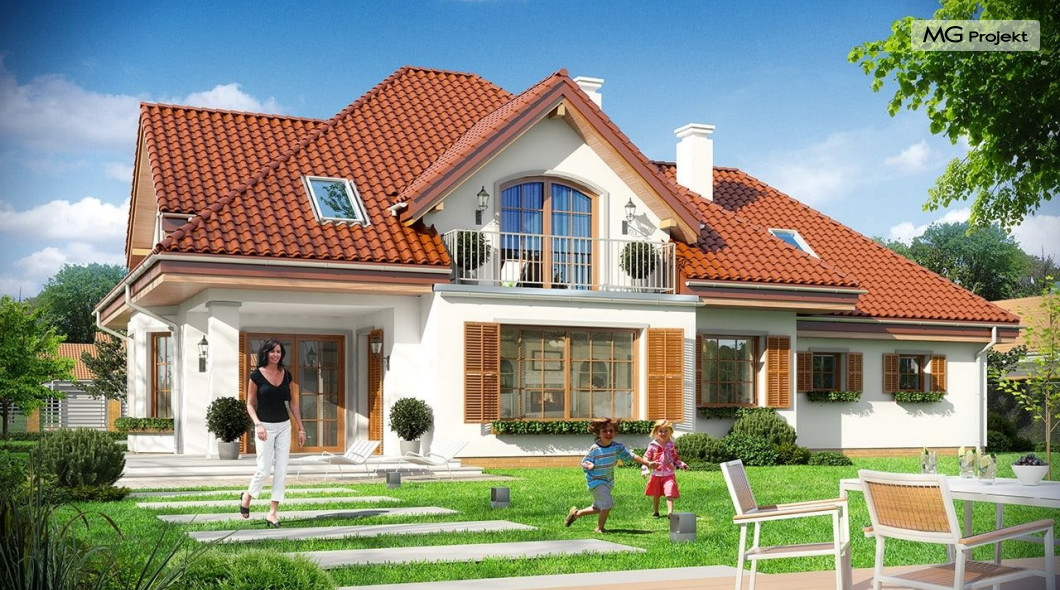 Projekt domu Ofelia to propozycja MG Projekt z grupy domków, których protoplastą jest popularny domek Julka. Projekt domu Ofelia - dzięki swojej symetrycznej elewacji z frontowym gankiem i dużą lukarną z balkonem nad drzwiami wejściowymi, przypomina również również inny dom z naszej kolekcji - Benedykt 2. W czasach gdy wszyscy gonią za nowoczesnością miło mieć punkt odniesienia – coś niezmiennego, niewychodzącego z mody. Dom o trwałej tradycyjnej architekturze, który na pewno nie zestarzeje się, gdy przeminie moda na kolejne domy – pudełka. Projekt domu Ofelia to wzorowy reprezentant stylu „dworkowego”, a do tego dom o nowoczesnym funkcjonalnym wnętrzu, zaprojektowany w nowoczesnej i energooszczędnej technologii. Bezpretensjonalna architektura, z zachowaną harmonią, proporcjami i symetrią każdej elewacji, doskonale wkomponuje się w każde otoczenie. Bryła budynku jest reprezentacyjna, ale zachowuje ludzką skalę. Na parterze zaprojektowano otwartą część dzienną - z salonem, aneksem jadalnym, kuchnią i holem, dwa dodatkowe pokoje, oraz część gospodarczą – garaż i kotłownię. Na poddaszu przewidziano trzy wygodne sypialnie z garderobami, oraz dużą łazienkę. Nad garażem znajduje się strych, który można wykorzystać jako poddasze. Wygoda i przestrzeń to podstawowe atutu tego projektu. Nic nie jest tutaj na niby – to prawdziwa mała rezydencja. Mamy tu spiżarnię, jadalnię w której zmieści się duży stół, salon, w którym zmieszczą się meble wypoczynkowe, szerokie i wygodne schody, duży hol czy przedsionek. Materiały i technologie zastosowane w projekcie są energooszczędne, układ konstrukcji jest klarowny i nie sprawi kłopotu wykonawcy podczas budowy. Projekt domu Ofelia z pewnością przypadnie do gustu osobom szukającym komfortowego, dobrze przemyślanego domu, którzy z jednej strony marzą o reprezentacyjnej willi, z drugiej strony nie chcę przesadzić z wielkością domu. Pracownia posiada również odbicie lustrzane projektu domu Ofelia oraz inne wersje tej popularnej serii: projekt domu Ofelia 2, projekt domu Ofelia 3. Zapraszamy!