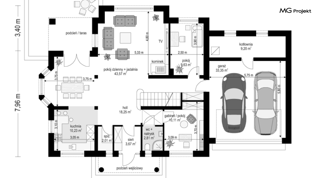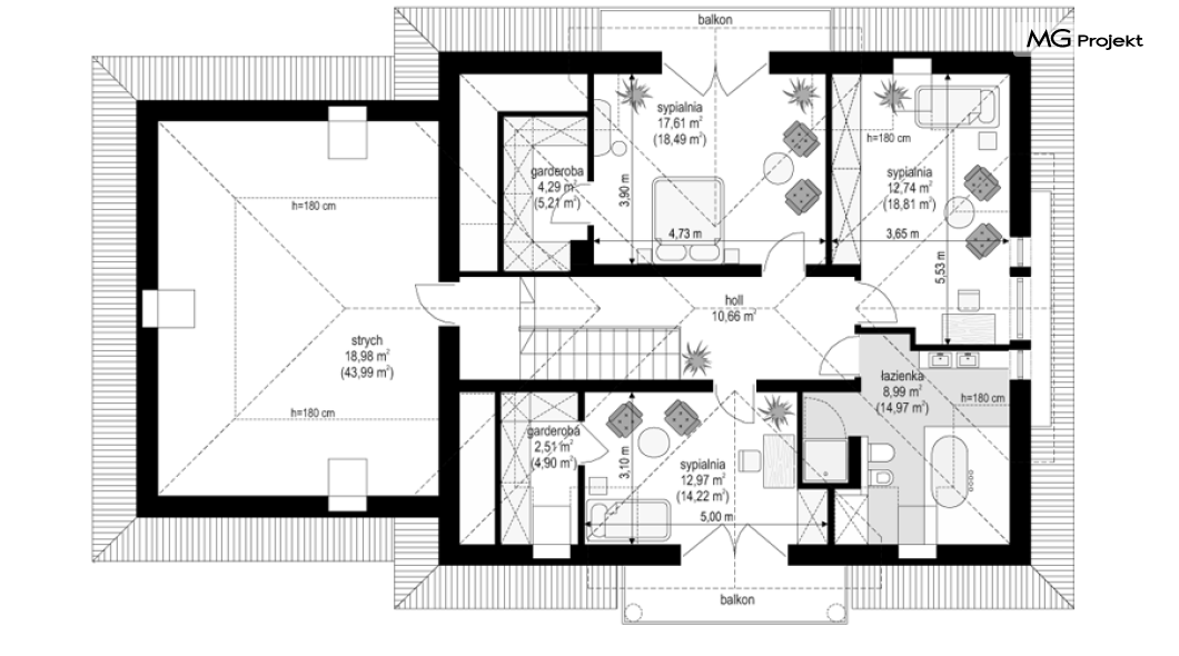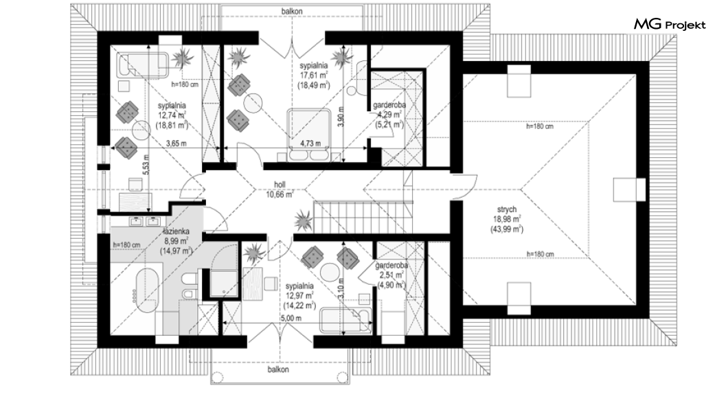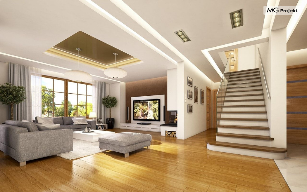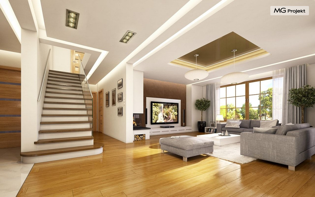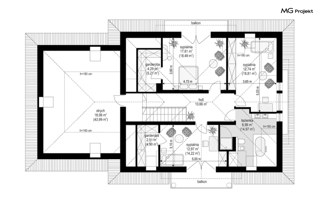 Projekt domu Ofelia to propozycja MG Projekt z grupy domków, których protoplastą jest popularny domek Julka. Projekt domu Ofelia - dzięki swojej symetrycznej elewacji z frontowym gankiem i dużą lukarną z balkonem nad drzwiami wejściowymi, przypomina również również inny dom z naszej kolekcji - Benedykt 2. W czasach gdy wszyscy gonią za nowoczesnością miło mieć punkt odniesienia – coś niezmiennego, niewychodzącego z mody. Dom o trwałej tradycyjnej architekturze, który na pewno nie zestarzeje się, gdy przeminie moda na kolejne domy – pudełka. Projekt domu Ofelia to wzorowy reprezentant stylu „dworkowego”, a do tego dom o nowoczesnym funkcjonalnym wnętrzu, zaprojektowany w nowoczesnej i energooszczędnej technologii. Bezpretensjonalna architektura, z zachowaną harmonią, proporcjami i symetrią każdej elewacji, doskonale wkomponuje się w każde otoczenie. Bryła budynku jest reprezentacyjna, ale zachowuje ludzką skalę. Na parterze zaprojektowano otwartą część dzienną - z salonem, aneksem jadalnym, kuchnią i holem, dwa dodatkowe pokoje, oraz część gospodarczą – garaż i kotłownię. Na poddaszu przewidziano trzy wygodne sypialnie z garderobami, oraz dużą łazienkę. Nad garażem znajduje się strych, który można wykorzystać jako poddasze. Wygoda i przestrzeń to podstawowe atutu tego projektu. Nic nie jest tutaj na niby – to prawdziwa mała rezydencja. Mamy tu spiżarnię, jadalnię w której zmieści się duży stół, salon, w którym zmieszczą się meble wypoczynkowe, szerokie i wygodne schody, duży hol czy przedsionek. Materiały i technologie zastosowane w projekcie są energooszczędne, układ konstrukcji jest klarowny i nie sprawi kłopotu wykonawcy podczas budowy. Projekt domu Ofelia z pewnością przypadnie do gustu osobom szukającym komfortowego, dobrze przemyślanego domu, którzy z jednej strony marzą o reprezentacyjnej willi, z drugiej strony nie chcę przesadzić z wielkością domu. Pracownia posiada również odbicie lustrzane projektu domu Ofelia oraz inne wersje tej popularnej serii: projekt domu Ofelia 2, projekt domu Ofelia 3. Zapraszamy!